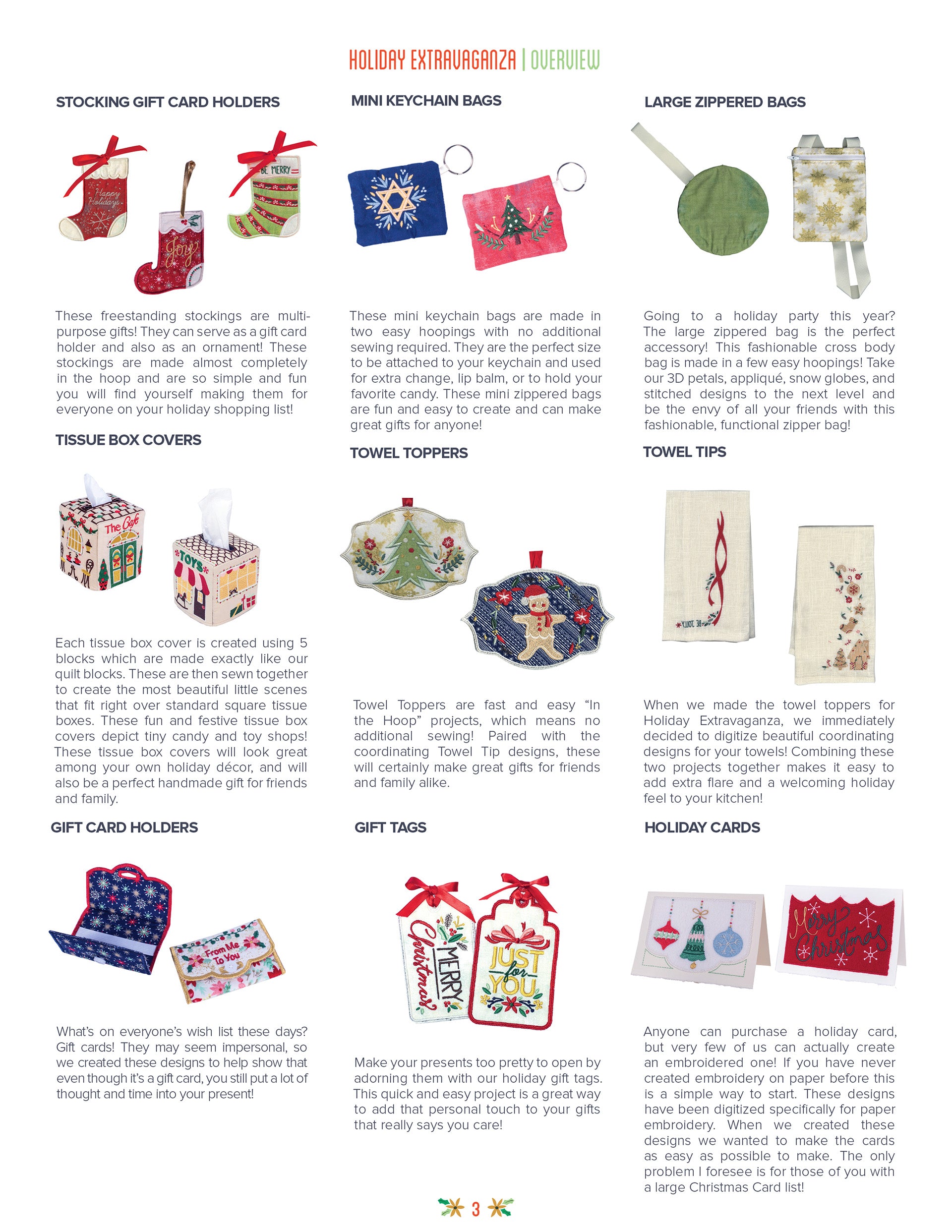 Imagine the delight on the faces of your loved ones as you present them with handmade gifts that showcase the beauty and spirit of the holiday season. The Holiday Extravaganza collection allows you to spread joy and warmth to those around you for years to come. From charming ornaments adorning the Christmas tree to beautifully crafted bags that hold special surprises, these creations will become cherished heirlooms that capture the essence of the season.