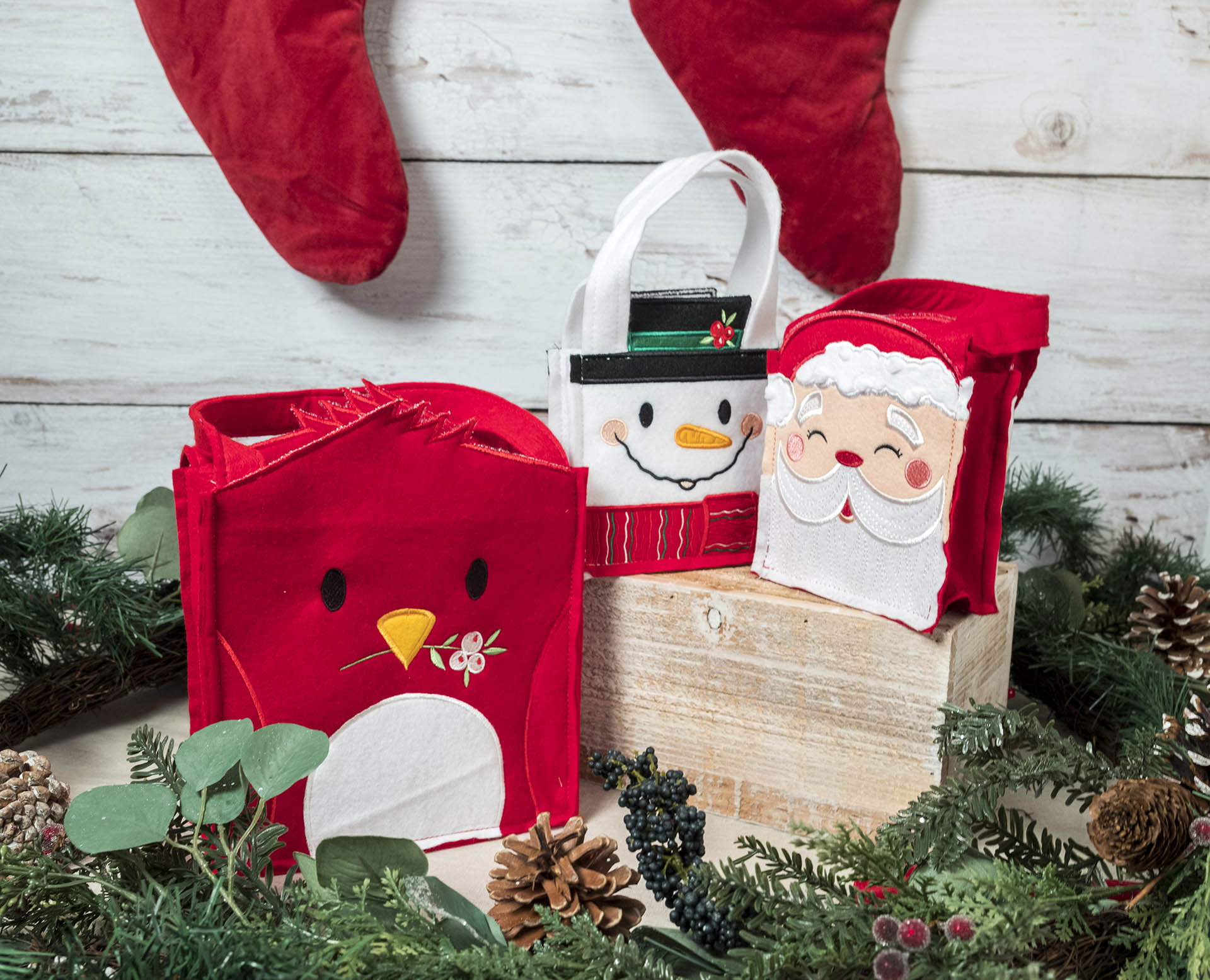 The bags are not only charming but also practical. We've crafted them using high-quality felt, which adds a touch of elegance while ensuring durability. No matter what you have on your Christmas list, these sturdy bags can handle it all. From delicate embroidery scissors to even a playful little puppy, rest assured that your gifts will be secure and beautifully presented.