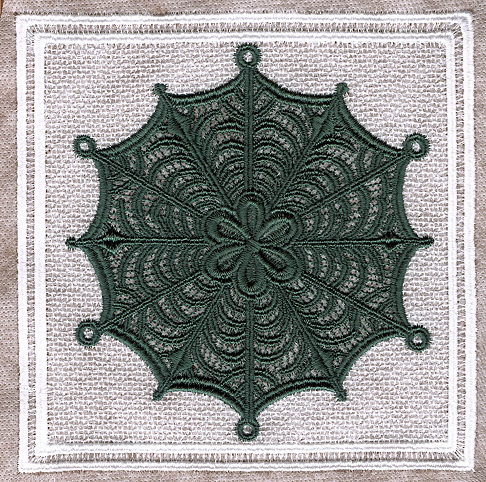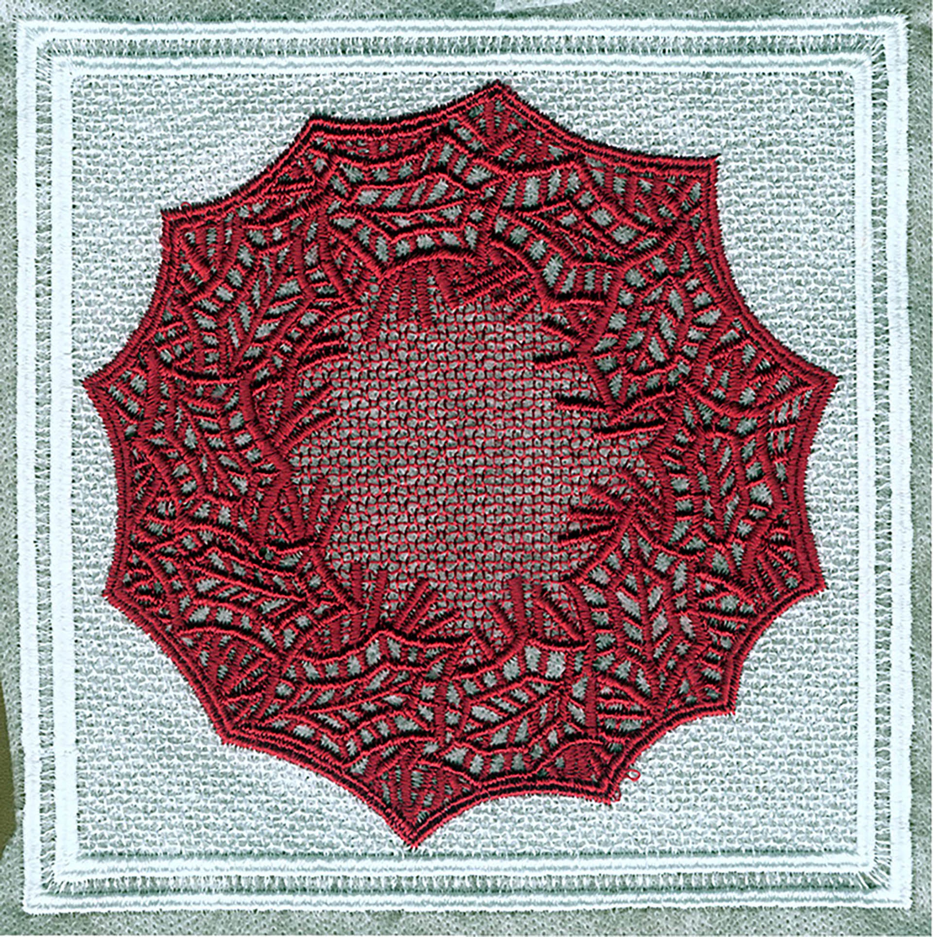 Our Holiday Lace collection is full of exciting projects to decorate your home this holiday season. Each design with the exception of a few has three elements. The first elements is a lace ornament, followed by a lace insert and a lace quilt square. All of the designs in this collection are free standing.