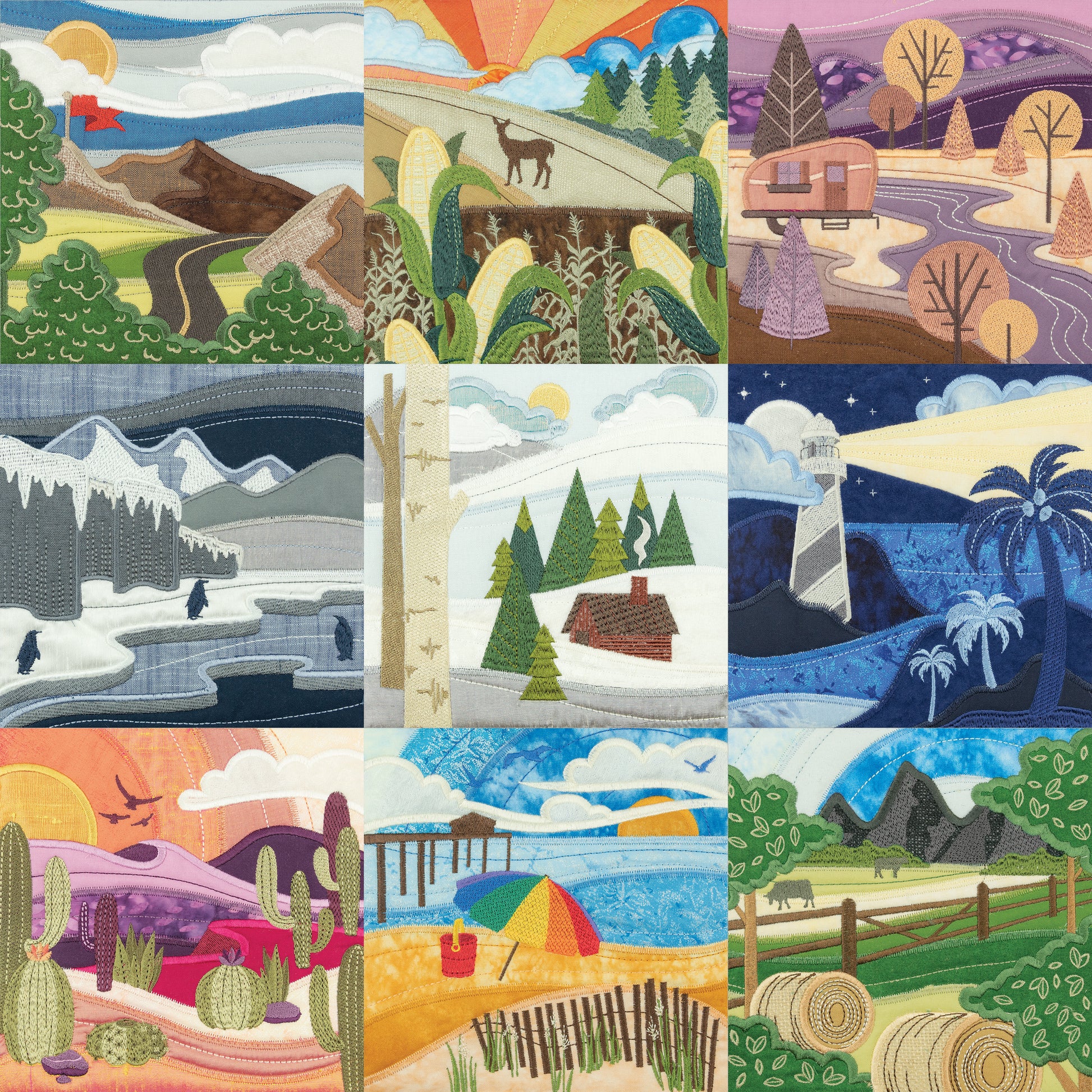 Now, let your imagination carry you from that hilltop vista to the cozy sanctuary of your sewing room, where a world of creativity awaits. With our Horizons collection, you can transform these captivating landscapes from your mind's eye into tangible works of art. Each design in this collection brings a unique location to life through the interplay of textured fabrics and vibrant colors, inviting you to embark on a stitching journey unlike any other.