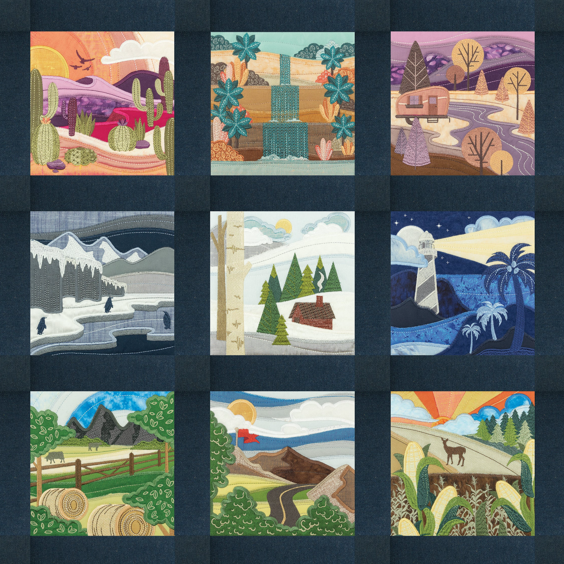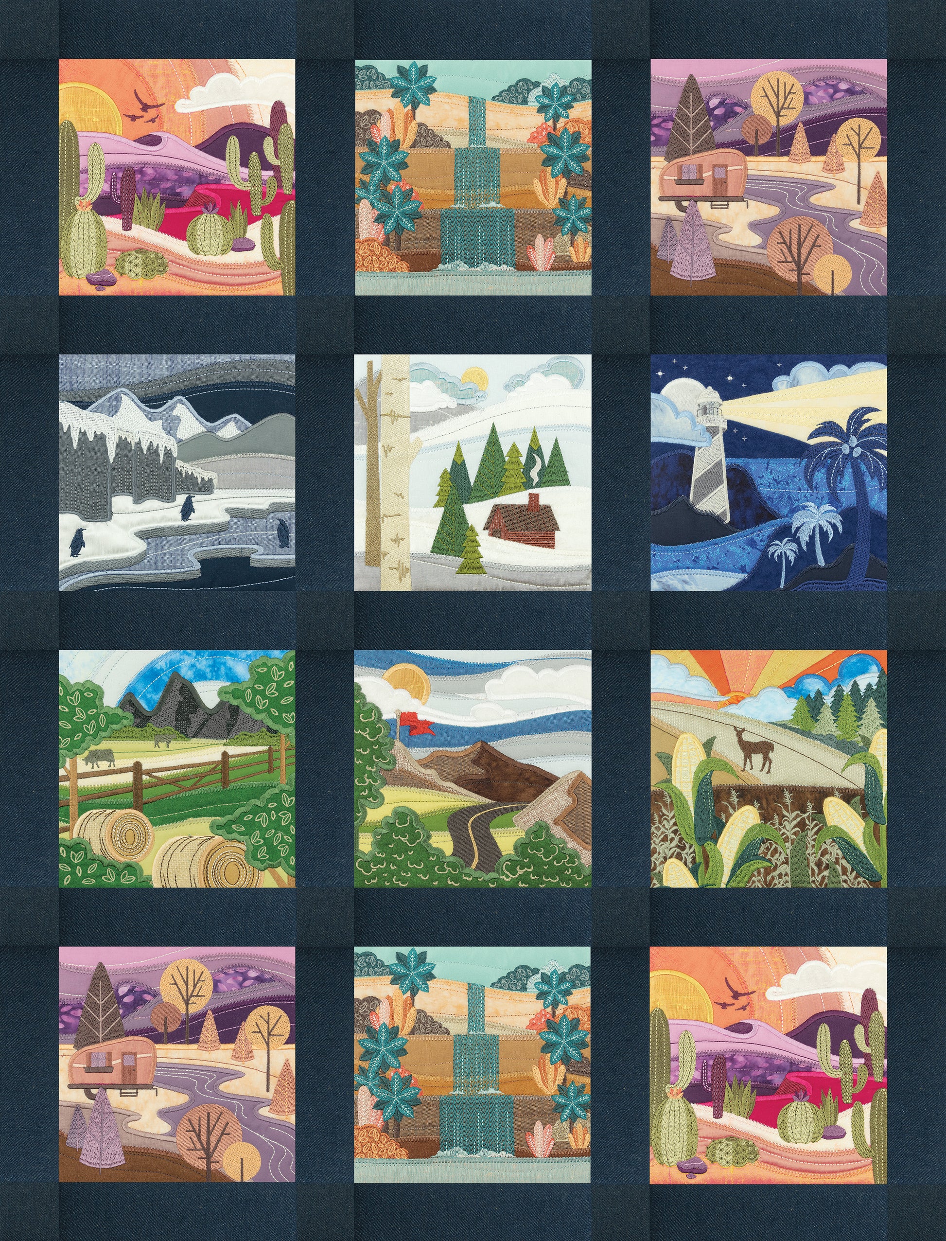 In this collection, you will discover 12 stunning locations, each depicted in rectangular or square blocks. Every block is a miniature vignette, offering a glimpse into an imaginative and brilliant world that until now may have existed only within the realms of your dreams. Let the soothing hum of your sewing machine transport you to these extraordinary places!
