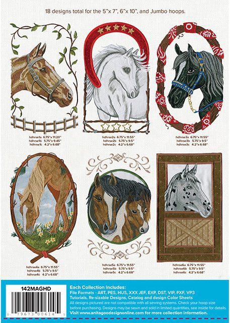 Horses have been requested for years, instead of creating cartoon or whimsical horses we decided to create 6 realistic horses. Each of the horses has an extensive amount of detail and were all shaded by hand. They would look great on everything from denim jackets to home decor items. We also included a few border designs that you can add to larger projects. If you love horses you are guaranteed to love this collection.