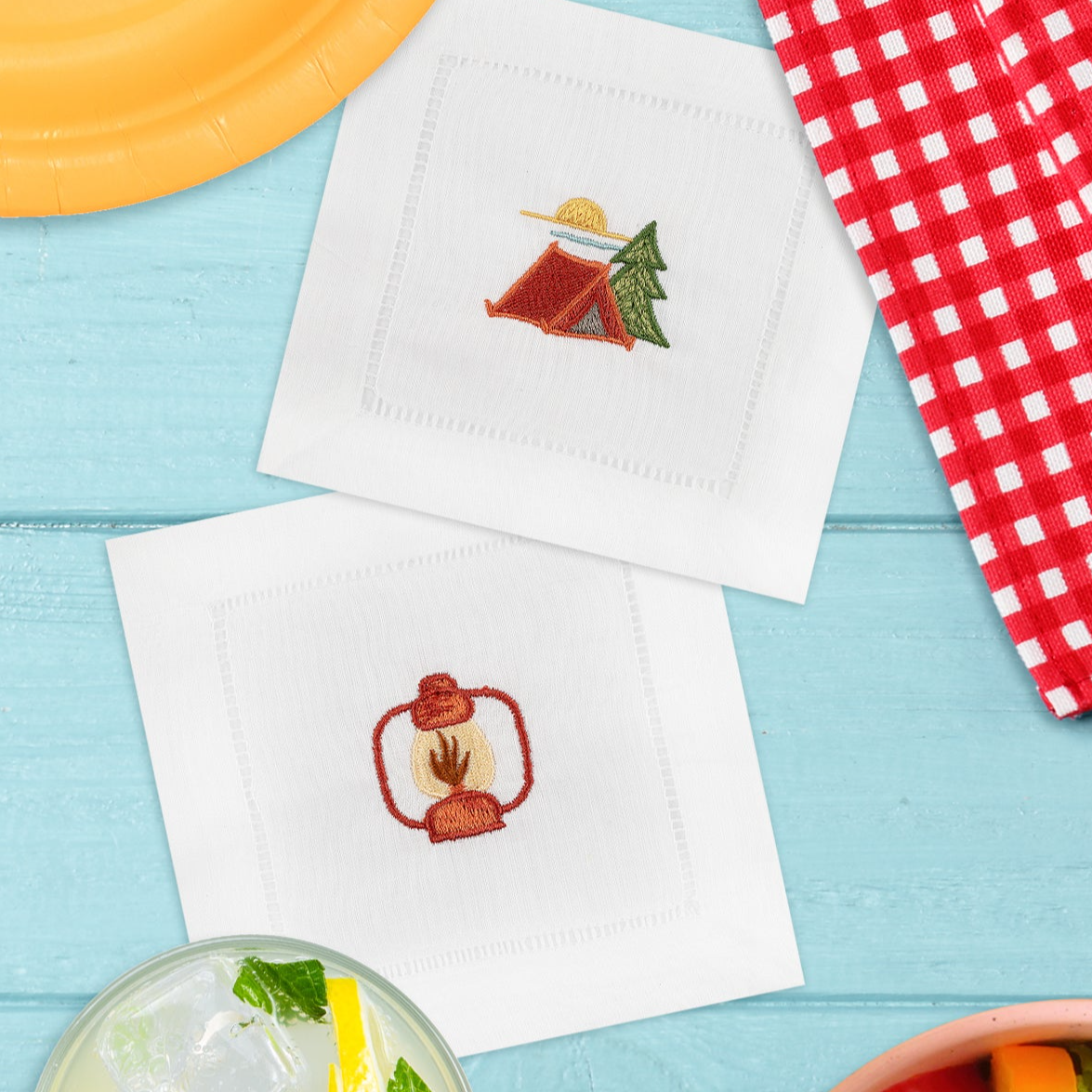 The designs may be small, but they have huge potential! This collection of 4x4 compatible outdoor adventure themed icons can be sprinkled throughout so many projects—from hats and clothes to napkins and placemats!