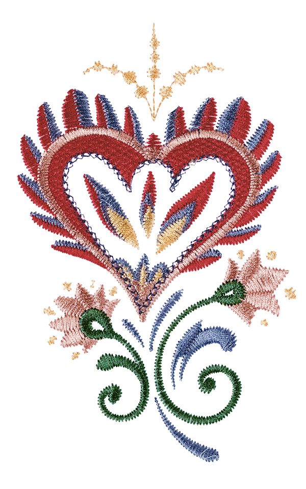 While the designs may appear intricate, they stitch out quickly and effortlessly with just a few simple color changes. This allows you to enjoy the beauty of Jacobean embroidery without the complexity typically associated with it. Whether you're an experienced embroiderer or new to the craft, you'll find joy in watching these stunning hearts come to life with each stitch.
