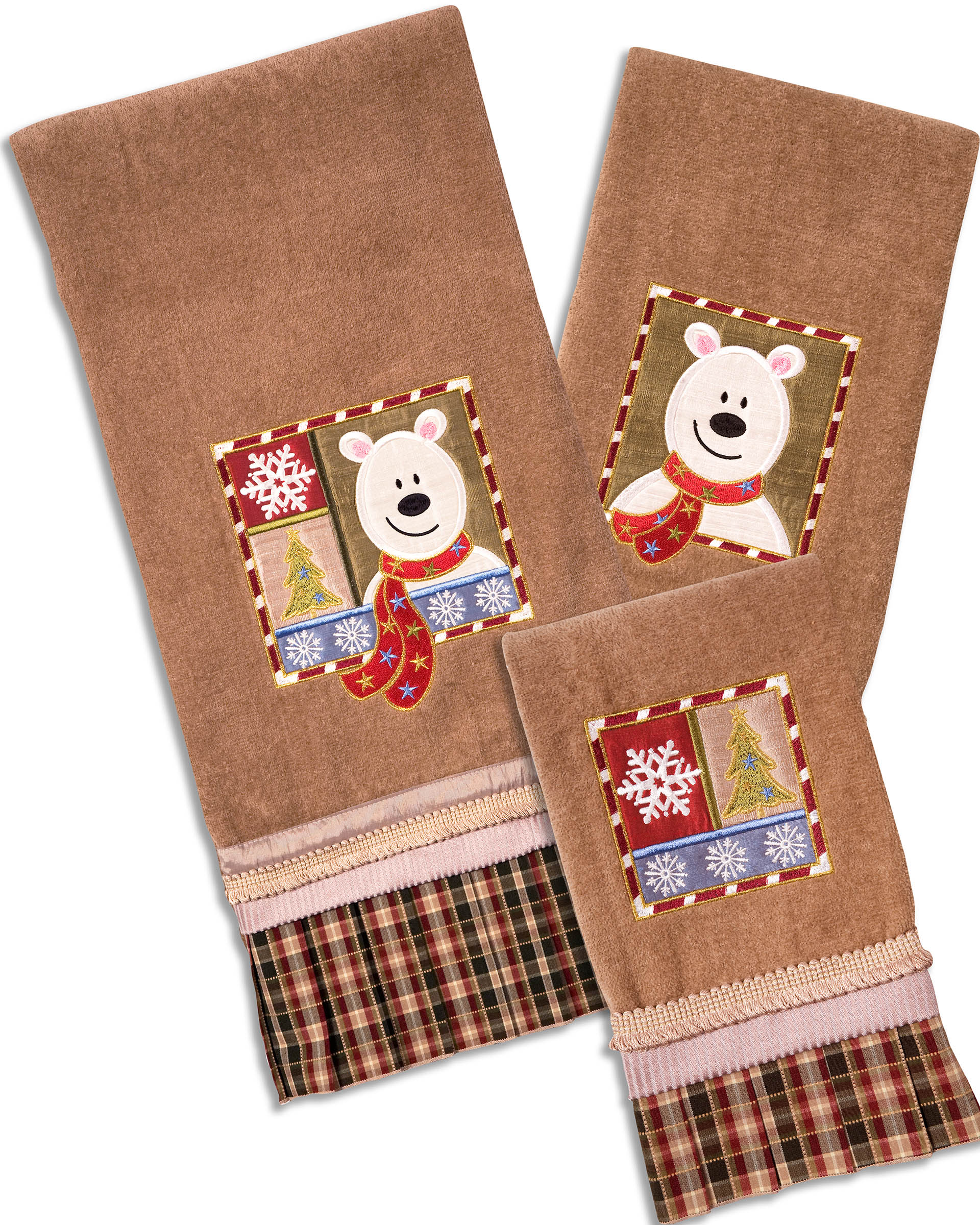 Welcome to the third Jolly Holiday collection! Most of our collections focus on one theme with dozens of designs that can be interchanged to create lots of different projects. Sometimes we have an idea for a theme or motif but are unable to base a whole collection on that idea. That’s where the Jolly Holiday collections come in. These collections have multiple themes with a large main designs and other designs that accompany them perfectly. They work extremely well on towel sets, which as you know make the perfect holiday gift! Jolly Holiday 3 has 5 themes with 30 designs total. The themes are Polar Bears, Elegant Reindeer, Christmas Puppy, Candles, snow-filled scenes and of course a new snowman.