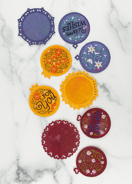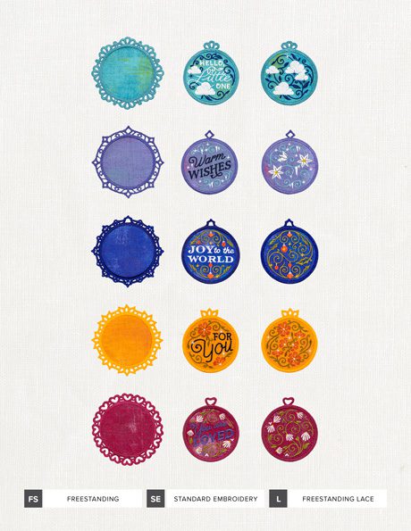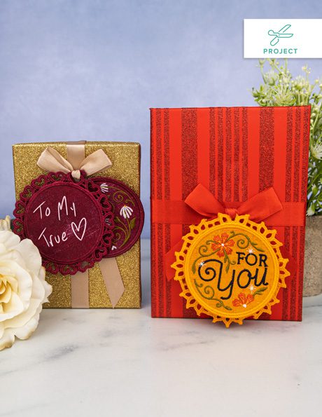 This collection has fifteen individual files that create five beautiful gift tag sets - the first with an adorable motif, the second with matching text, and the third plain that can be stitched as-is or can feature merged designs. Use the plain tag to add a name or phrase using a fabric pen or your machine software and pair it with the fully embroidered decorative tag or the tag with the pre-stitched saying. Mix and match your gift tag duos for a customized experience.