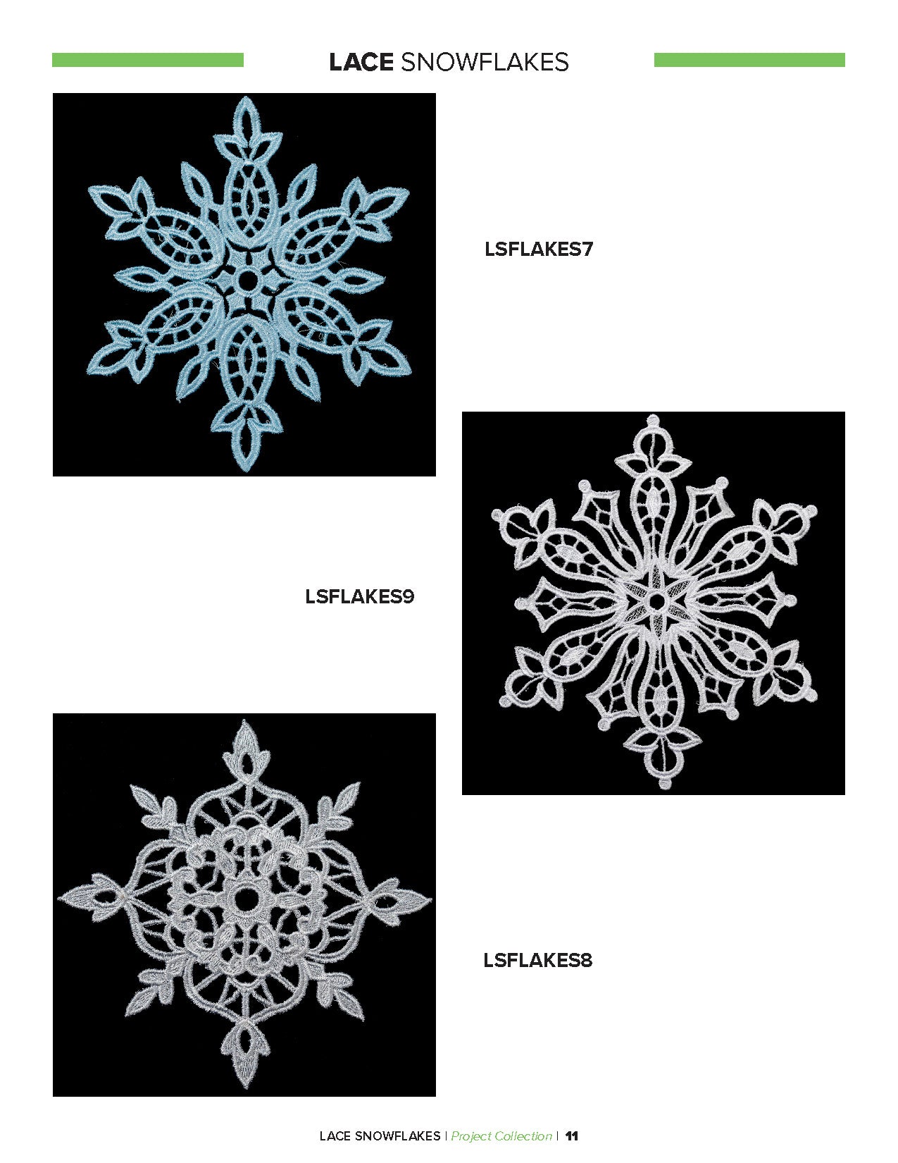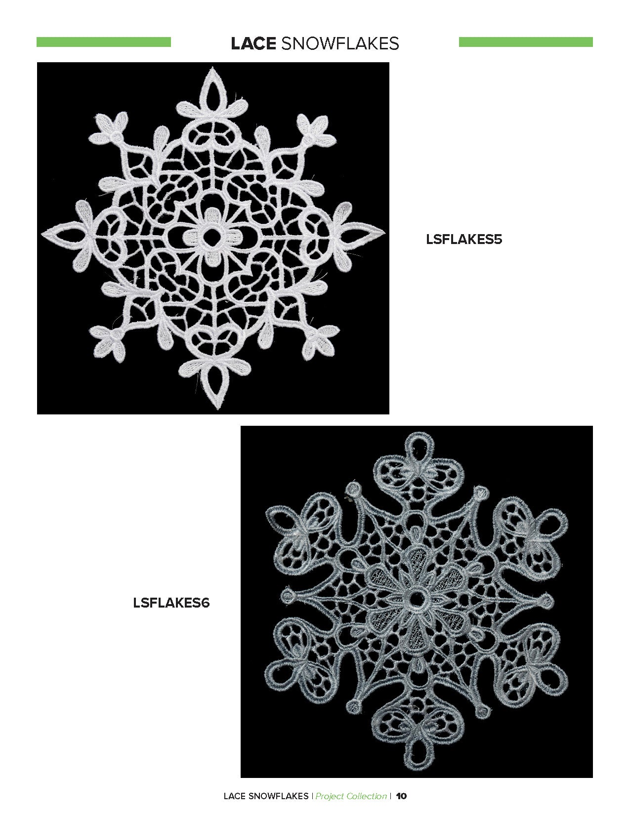 All twelve designs are stitched out using the traditional free standing lace technique. This means they have been specially digitized for water soluble stabilizer. When the water soluble stabilizer is removed, a beautiful lace snowflake will remain behind. Free standing lace is a simple technique to master, as it uses minimal thread changes and is always stitched on a water soluble stabilizer. Run a few embroidery steps and you will create your very own blizzard of beautiful lace snowflakes. The tutorial will instruct you on how to create your snowflakes and as an added bonus we have included project ideas, such as a centerpiece and wall decor. You are now ready to take your Lace Snowflakes to the next level!