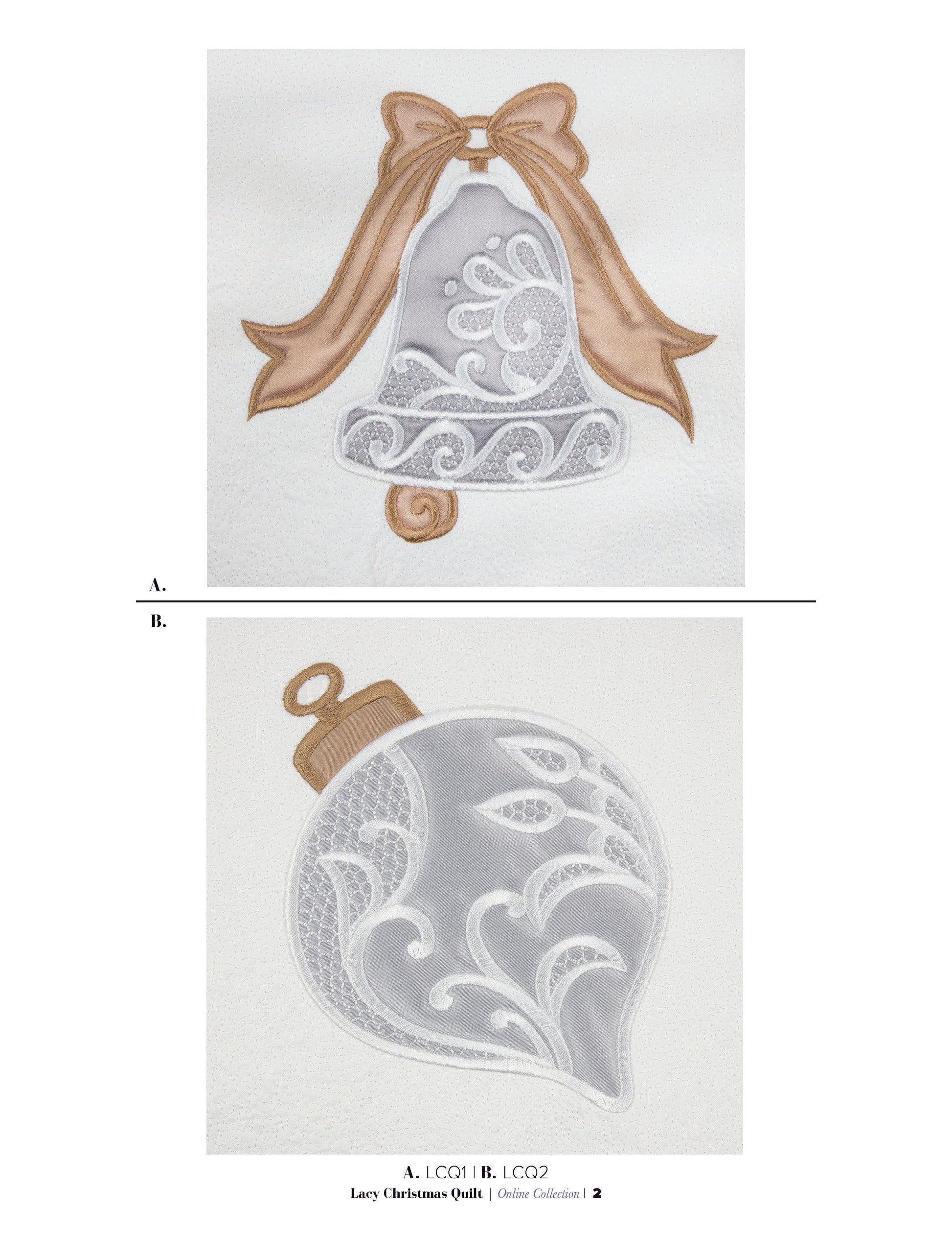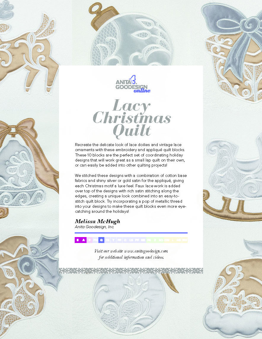 Introducing our enchanting Lacy Christmas Quilt Collection - a captivating blend of delicate lace doilies and vintage lace ornaments brought to life through exquisite embroidery and appliqué quilt blocks. Immerse yourself in the timeless charm of the holiday season with these 10 intricately designed blocks that exude elegance and festive cheer.