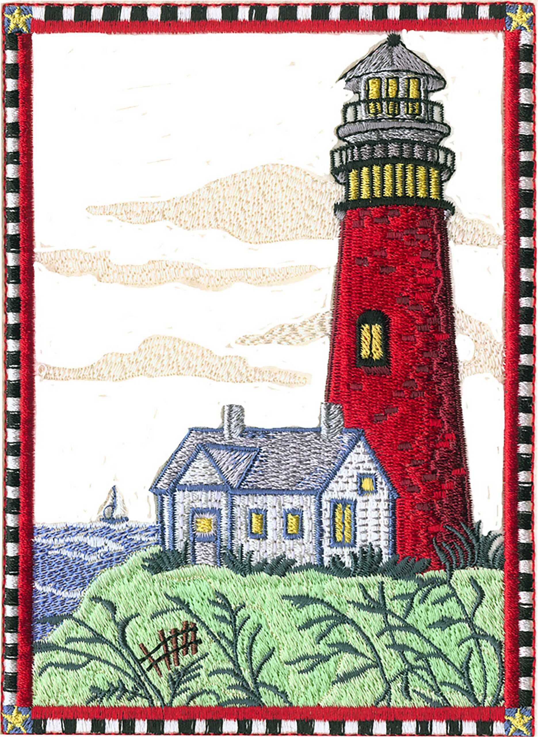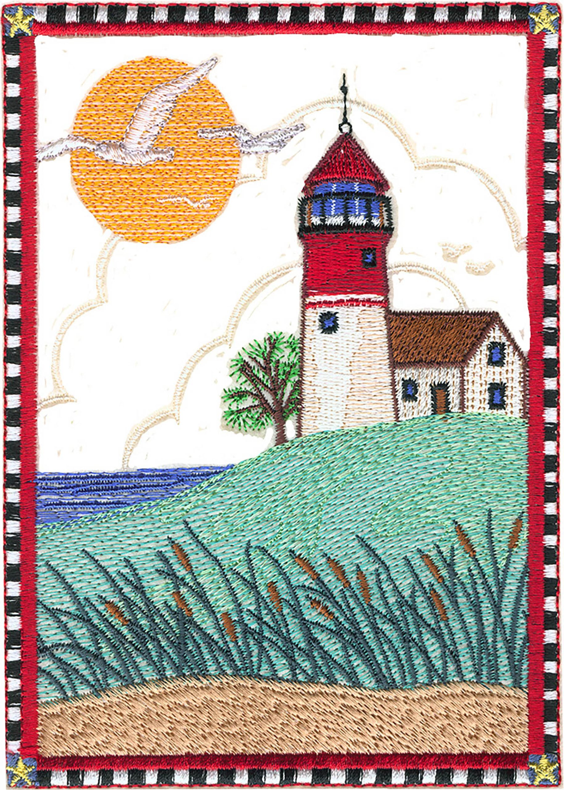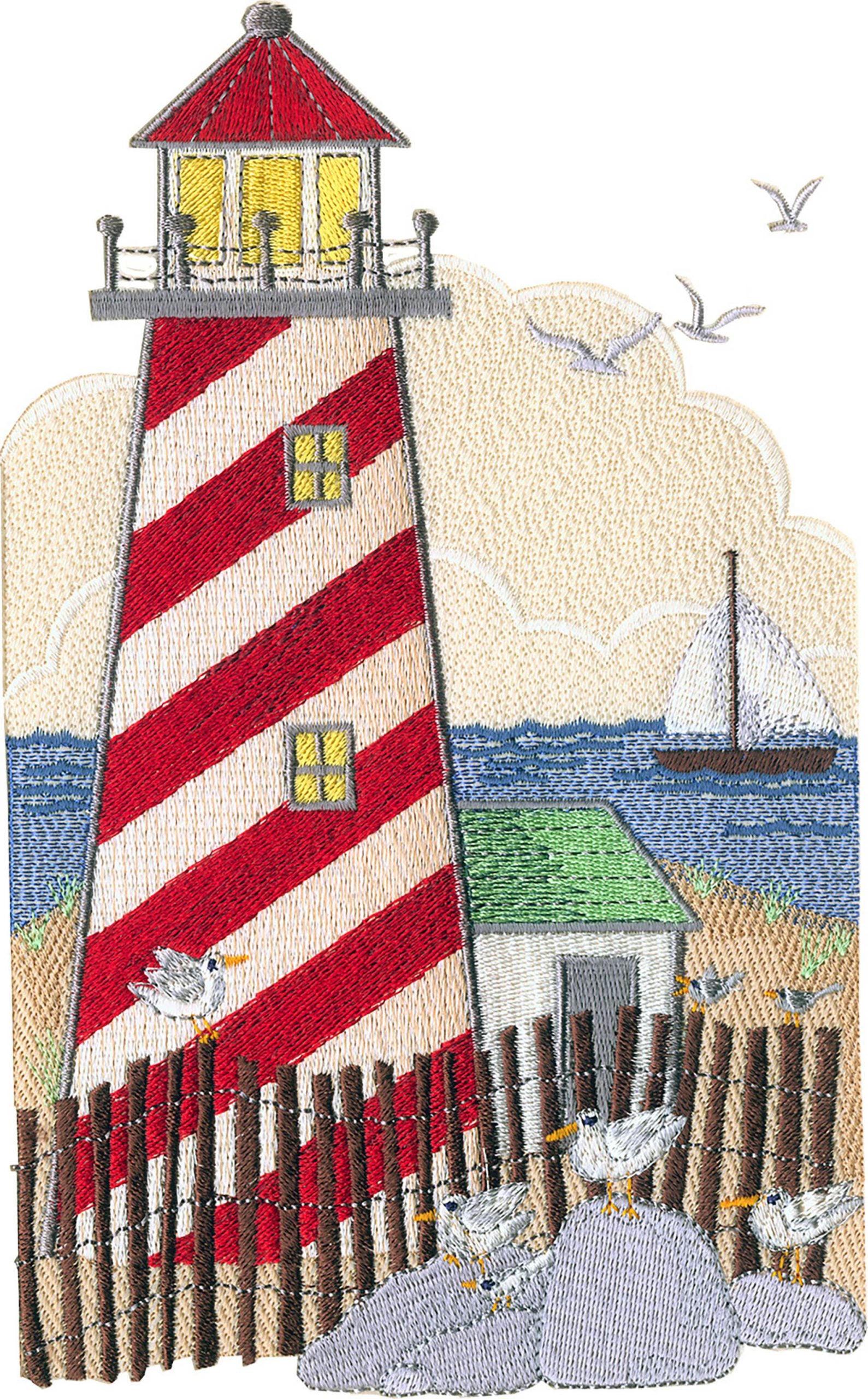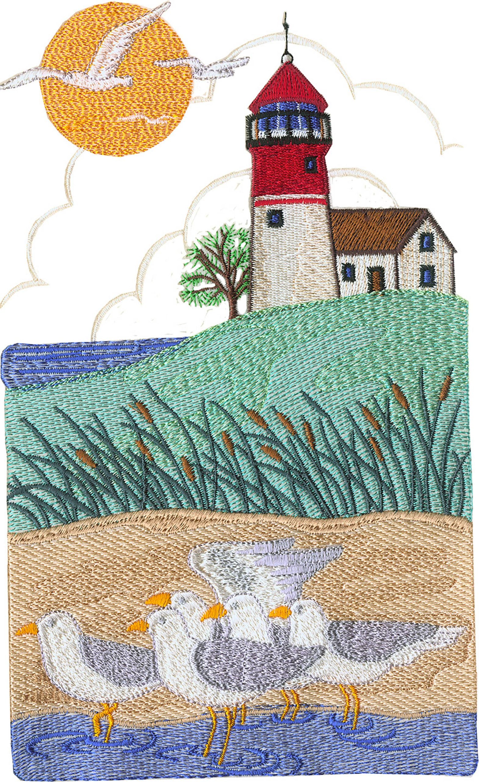 Creating this collection of lighthouses designs has been an absolute joy for us, and we can't wait for you to experience the same joy as you embroider them. Lighthouses have long captured the imagination and symbolize strength, guidance, and the beauty of coastal landscapes. From the serene beaches of the east coast to the rugged shores of the west coast, there is something truly captivating about a lighthouse perched on a sandy dune with seagulls soaring above, the vast ocean stretching out before you, and the warm glow of sunshine enveloping everything.