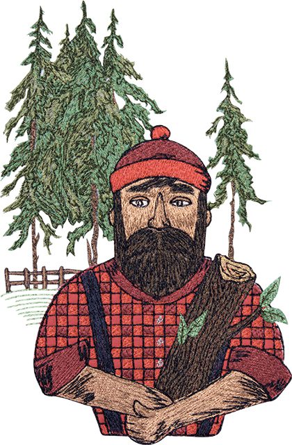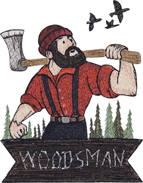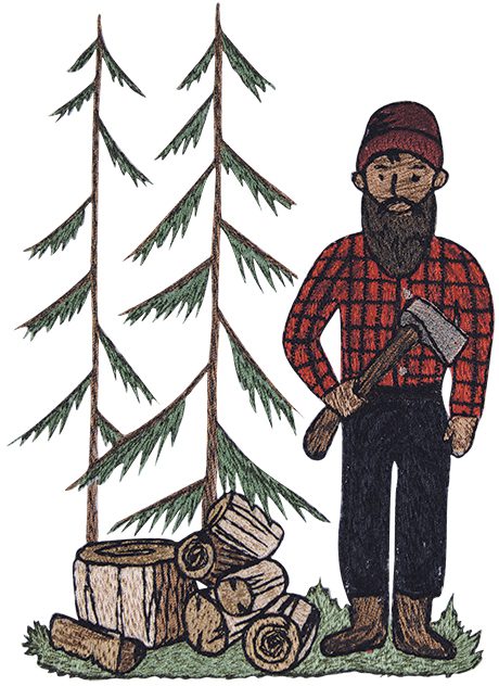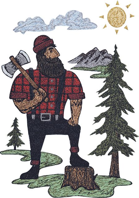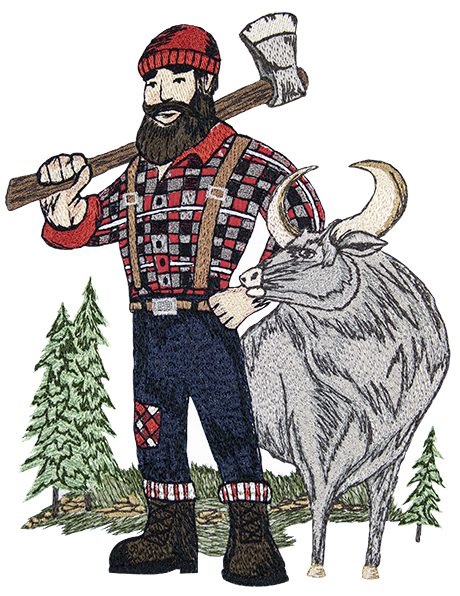 Calling all lumberjacks, Paul Bunyan has arrived at Anita Goodesign! Babe the Blue Ox even makes a cameo! Our Logging collection features 8 lumberjack designs to suit any woodsman’s fancy. It includes an assortment of designs such as a patch design, as well as scenes of burly luambermen out in the wilds, perfect for putting on the back of a denim jacket.