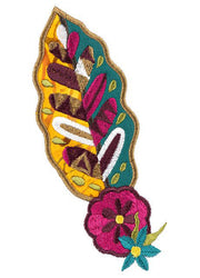 Standard appliqué accompanied by detailed floral embroidery will surely help this geometric leaf motif stand out!
