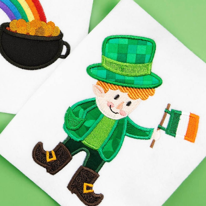 Get all the luck you’ll ever need with these 3 Irish-themed designs, which include a lucky leprechaun, a trio of clovers, and a rainbow leading straight to a pot of gold!