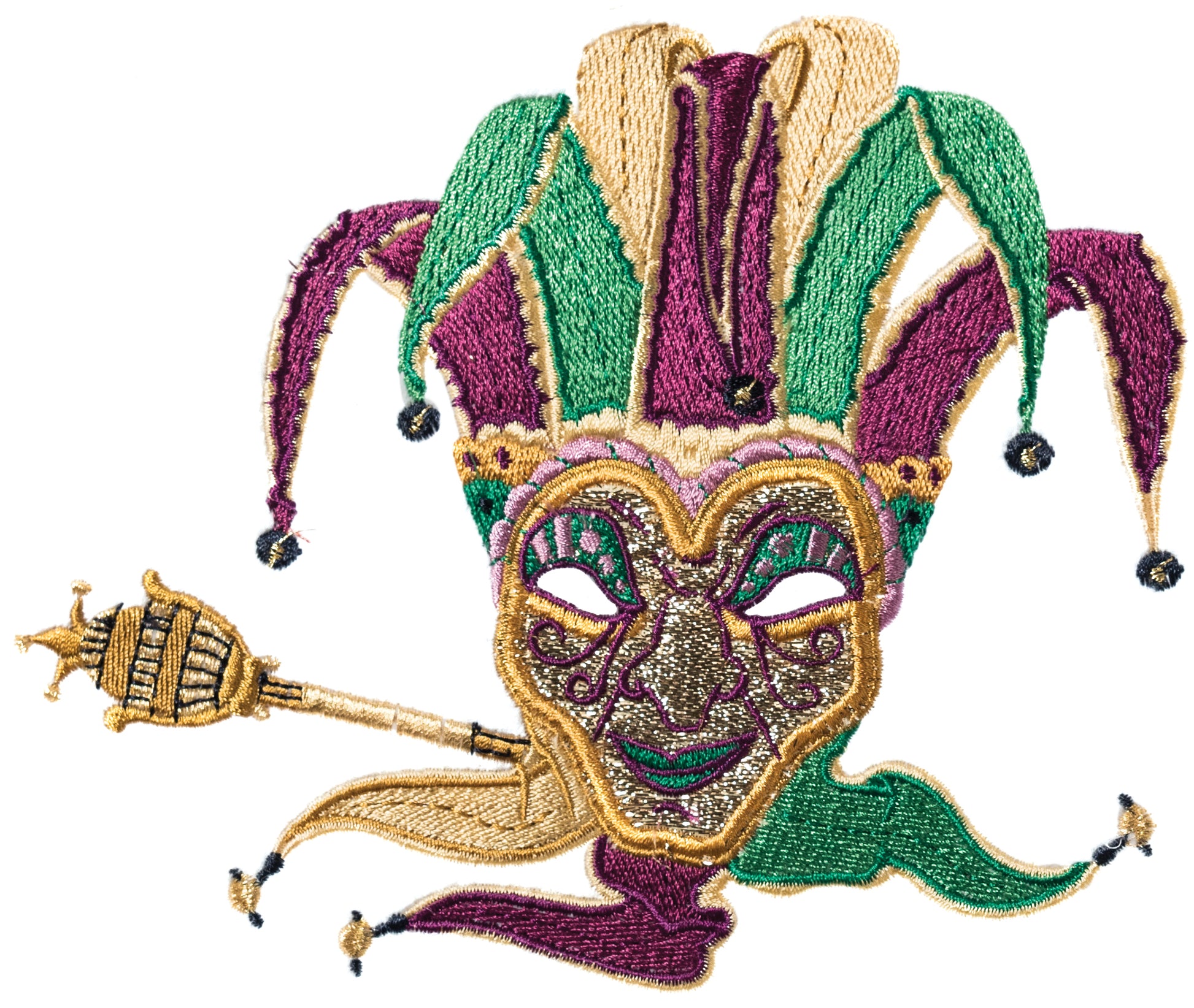 Step into the world of vibrant celebration with our exquisitely embroidered Mardi Gras designs! These stunning pieces have been meticulously crafted with an array of vibrant polyester threads, a touch of metallic gold thread, and carefully placed appliqués to bring them to life. Get ready to embrace the festive spirit and add a burst of colorful artistry to your garments!