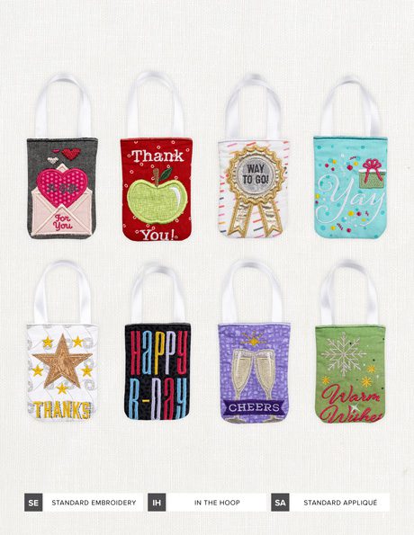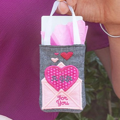 Creating your very own Mini Gift Card Bag is sew simple! From teacher appreciation gifts to a last-minute Secret Santa, you can perfectly craft a Mini Gift Card Bag to fit any recipient or occasion. Each of the 8 bag designs included are fully lined and finished off with a top satin stitch for a clean look. This in-the-hoop project stitches up surprisingly quick—no extra sewing required—so you’ll have a tiny holder for your gift card in no time.