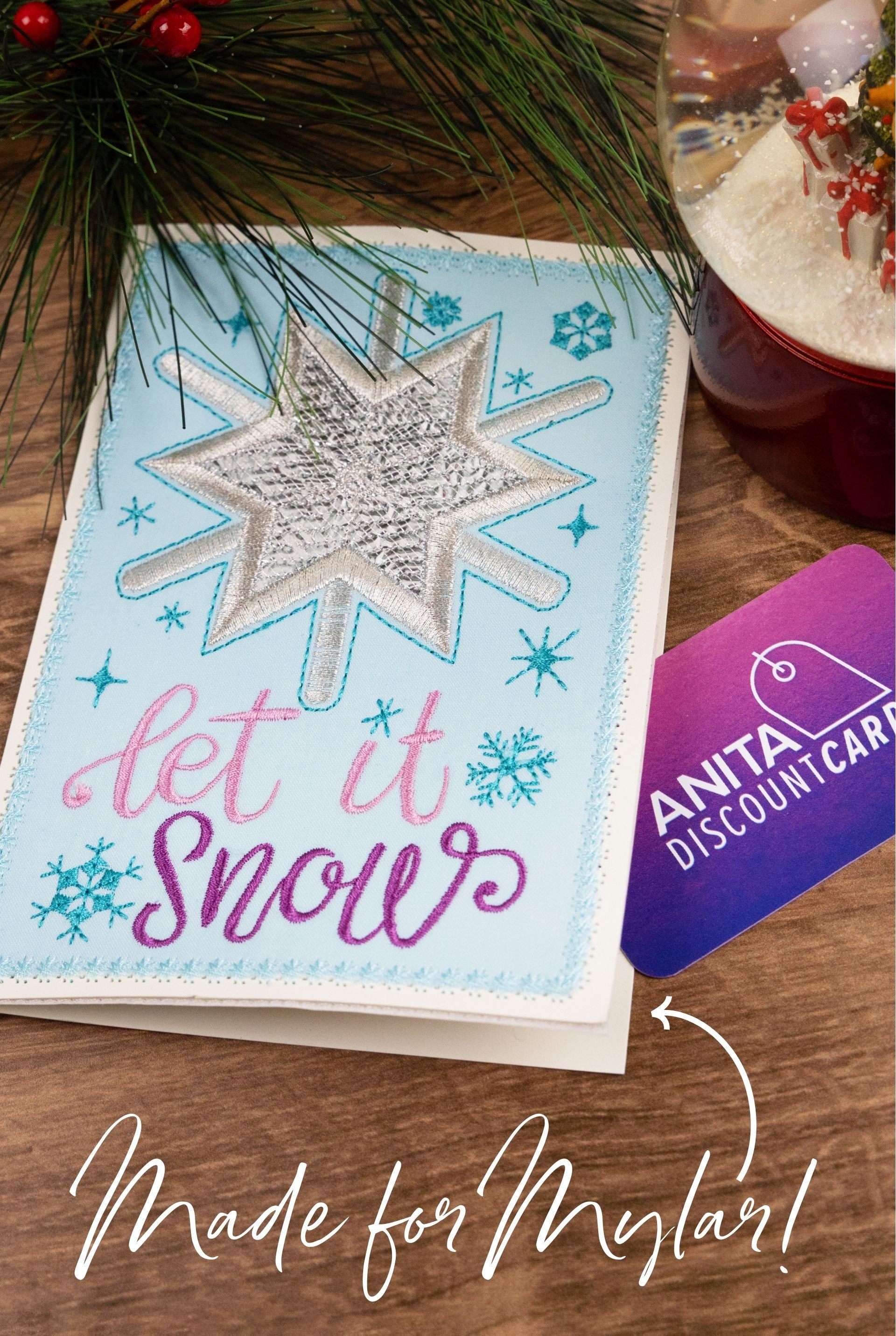 Give mylar a chance and send your holiday wishes this year with these 8 specially stitched cards. Mail off annual family photos, give gift cards, or just send a “Happy Holidays” to your friends and loved ones with the shimmering, homemade cards in this collection. Don't worry, if you aren't sure about trying mylar, any standard appliqué will also work with these designs!