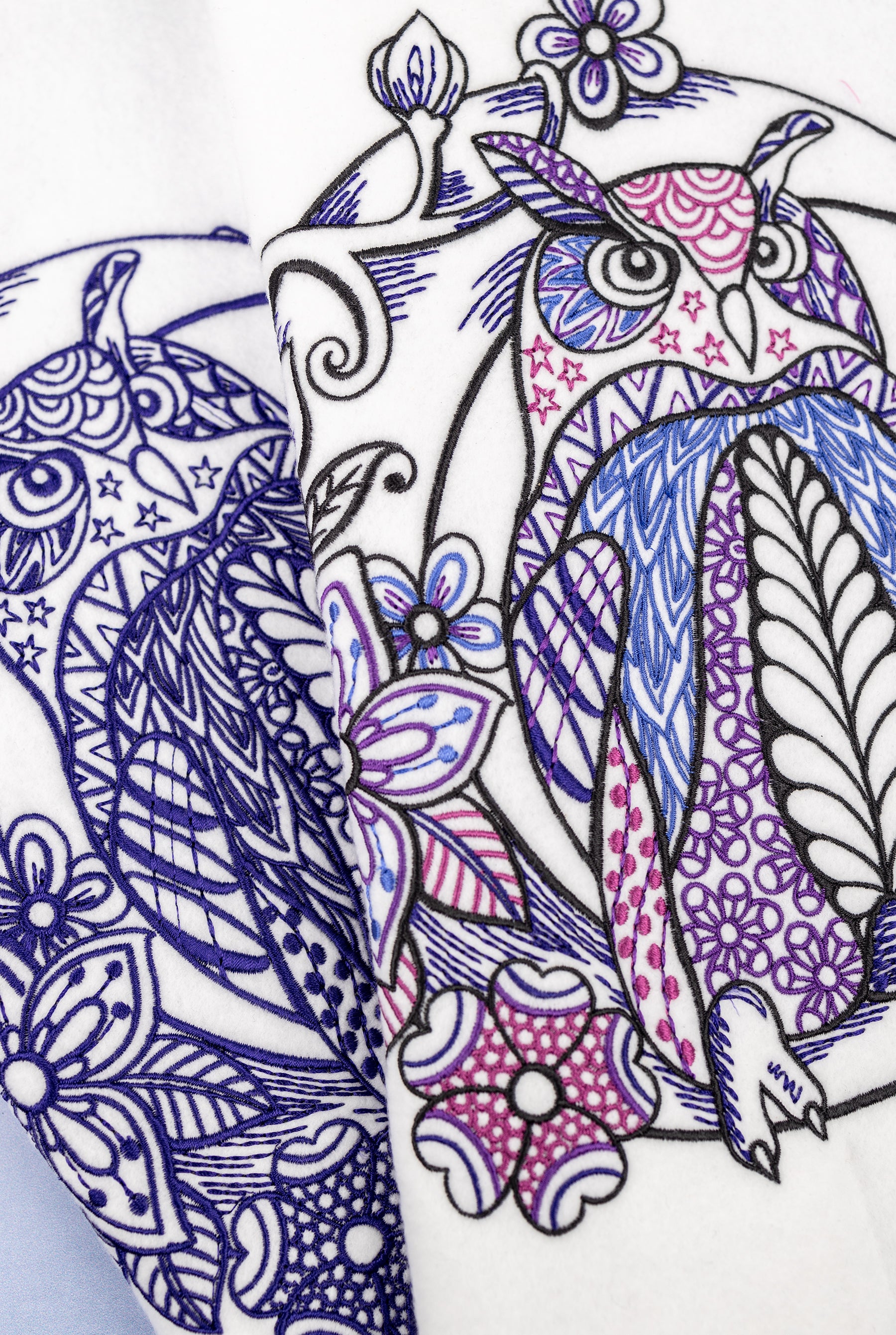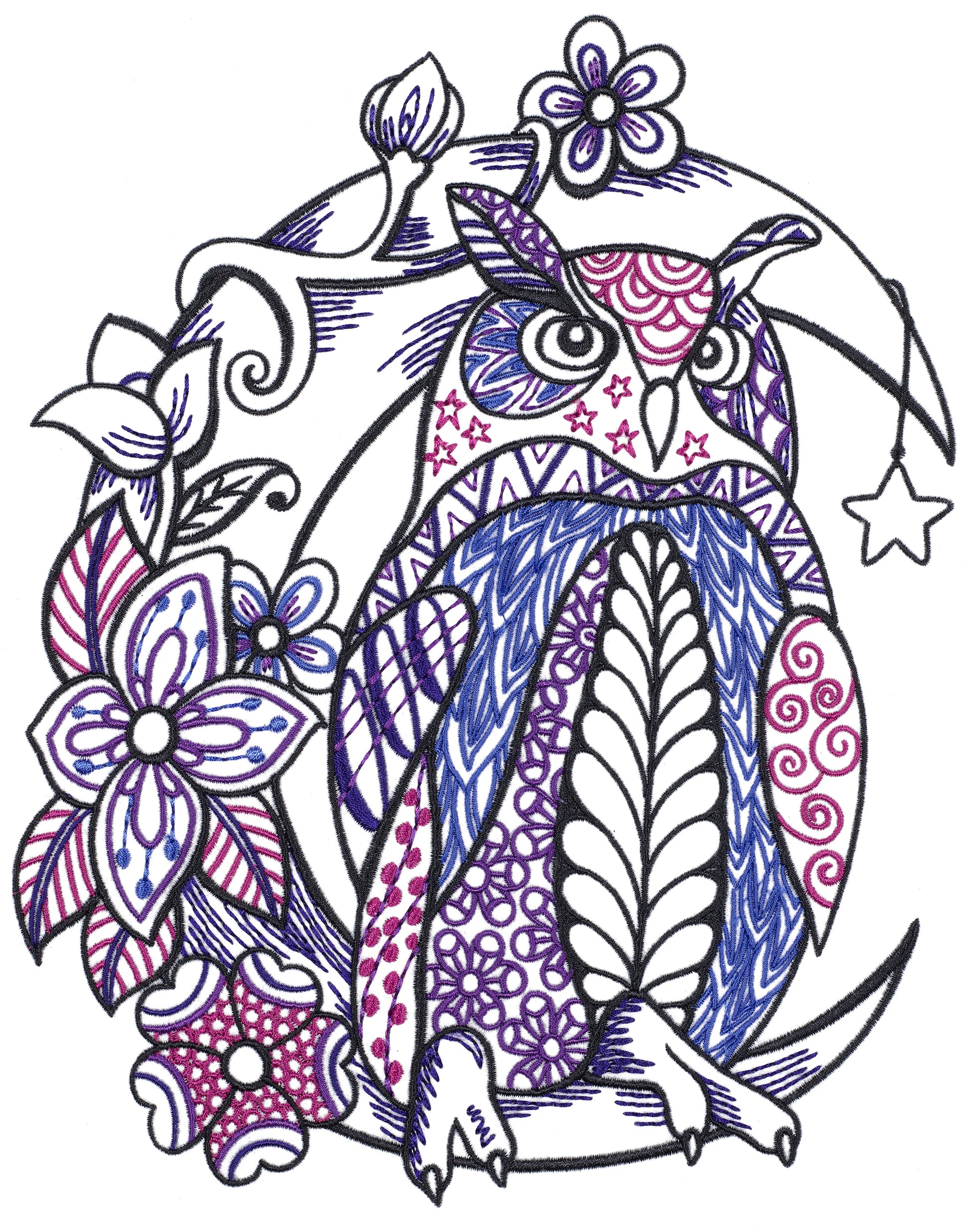 Who doesn't love a cute and playful owl? This nocturnal friend is full of captivating details and patterns that create an artfully expressive design...perfect for stitching onto decor like pillows or popped into a frame. Embroider this delightfully detailed owl on kids' shirts, jackets, or sleepwear for a dreamy, embroidered touch. We've even included 2 different variations—multi-color or single-color—so you can color your design any way you'd like!