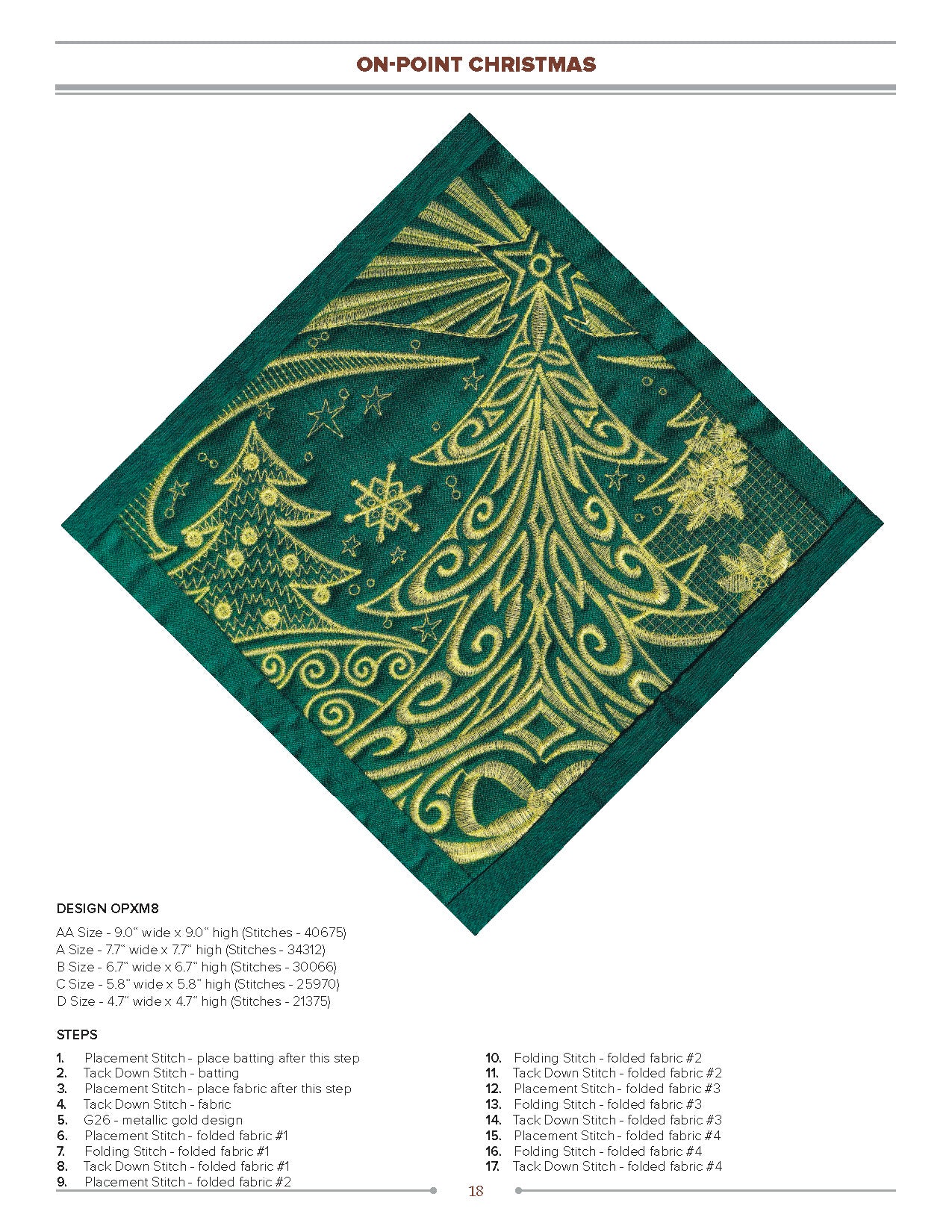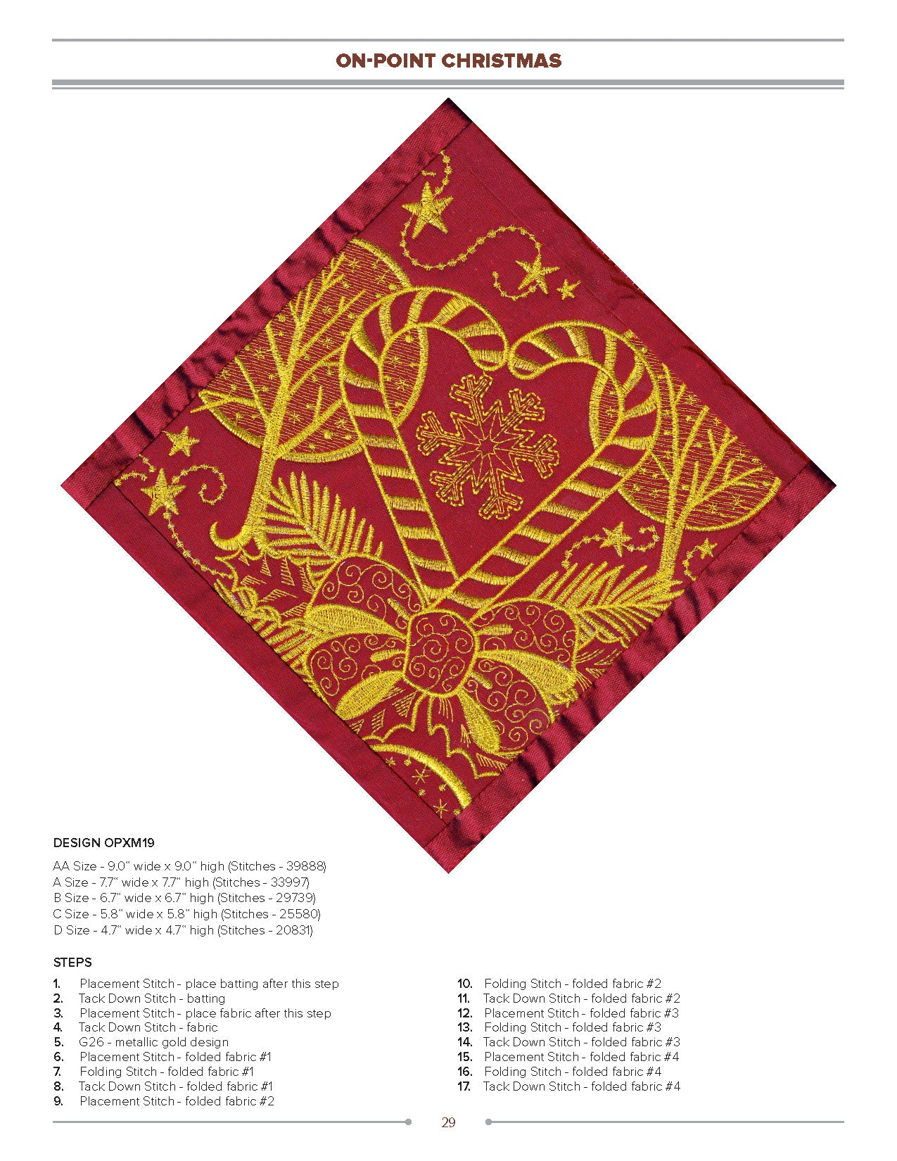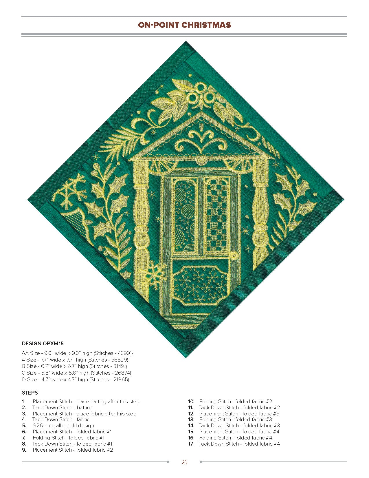 The folded fabric technique employed in these blocks adds depth, texture, and visual interest to your quilts. It creates a captivating interplay of light and shadow, accentuating the intricate details of the designs. Whether you choose to create a holiday-themed quilt or incorporate these blocks into a larger quilt project, the On-point Christmas collection will infuse your creations with a festive spirit and a touch of elegance.
