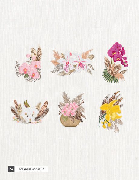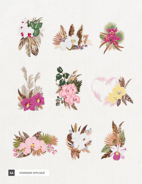 With 15 detailed designs in 4 different sizes to choose from, this collection will have you wanting to stitch some sweet bouquets of these bloom-and-plume pairings! Just imagine: it’s a gorgeous spring day and you need only a light jacket to go outside. These designs stitched out on the back of a jean jacket would make the perfect stylish touch. You could even stitch a matching one for your mini-me!