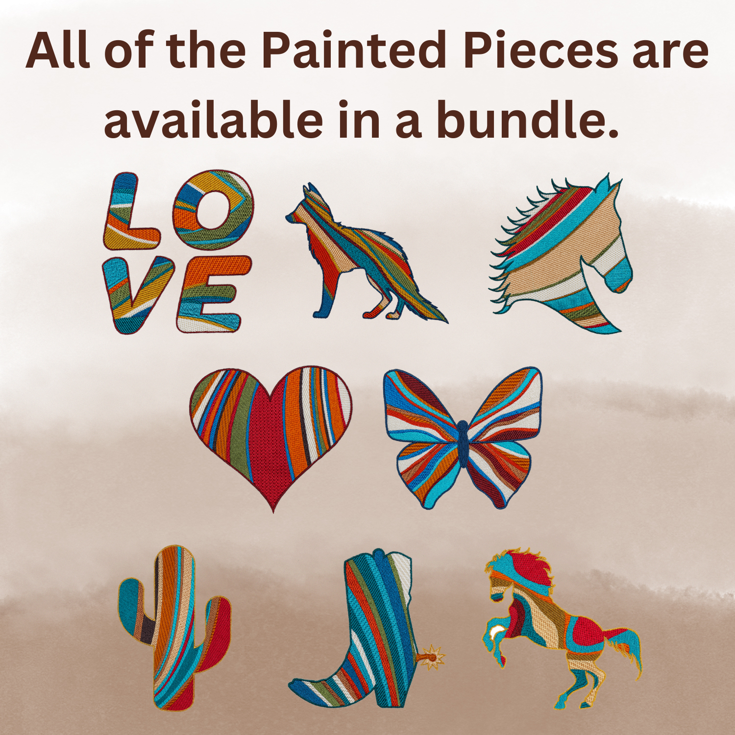 From Anita Goodesign's founder Stephen Wilson's Studio comes this specially digitized, fully embroidered wolf silhouette piece that comes in 3 sizes for plenty of project options! Each "painted" stripe features a different fill stitching, elevating the design with a variety of textures and a high-end designer style.