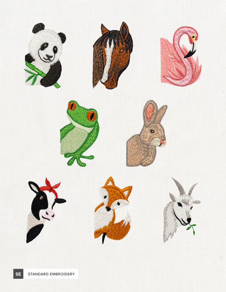 This collection comes with 8 designs that come in one size and all fit within a 4”x 4” hoop. Each tiny design stitches easily onto almost anything. You can check out our video on Garment Embroidery to get some inspiration, tips, and tricks.