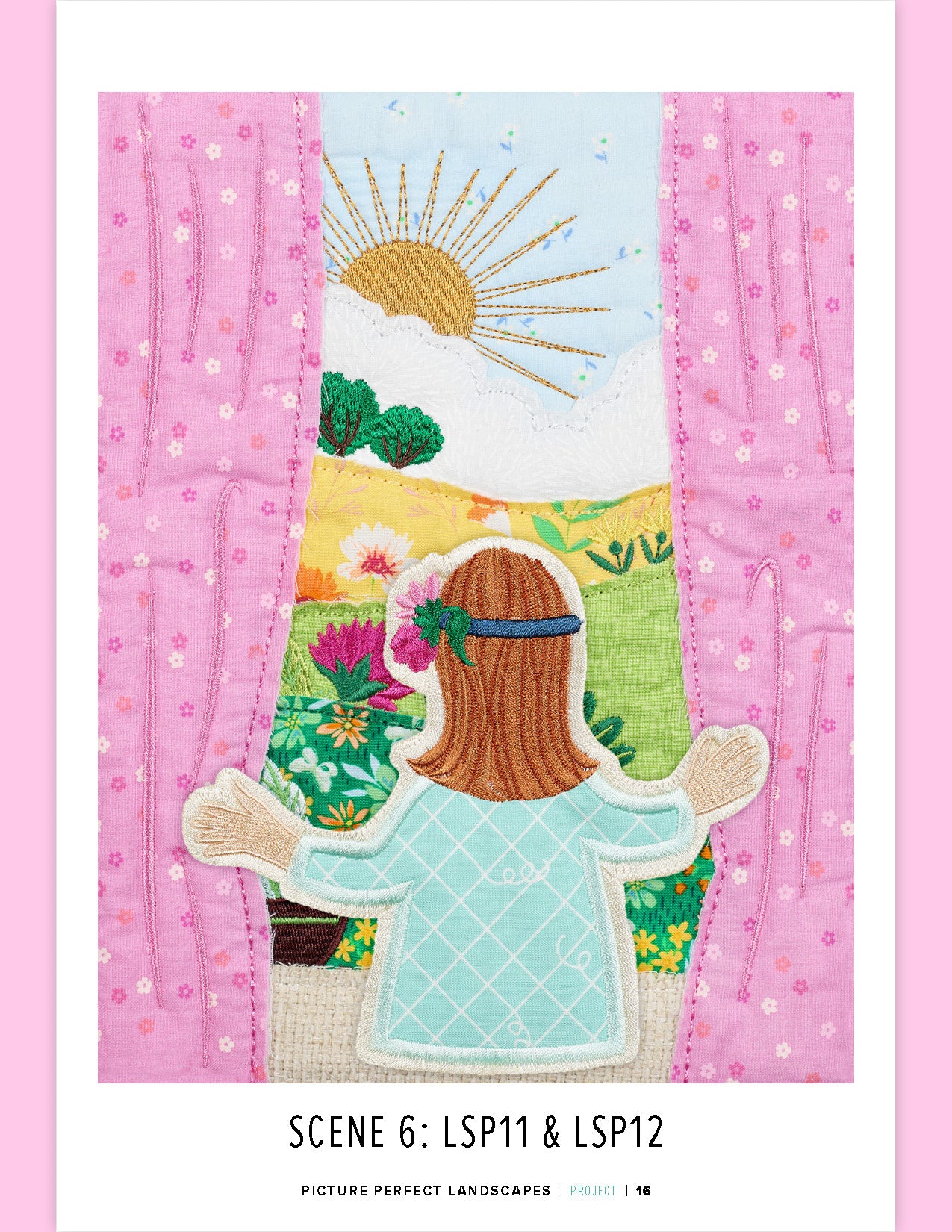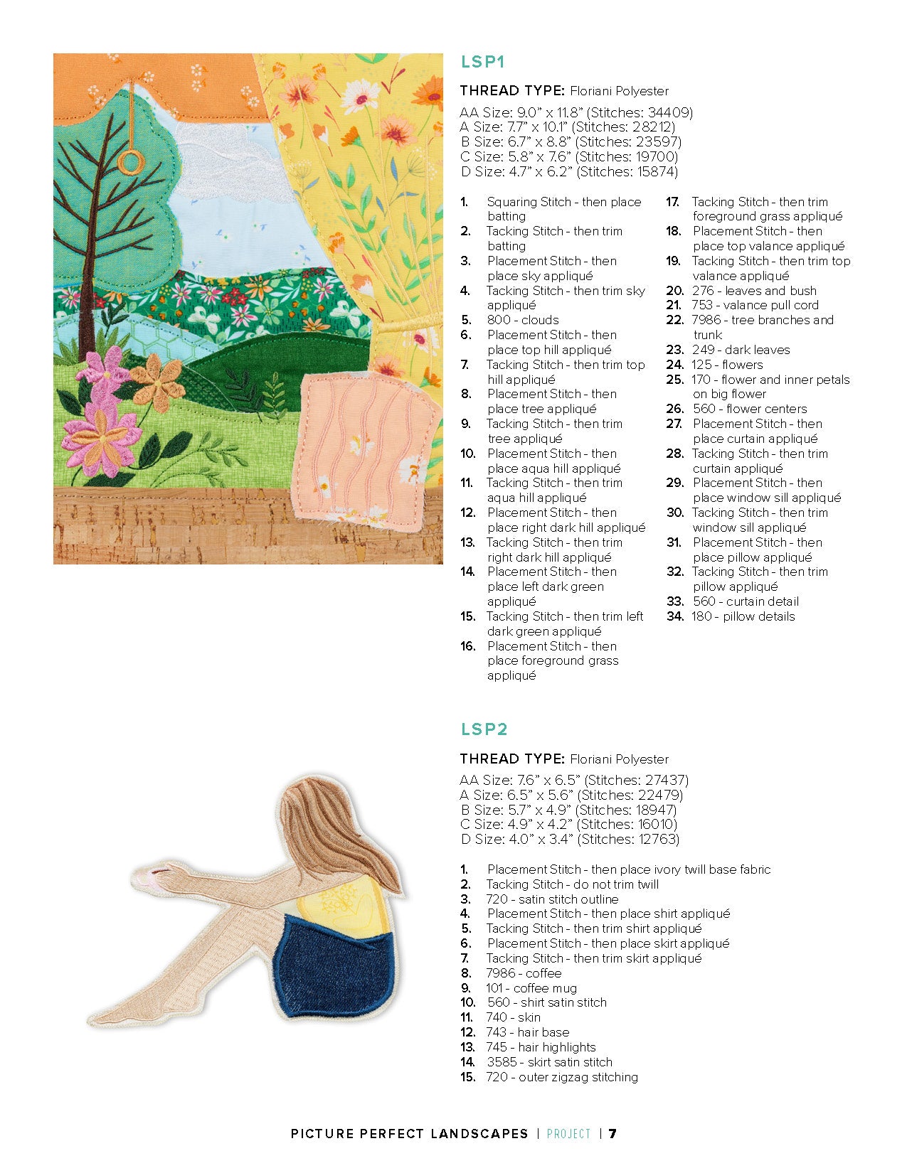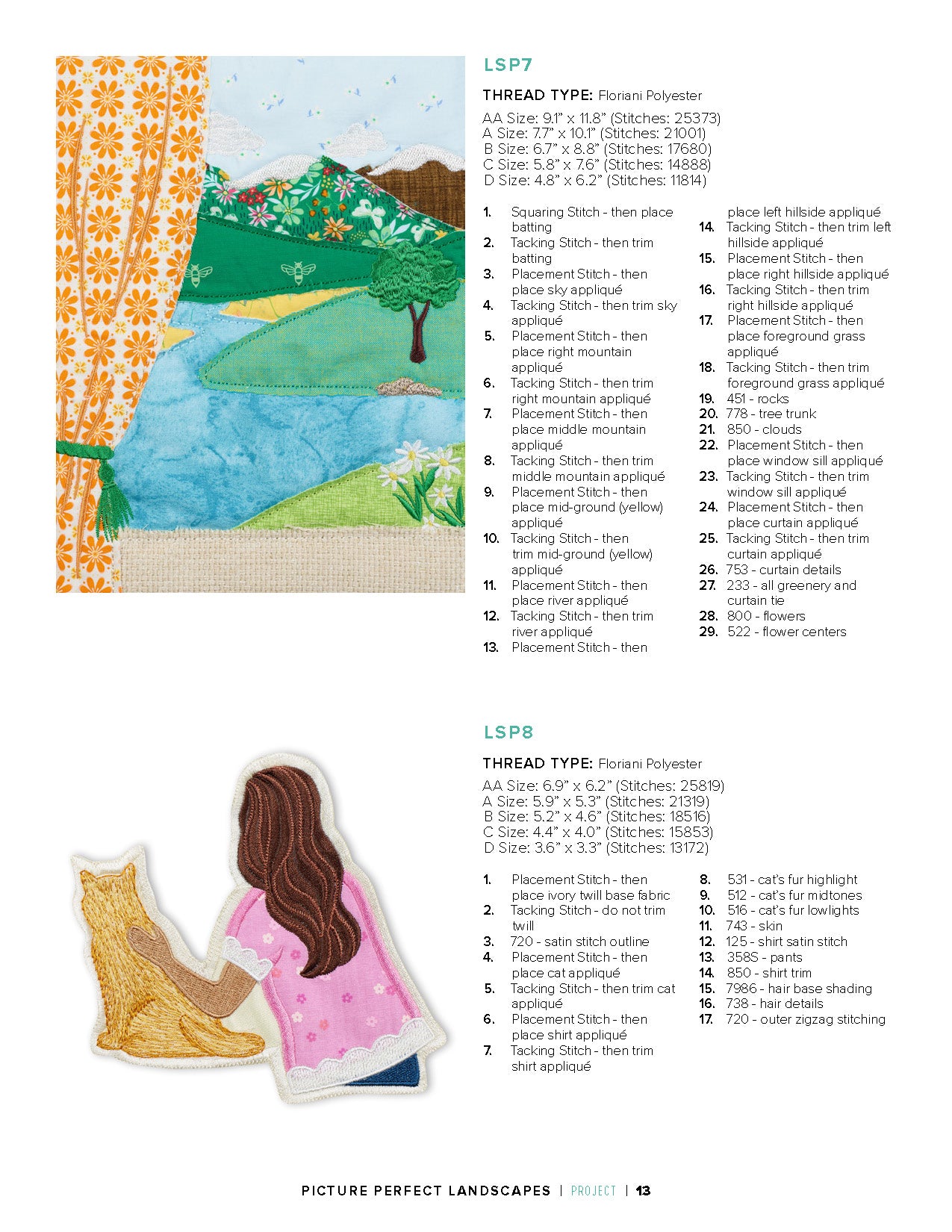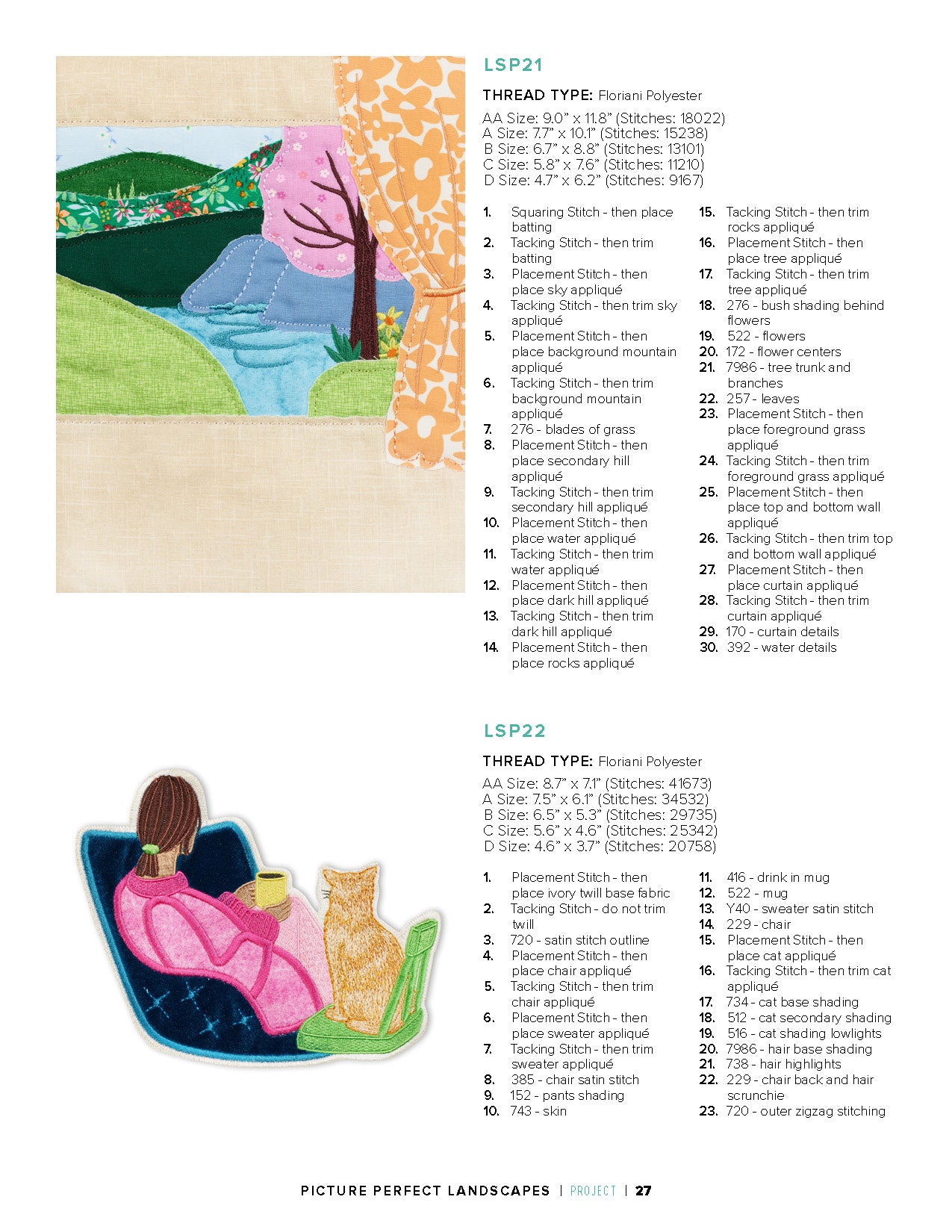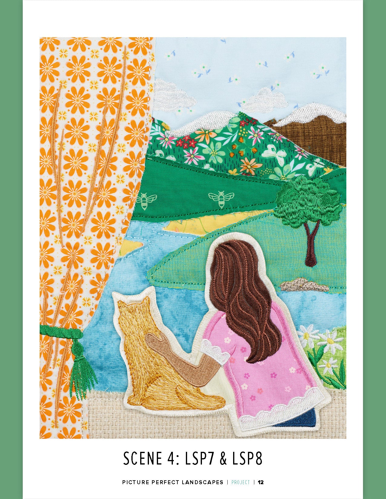 Rolling hills, fresh flowers, and stunning sight to behold! These Picture Perfect Landscapes combine all the right elements to make each scrappy scene look like a work of art! Each of the 12 character designs coordinate with a picturesque and lively landscape, constructed with raw edge appliqués! From fun fabric choices to the finishing stitches, each scene promises something new to look at. Grab your hoop, threads, and fabrics and get ready to create some truly “picture perfect” moments!