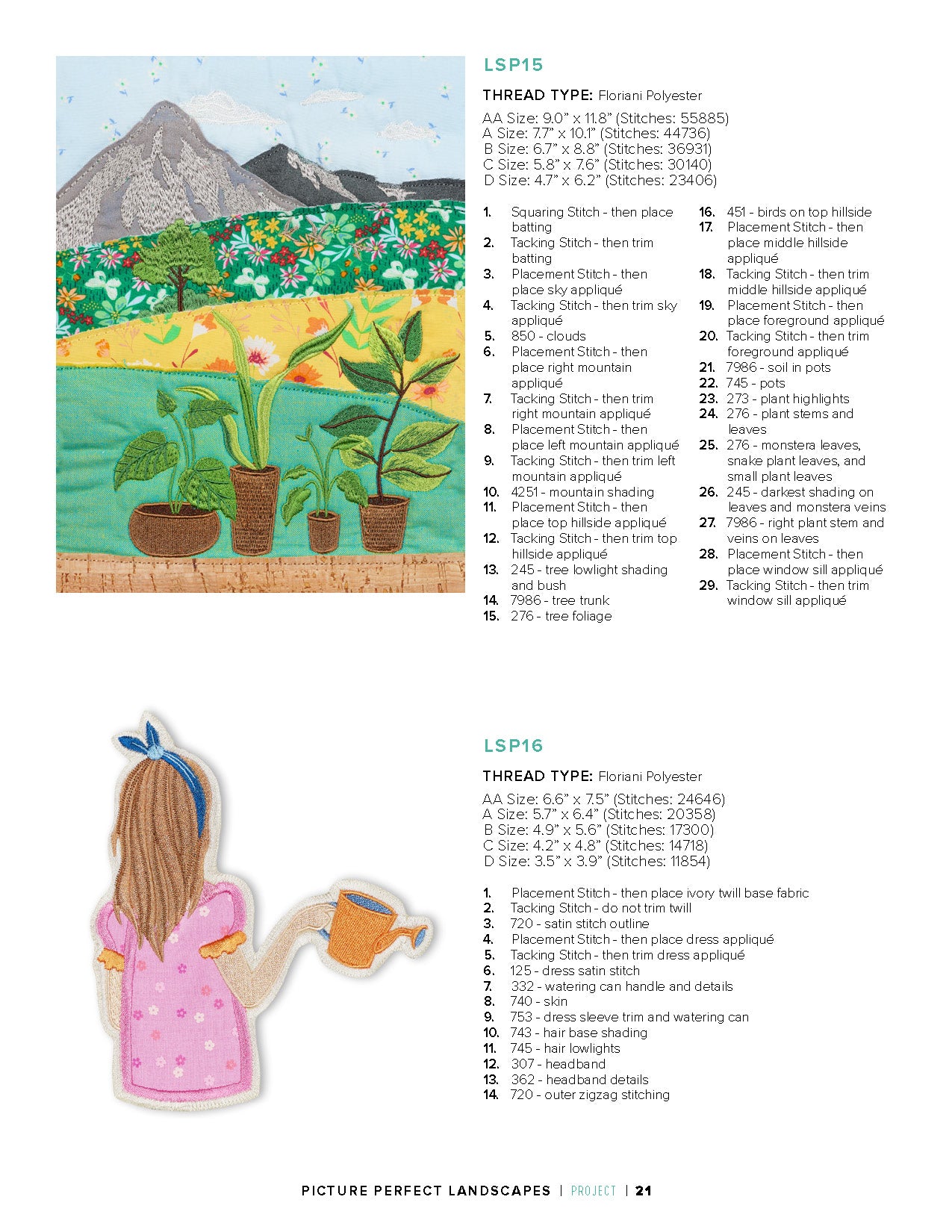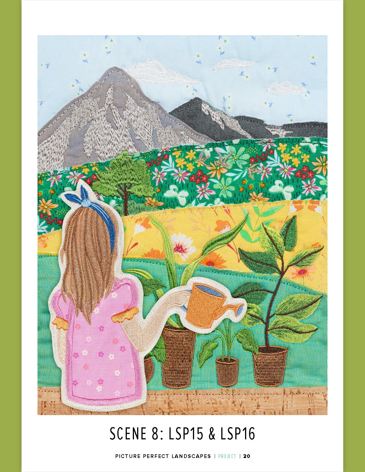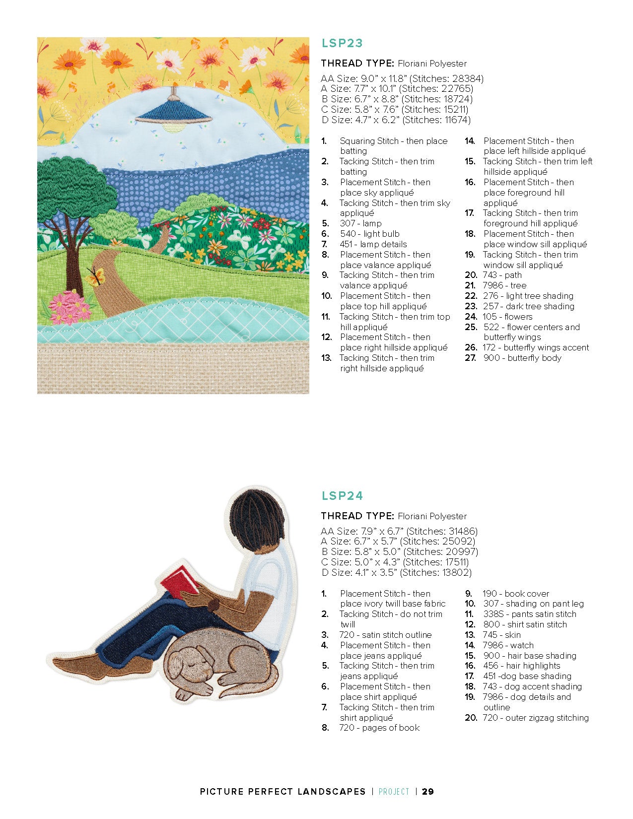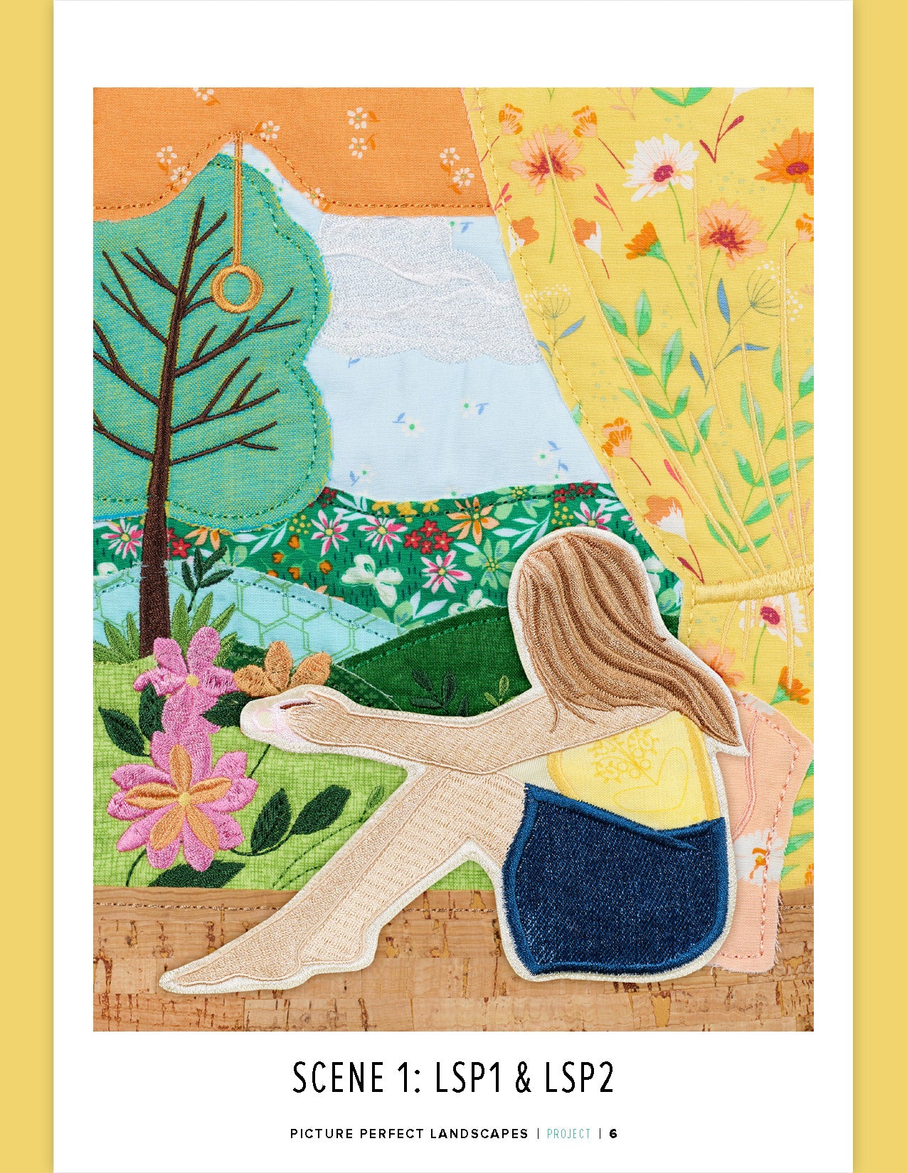 Rolling hills, fresh flowers, and stunning sight to behold! These Picture Perfect Landscapes combine all the right elements to make each scrappy scene look like a work of art! Each of the 12 character designs coordinate with a picturesque and lively landscape, constructed with raw edge appliqués! From fun fabric choices to the finishing stitches, each scene promises something new to look at. Grab your hoop, threads, and fabrics and get ready to create some truly “picture perfect” moments!