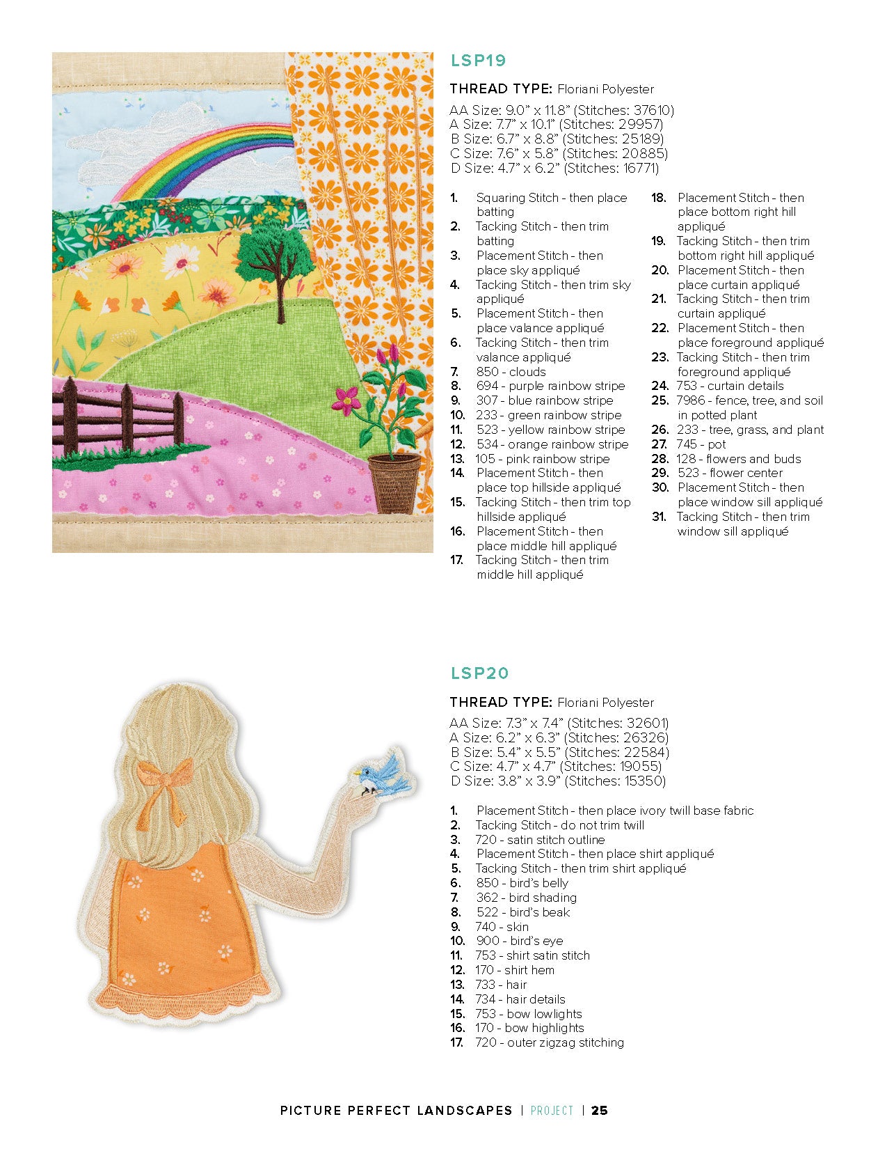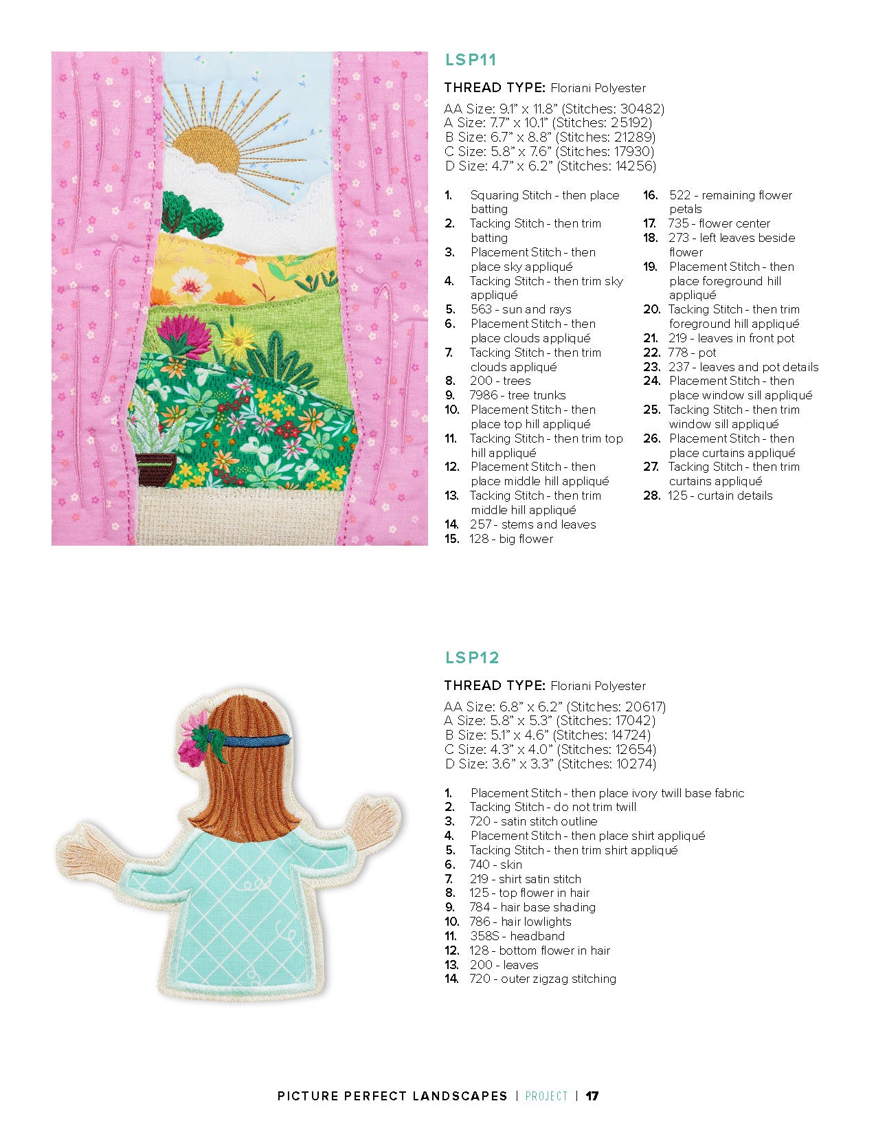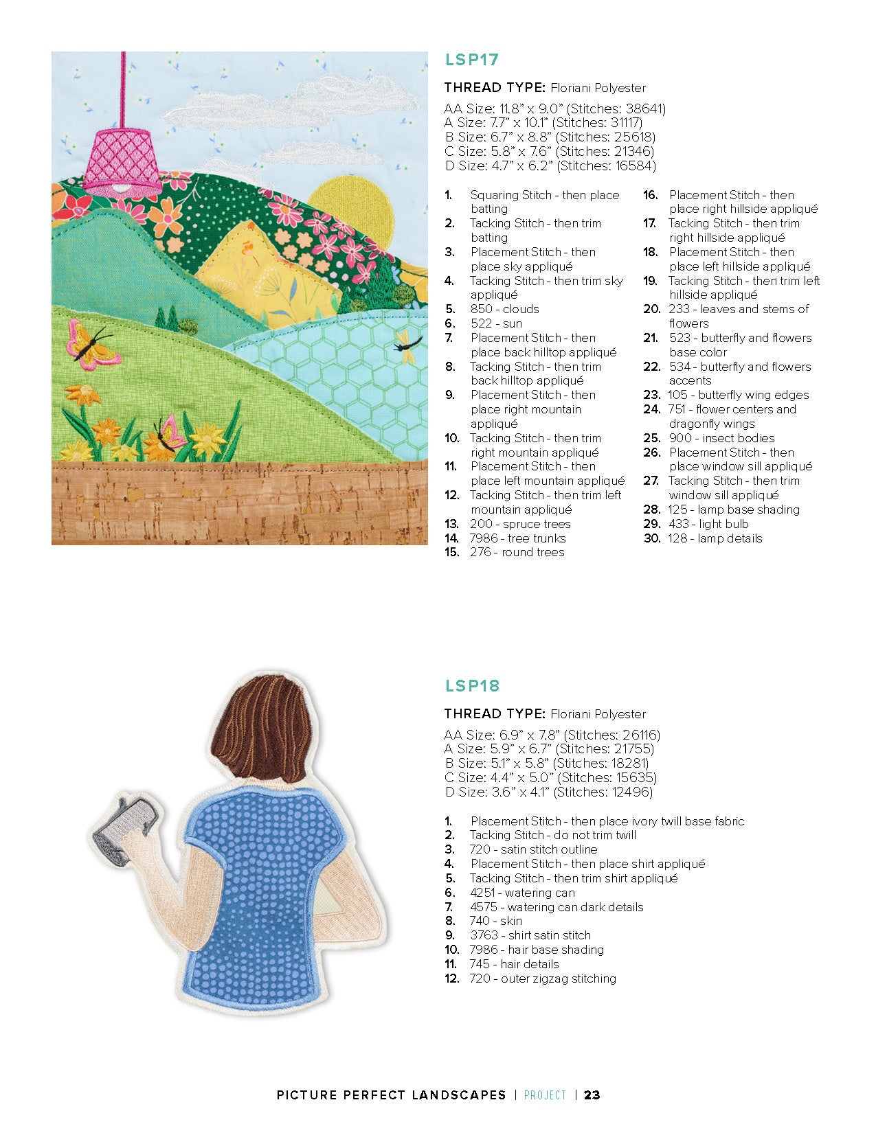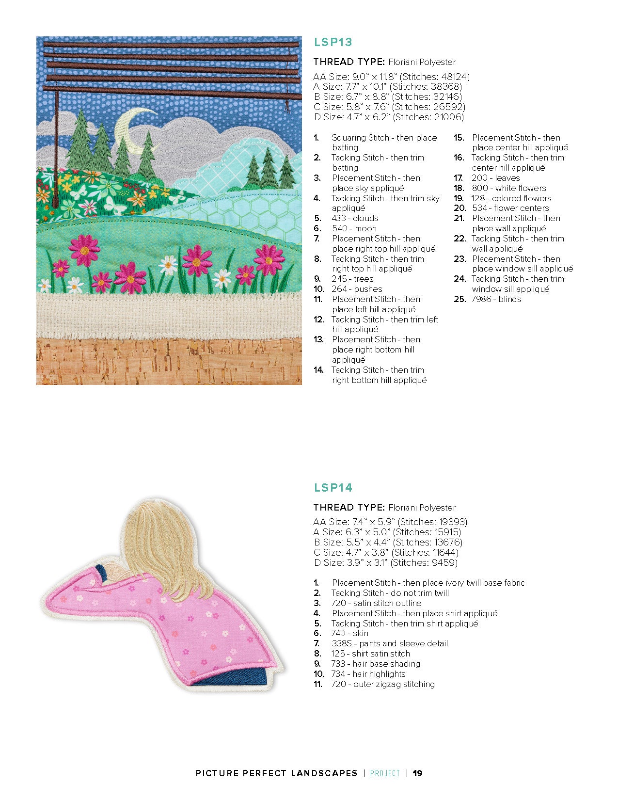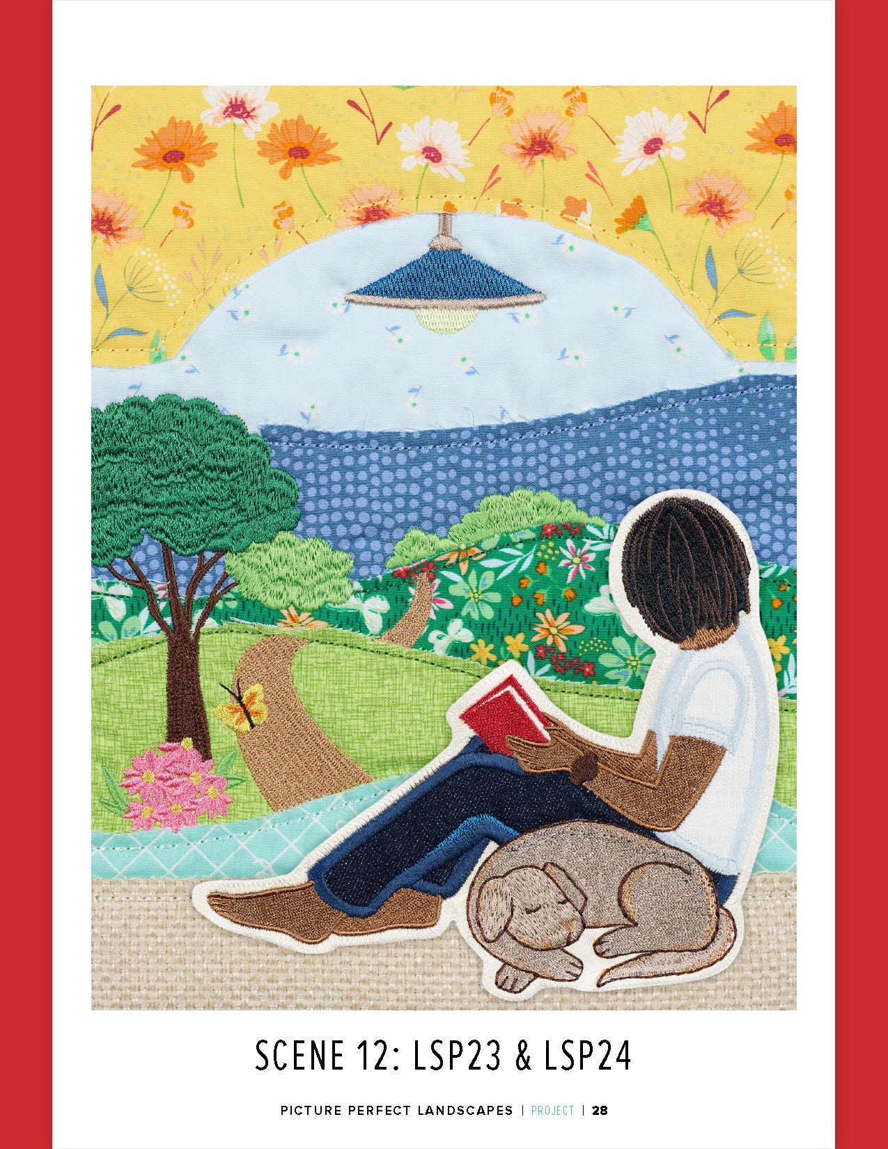 Rolling hills, fresh flowers, and stunning sight to behold! These Picture Perfect Landscapes combine all the right elements to make each scrappy scene look like a work of art! Each of the 12 character designs coordinate with a picturesque and lively landscape, constructed with raw edge appliqués! From fun fabric choices to the finishing stitches, each scene promises something new to look at. Grab your hoop, threads, and fabrics and get ready to create some truly “picture perfect” moments!