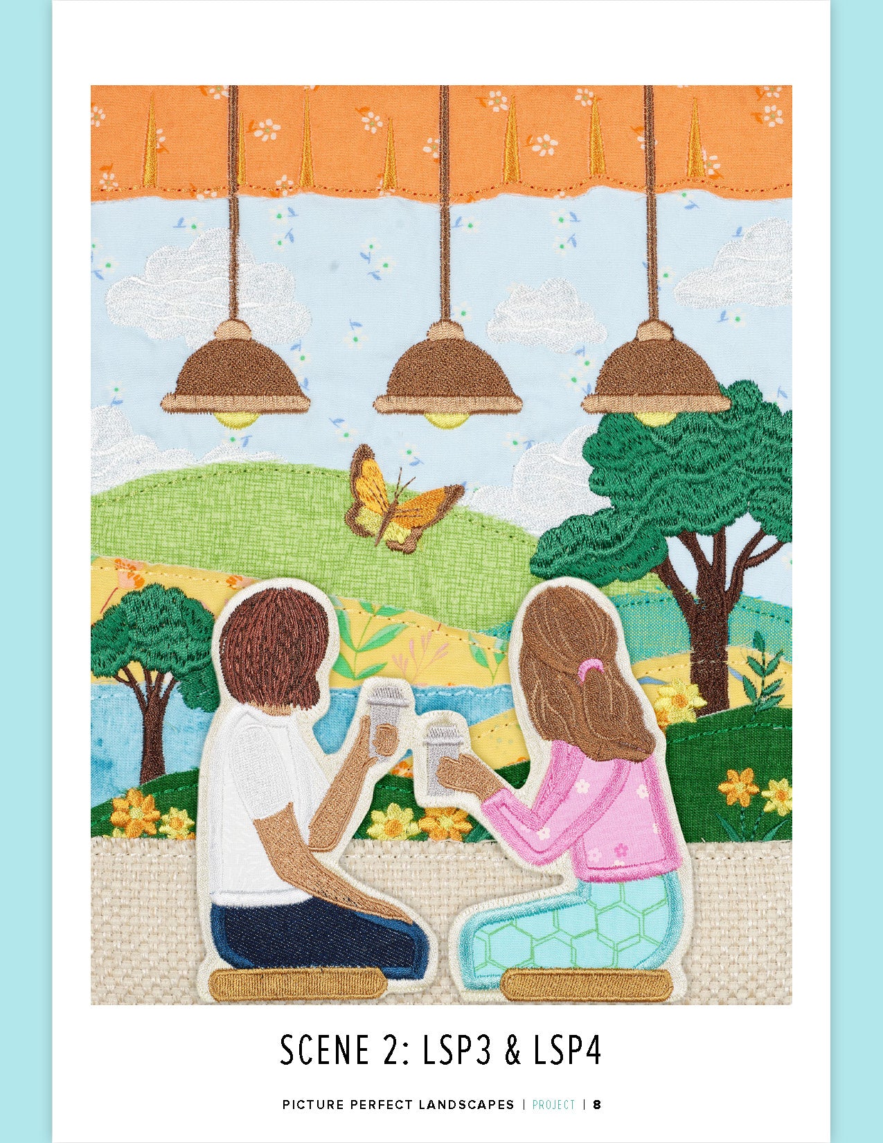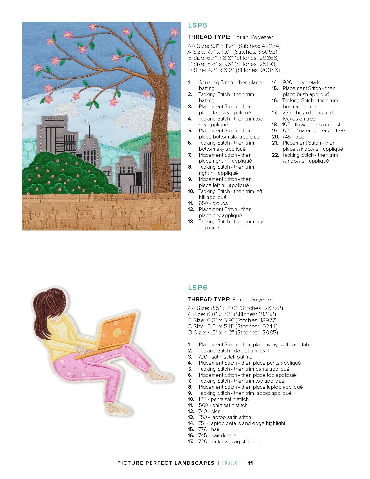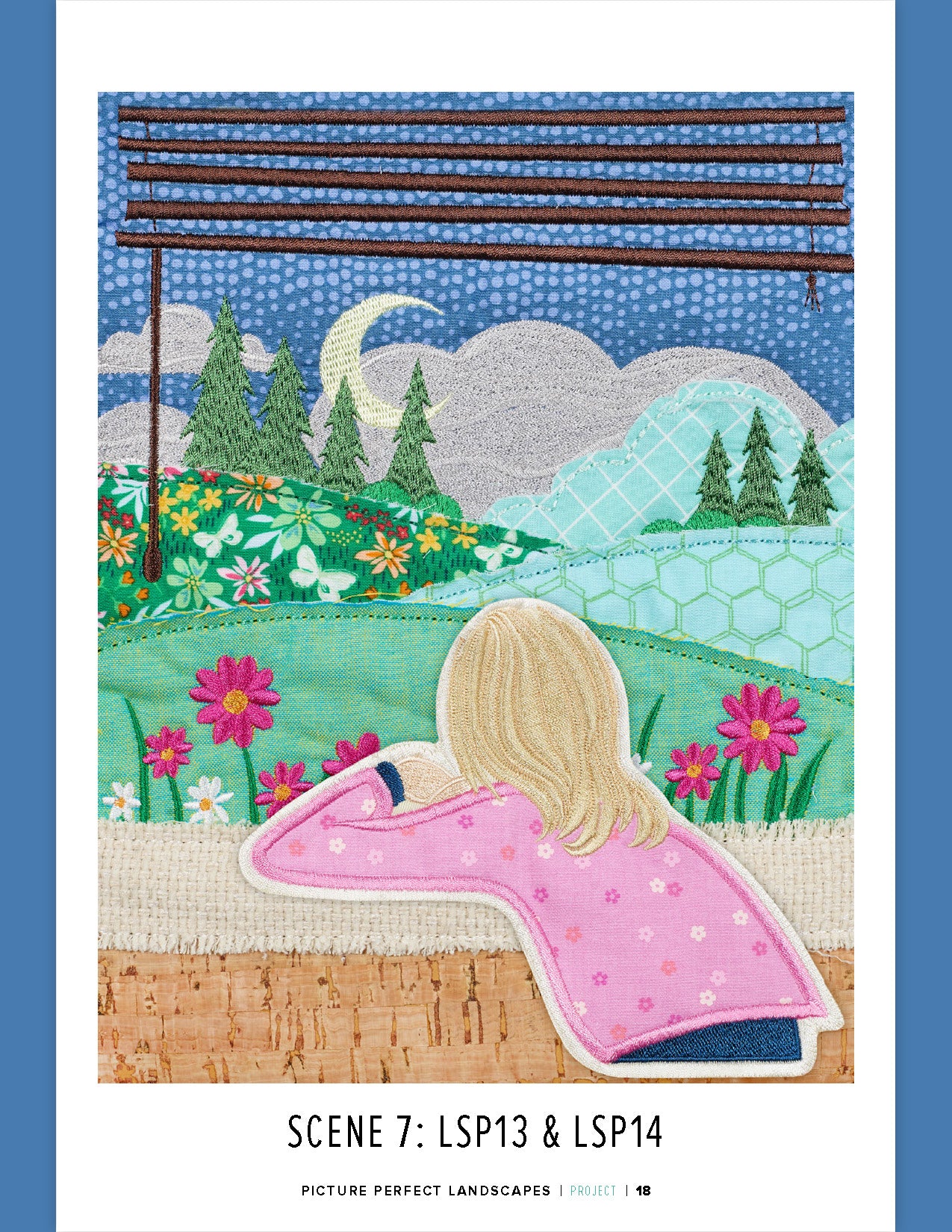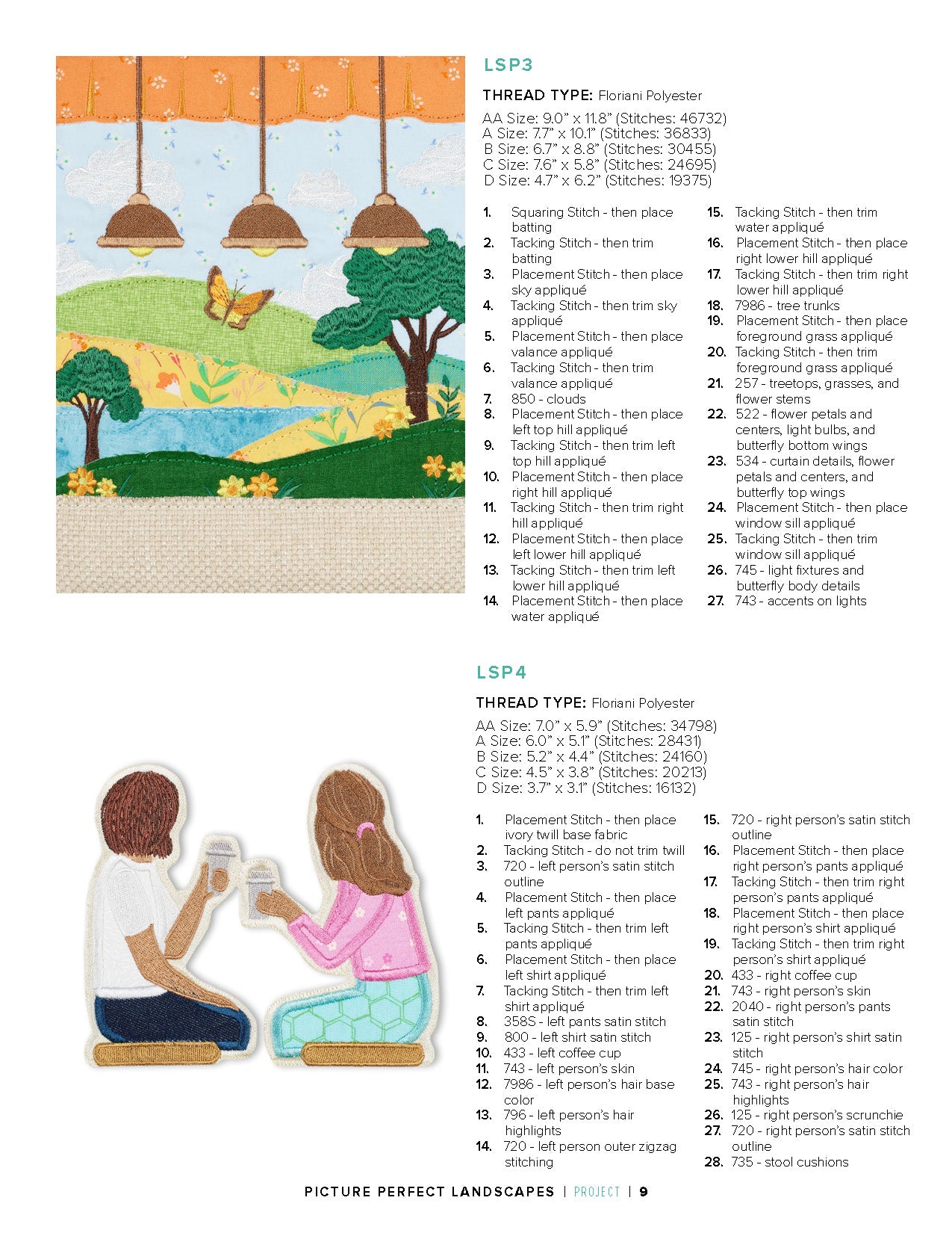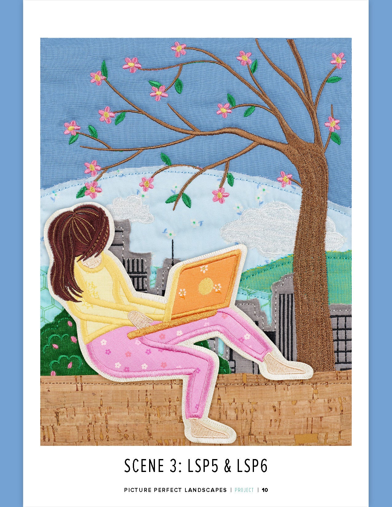 Rolling hills, fresh flowers, and stunning sight to behold! These Picture Perfect Landscapes combine all the right elements to make each scrappy scene look like a work of art! Each of the 12 character designs coordinate with a picturesque and lively landscape, constructed with raw edge appliqués! From fun fabric choices to the finishing stitches, each scene promises something new to look at. Grab your hoop, threads, and fabrics and get ready to create some truly “picture perfect” moments!