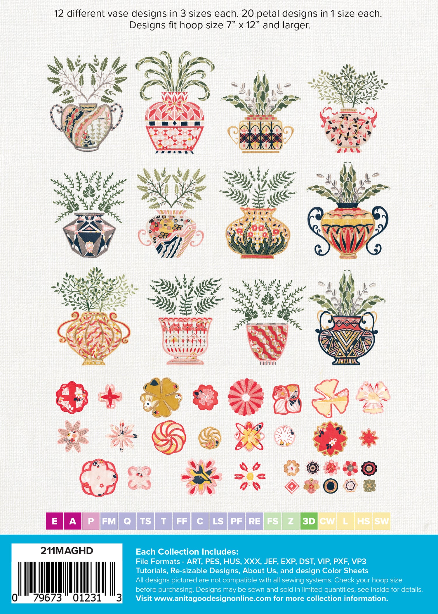 But that's not all! We've also included 12 exquisite vase designs, each one meticulously embroidered with elegant details. These vases, combined with overflowing foliage, create the perfect foundation for your lush bouquet. Whether you prefer a classic vase or a more contemporary design, you'll find the perfect match among the diverse options available in this collection.