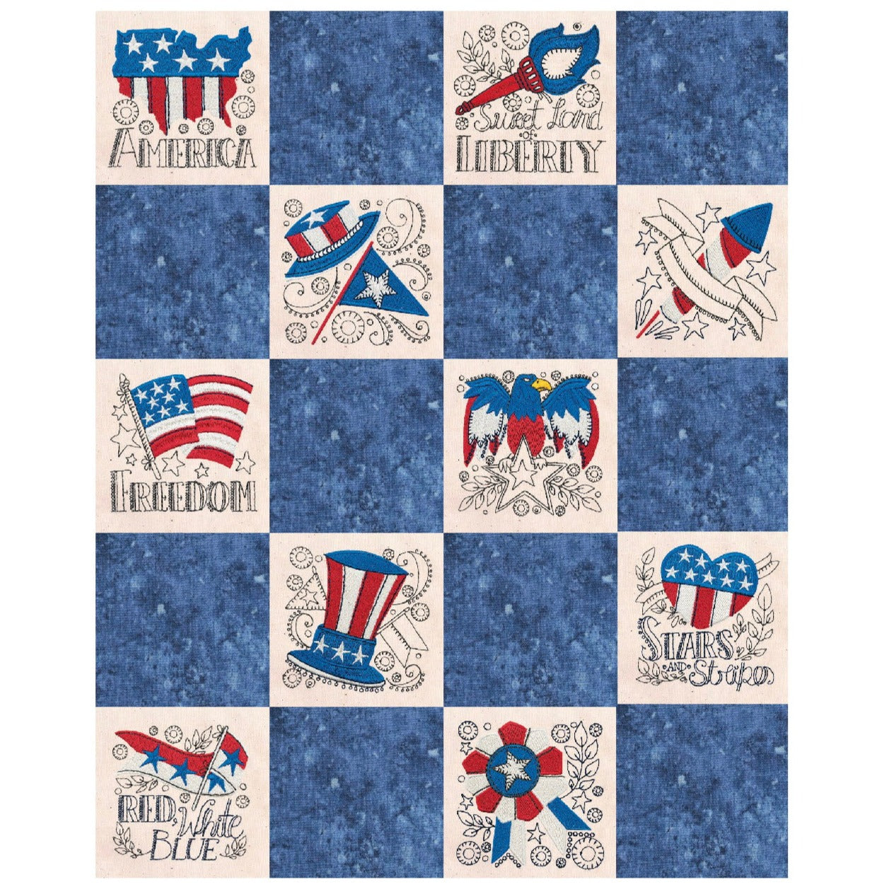 These beautiful 4x4 designs are perfect for any embroiderer armed with a 4x4 hoop! The small size allows those limited by hoop size to stitch without worry! Included in this tutorial is how to merge theses designs onto a blank quilt block (also included!) so that you can create a perfectly patriotic quilt!