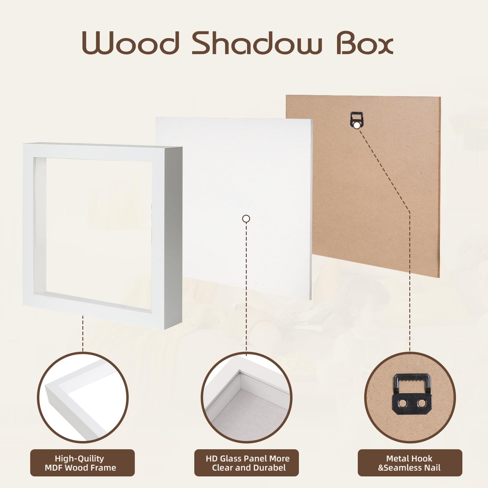 - Premium Materials - The square wood shadow box frame with a polished shatterproof glass front and linen backboard preserve can preserve cherished moments as long as possible