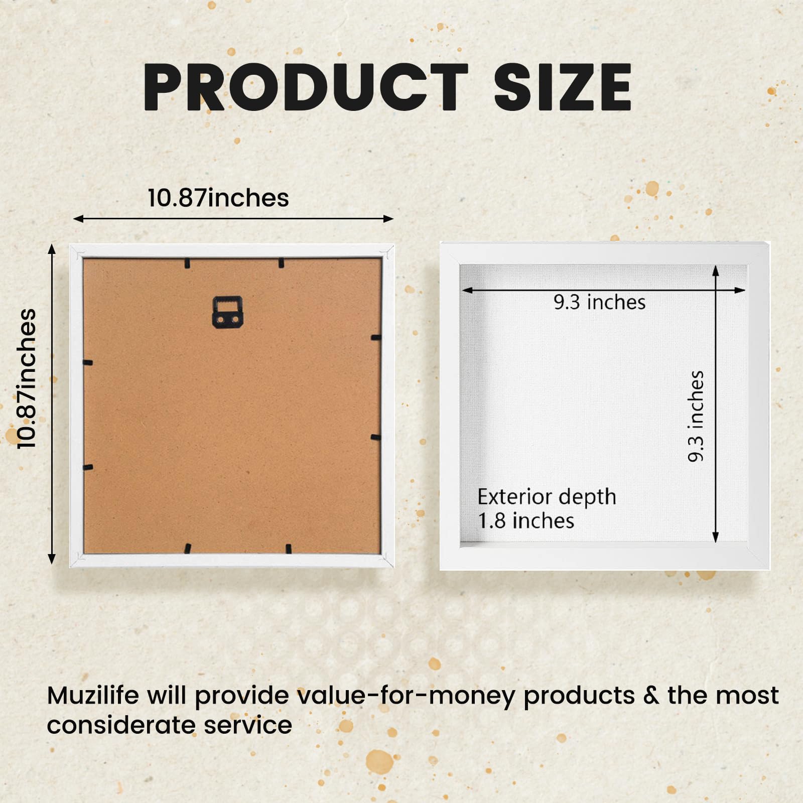 - SIZE - Shadow box size 10.87"x10.87" to display a maximum of 10"x10", Exterior depth 1.8“, inner depth 1", Enough size can place medals, pins, ribbons, wedding invitations, vacation memorabilia, pictures, awards, certificates, engagement photos, Baby Sports Memorabilia, etc