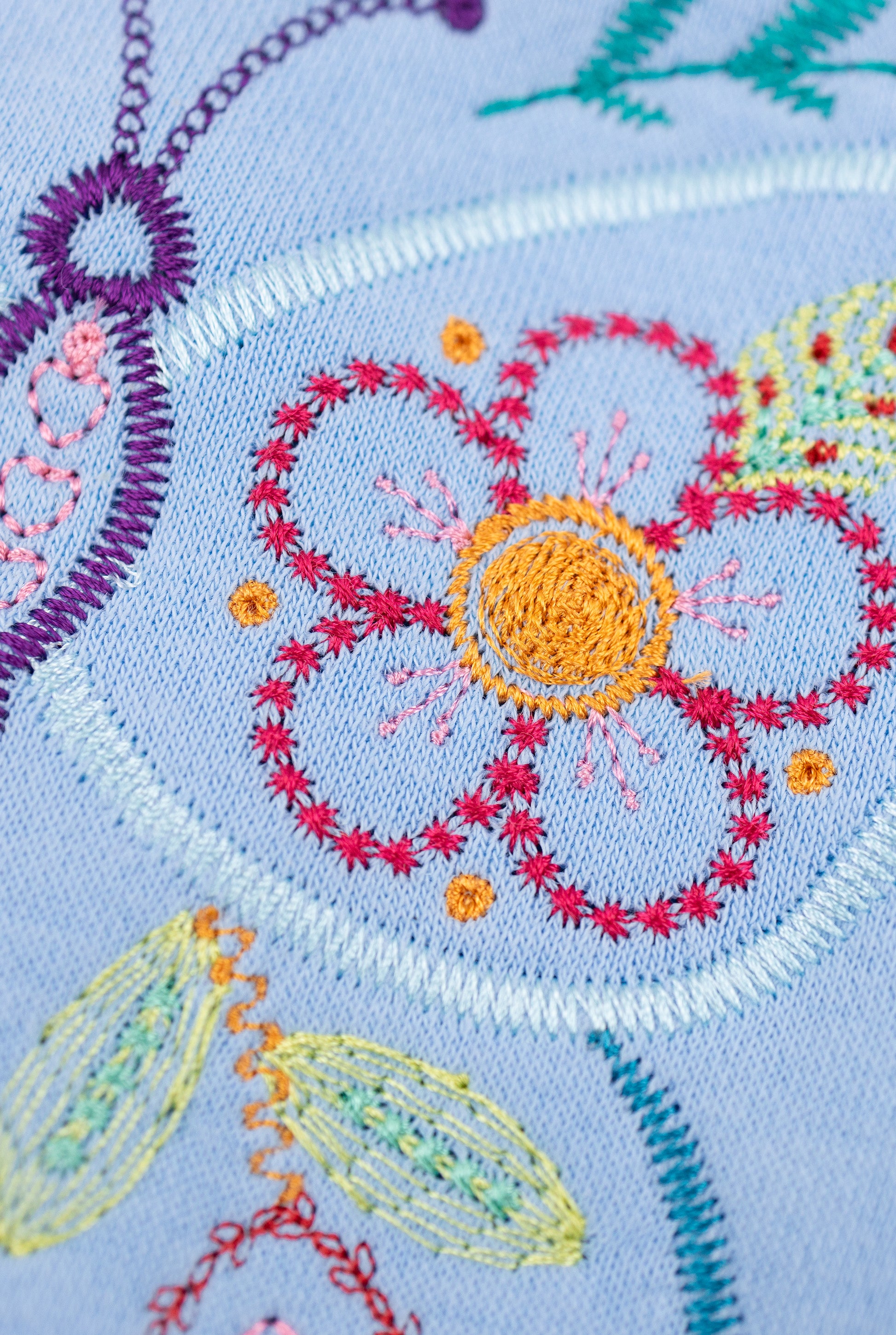 Designed to showcase the beauty of hand stitching techniques, this collection of six charming motifs have digitized traditional embroidery stitches such as bean, chain, woven wheel, French knots, and many more. Now, you can have the beauty and intricacies of vintage, hand stitched embroidery with the ease of modern automation! These incredibly versatile designs can be used in so many ways—from clothing to decor, and so much more, the visually stunning stitching can work on so many materials and projects!