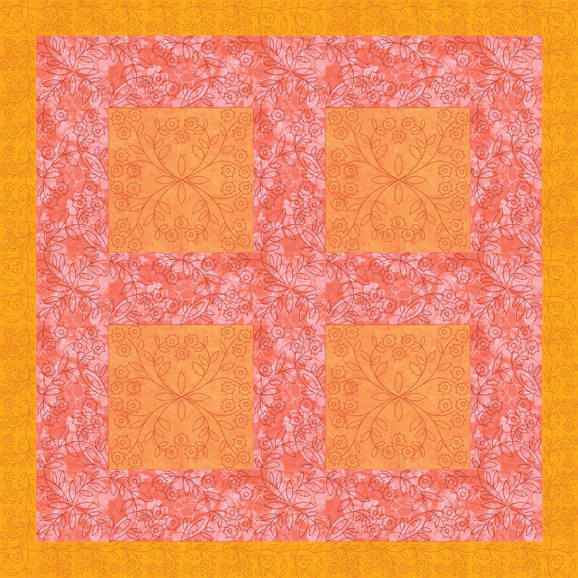 With so many beautiful patterns to choose from, you have the perfect reason to patchwork! This quilt layout requires no sashing or fancy border arrangements. If you’ve never joined blocks for a patchwork style quilt top, simply remember to join the blocks together in either columns or rows, combining smaller blocks to make larger sizes that are easier to join. The best part about using a fat quarter for color planning is that you can arrange the order any way you like!