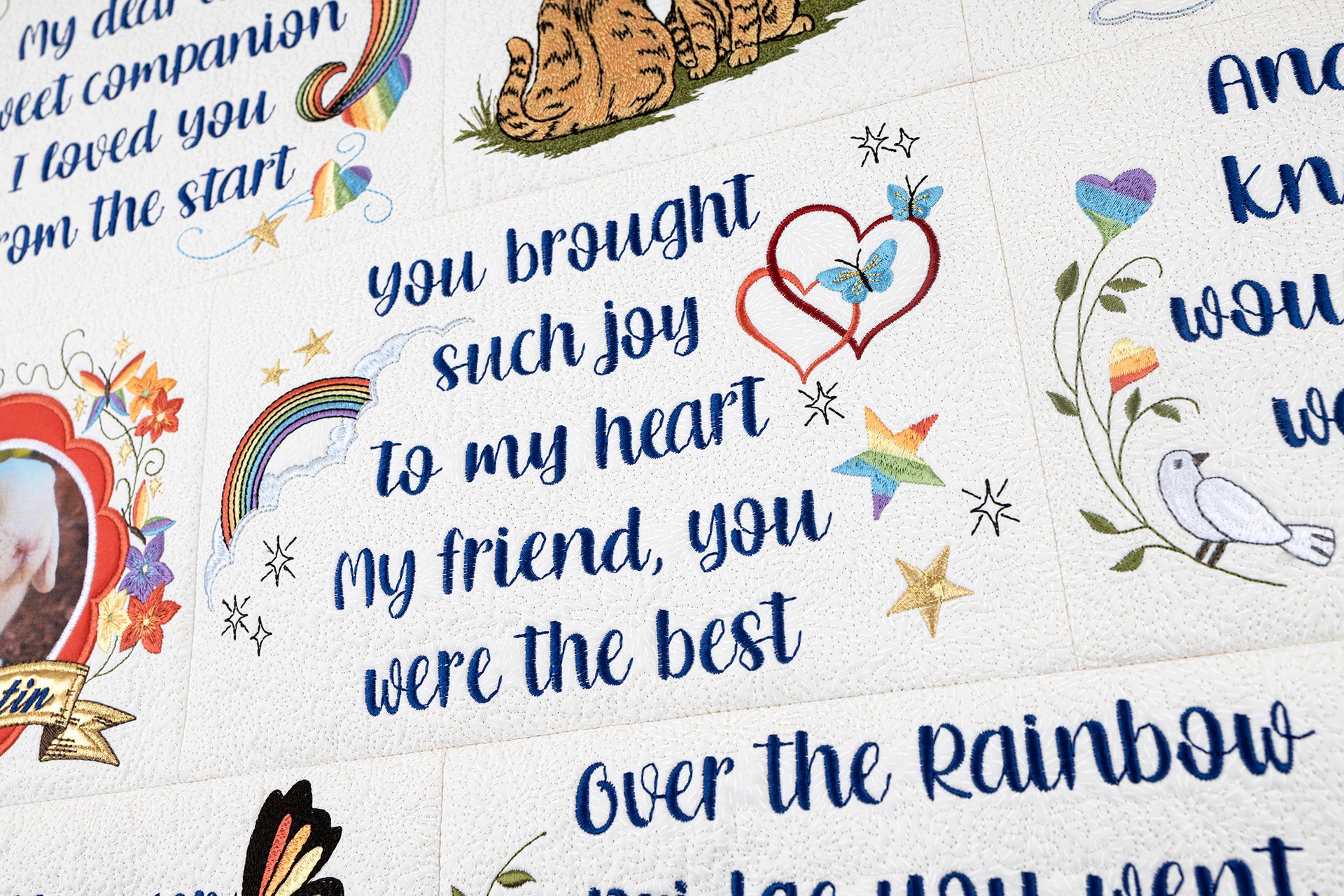 Embroidered Quilt Blocks featuring Original Rainbow Bridge Poem
