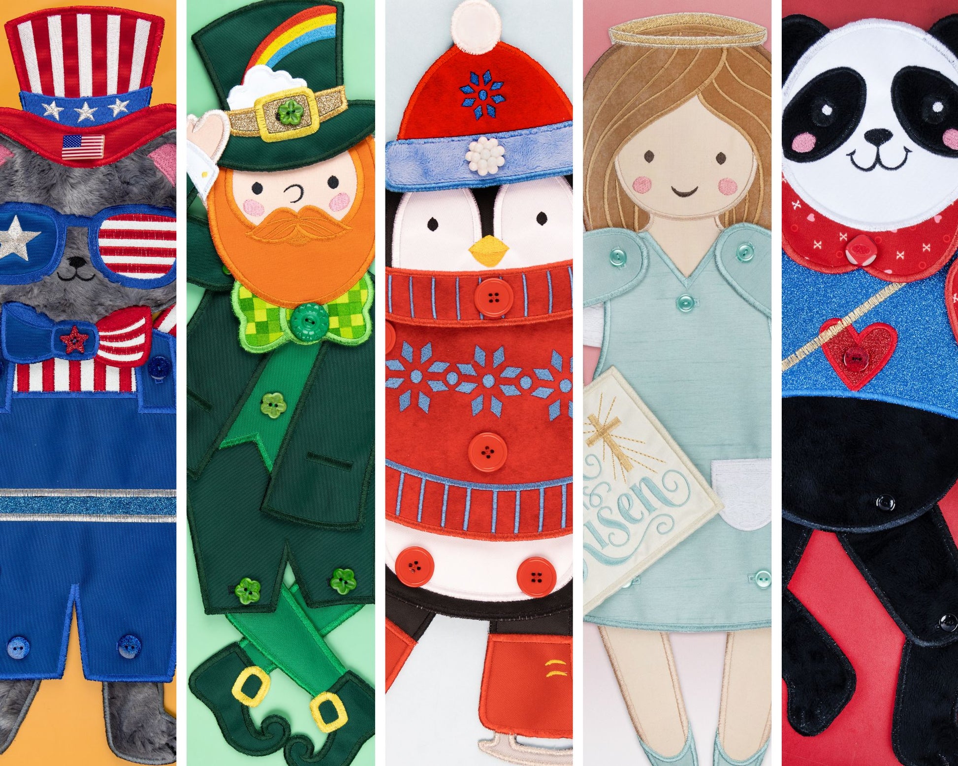 These fun danglers come with separate limbs and parts which are sewn together at the very end. Having moveable joints means they can strike many fun & dynamic poses that can be tacked into place with a few stitches! An angel singing praises, a leprechaun dancing a jig – let your imagination run wild!