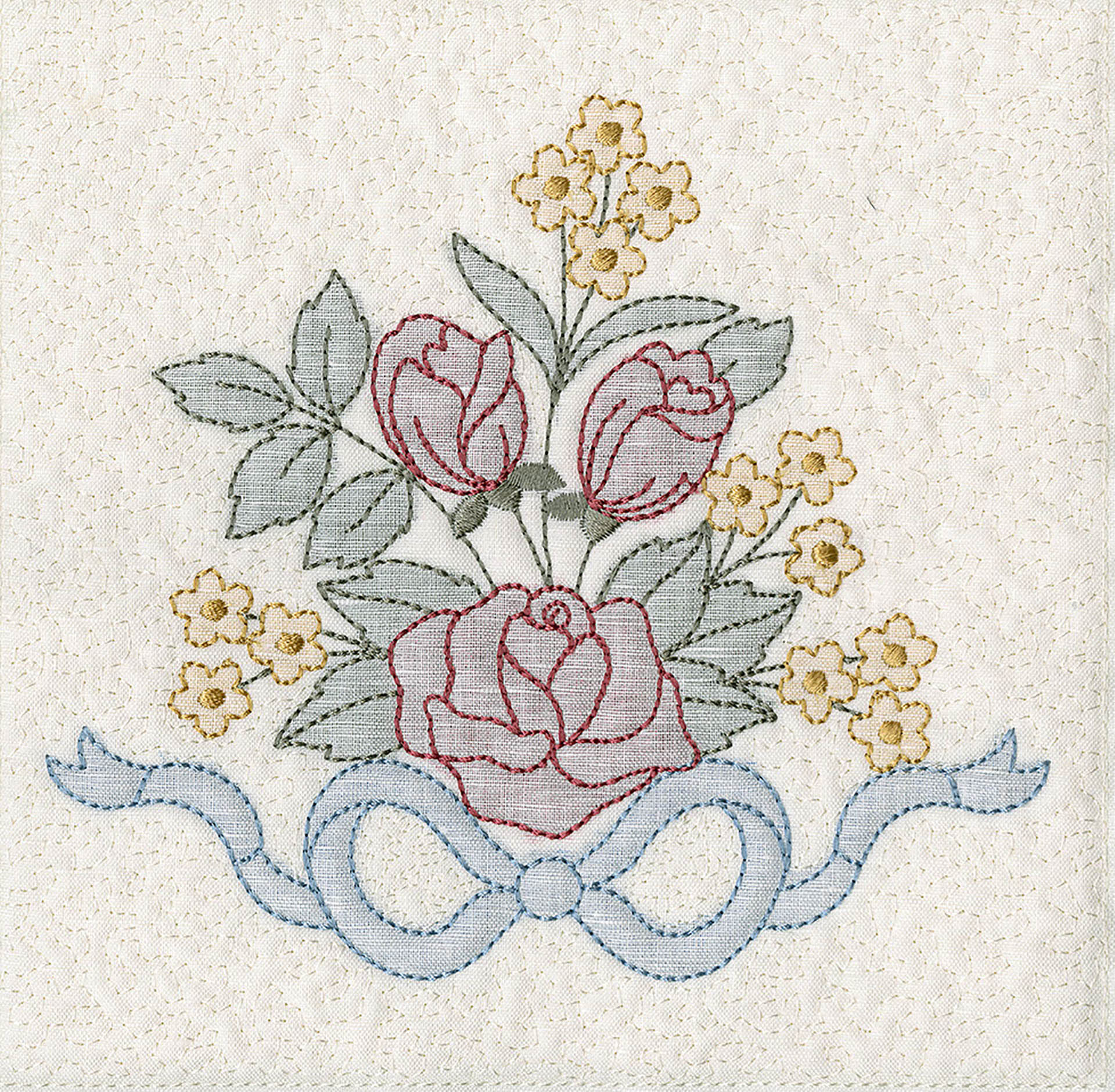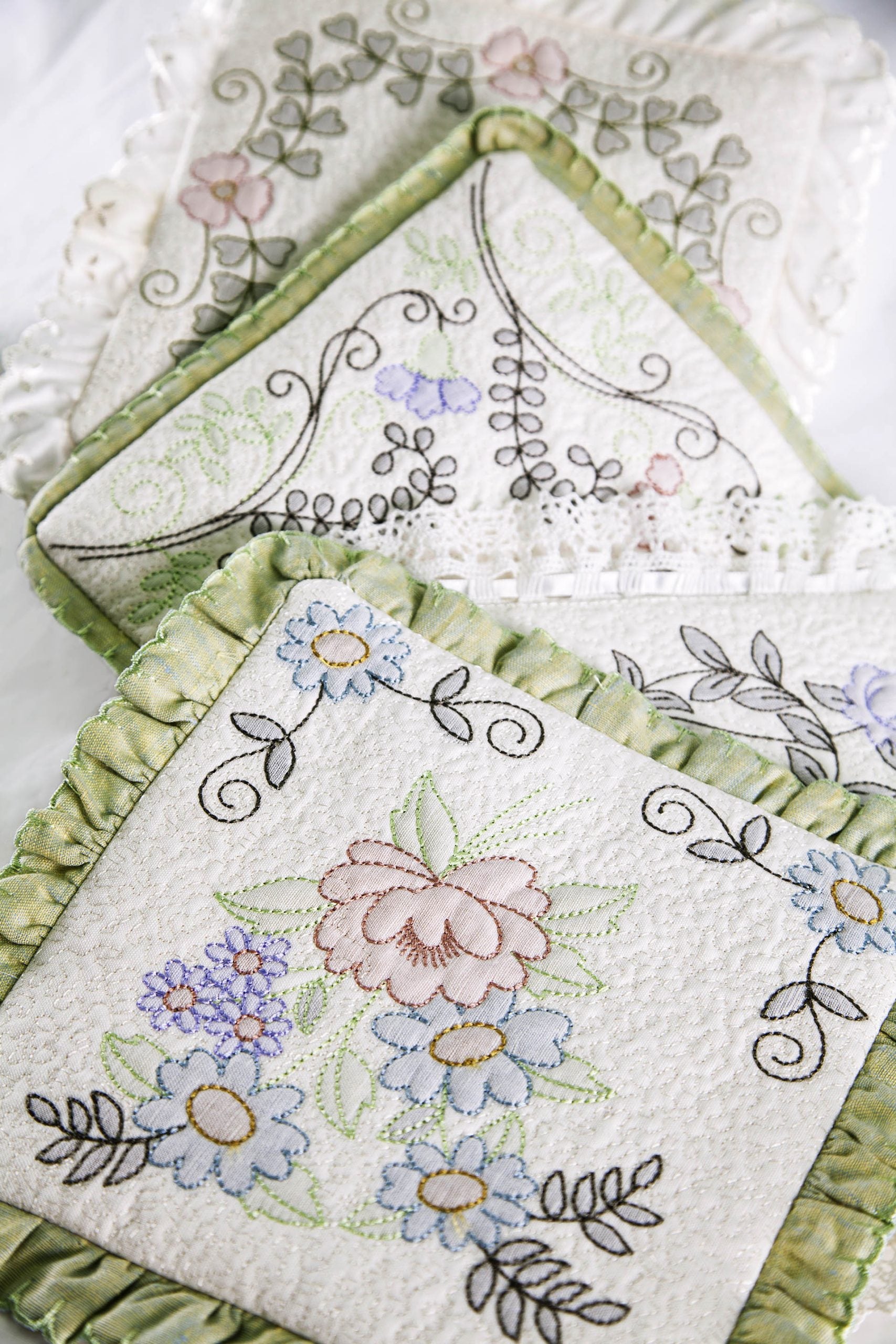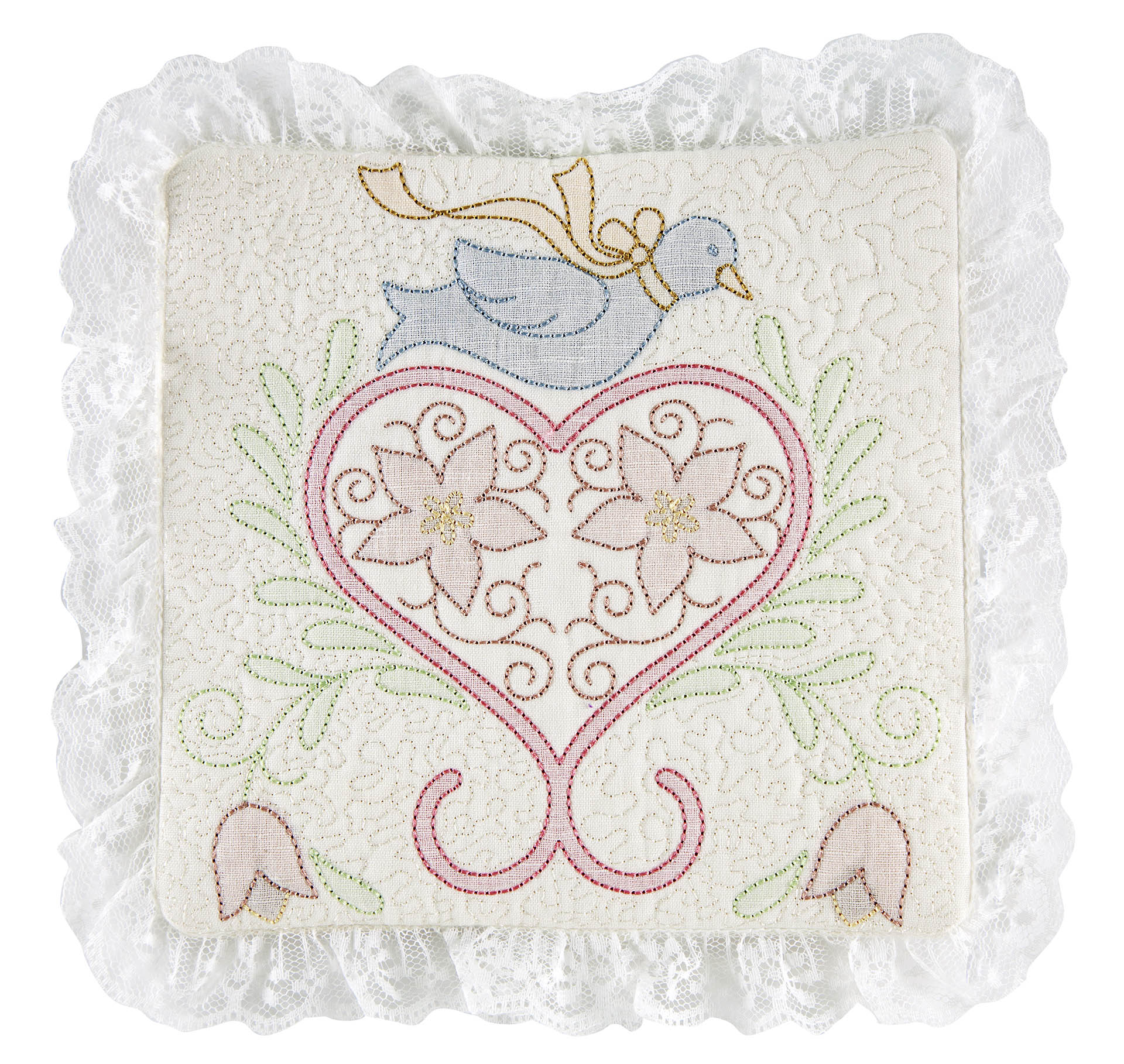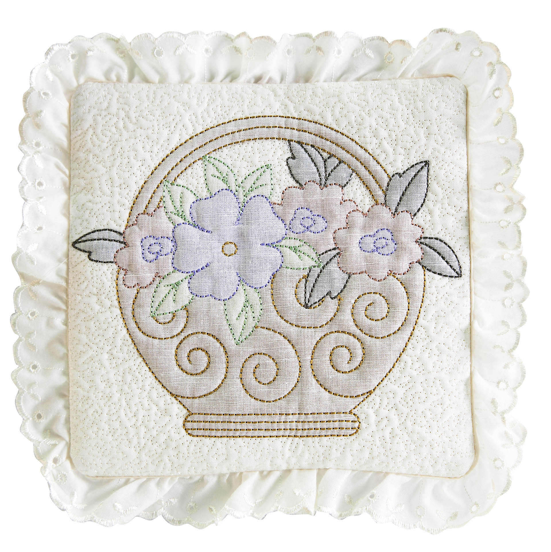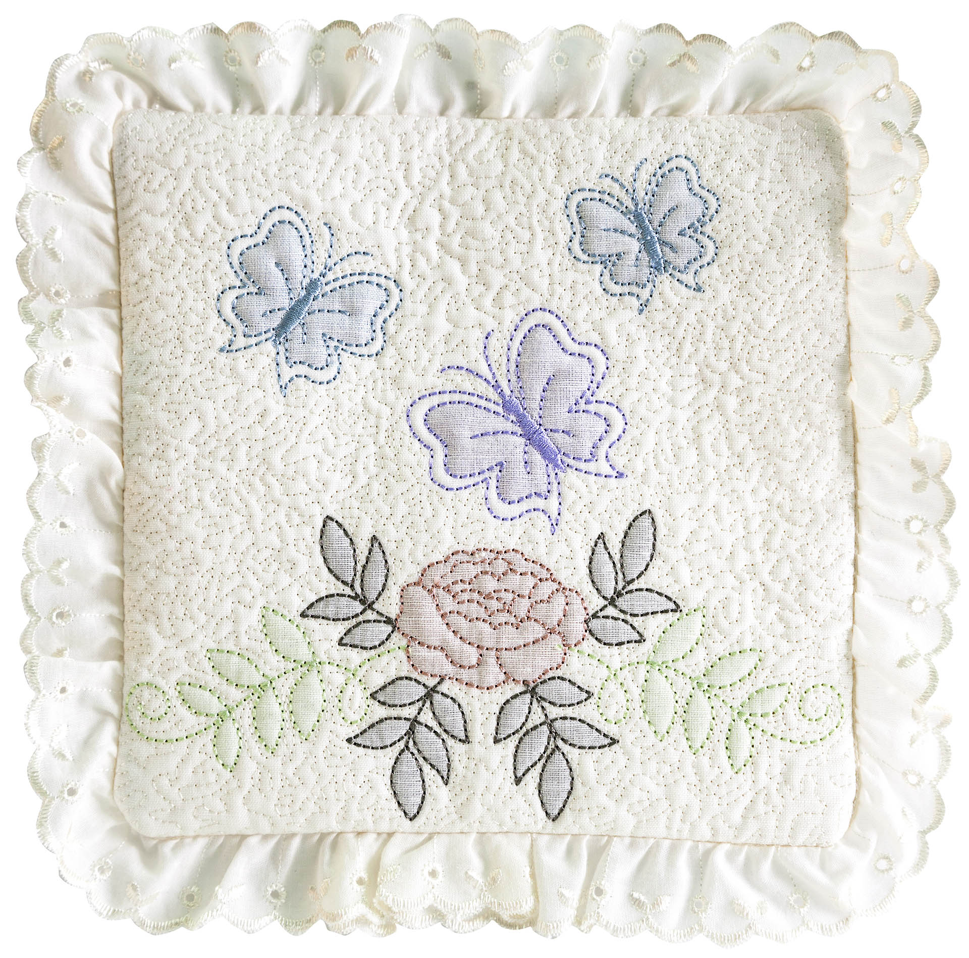 The technique we use in the shadow work collection is amazing. When we were developing our shadow work technique everyone would pass by as it was stitching and wonder how it was done. We use a simple technique where we stitch the design on our base fabric and then add another piece of fabric on top, stipple the background and then stitch the design element outlines. The end result is a shaded coloring to the design that almost looks like the fabric was painted. We have never released anything like this before and you will love these designs! You can obviously use these designs in your quilts and pillows, but for this project we wanted to create something different so we created a beautiful sachet out of one of the blocks. The sachet would make a perfect gift. The best part about this collection is that you can combine it with other Anita Goodesign collections! This collection is part of the “Mix and Match” quilt line. All of the design collections that are in the “Mix and Match” line come with 5”, 6”, 7” and 8” blocks and are fully interchangeable. There are redwork collections, folded fabric collections, special editions, jelly roll collections plus many others.