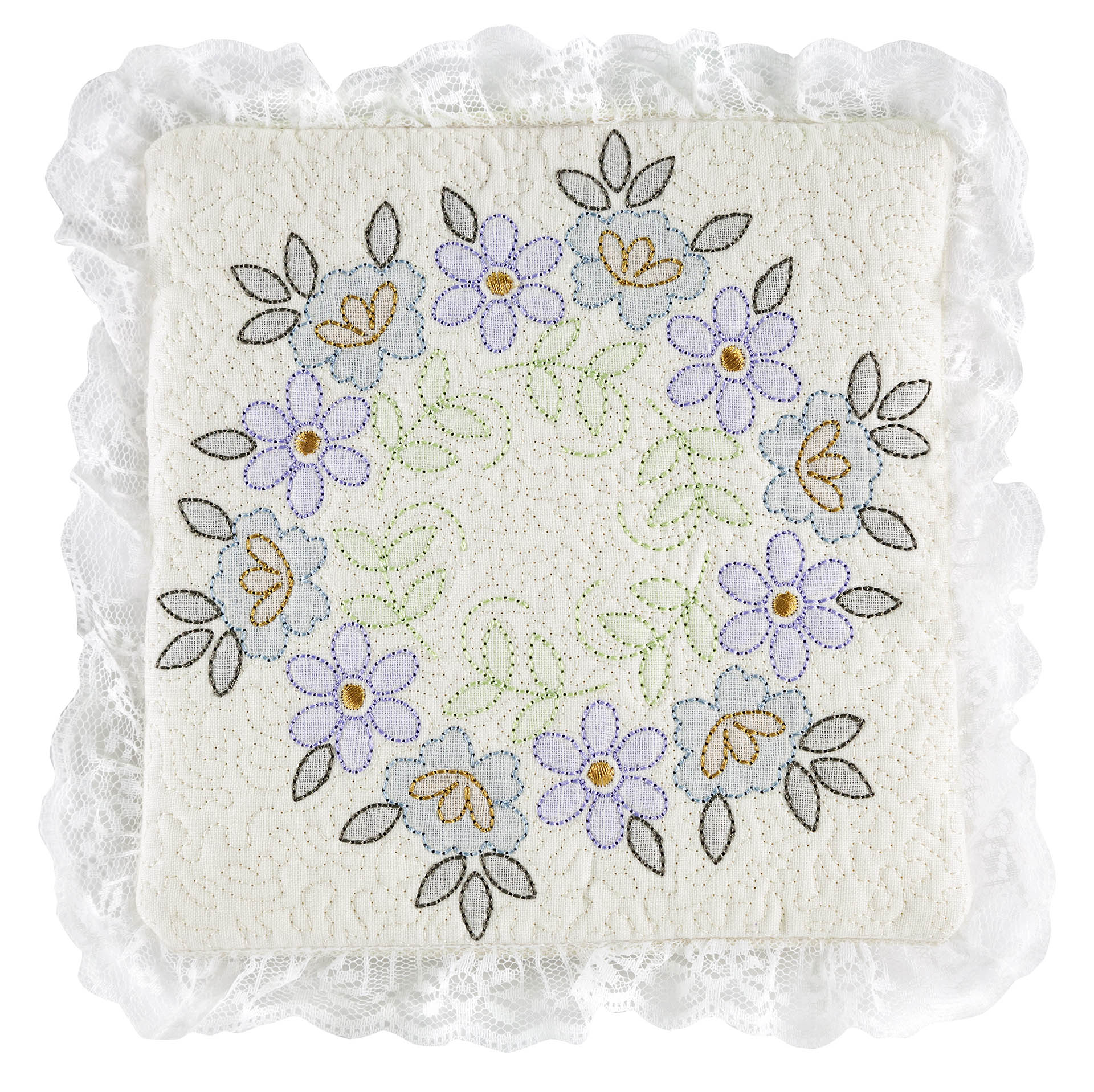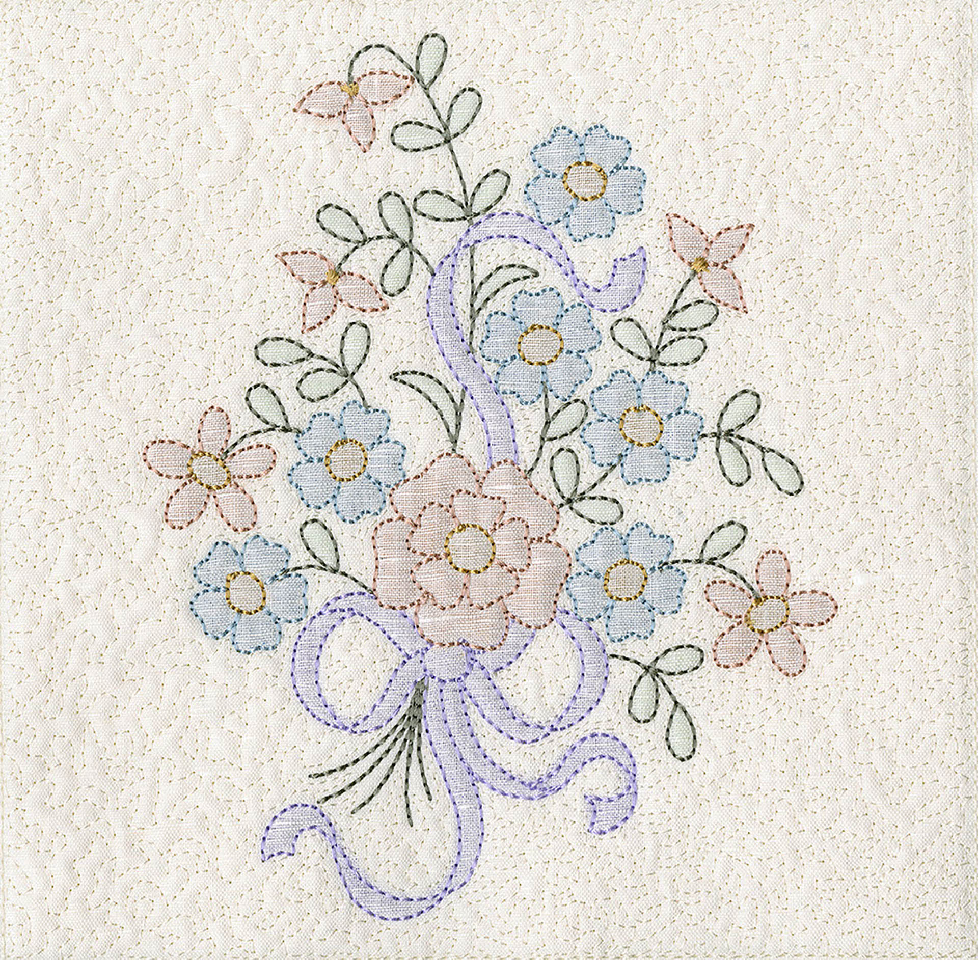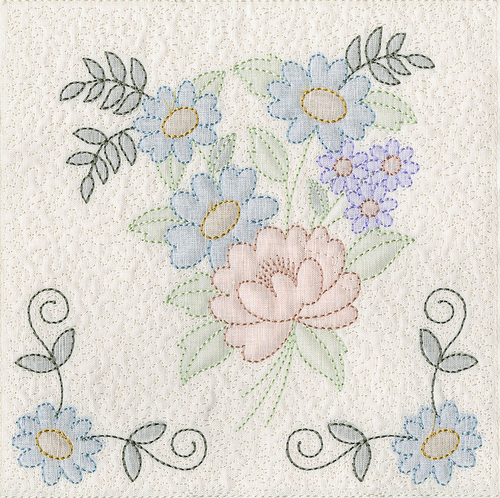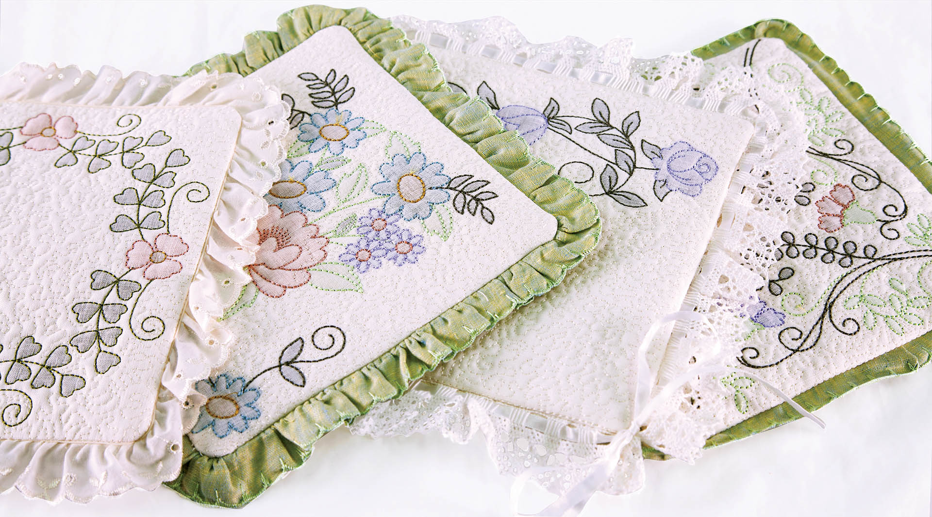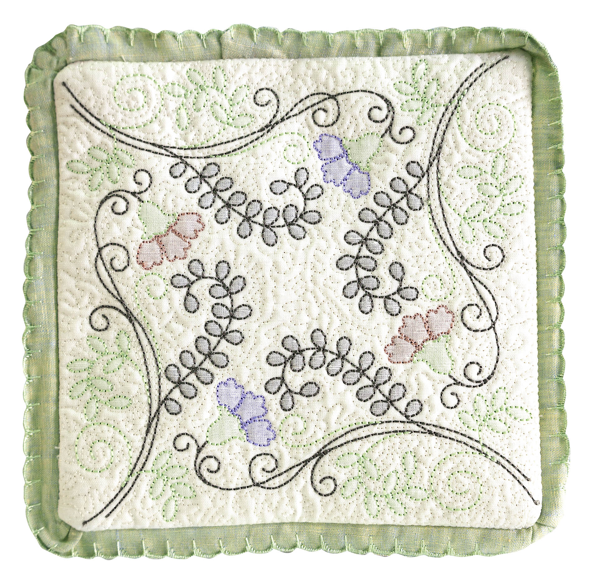 The technique we use in the shadow work collection is amazing. When we were developing our shadow work technique everyone would pass by as it was stitching and wonder how it was done. We use a simple technique where we stitch the design on our base fabric and then add another piece of fabric on top, stipple the background and then stitch the design element outlines. The end result is a shaded coloring to the design that almost looks like the fabric was painted. We have never released anything like this before and you will love these designs! You can obviously use these designs in your quilts and pillows, but for this project we wanted to create something different so we created a beautiful sachet out of one of the blocks. The sachet would make a perfect gift. The best part about this collection is that you can combine it with other Anita Goodesign collections! This collection is part of the “Mix and Match” quilt line. All of the design collections that are in the “Mix and Match” line come with 5”, 6”, 7” and 8” blocks and are fully interchangeable. There are redwork collections, folded fabric collections, special editions, jelly roll collections plus many others.