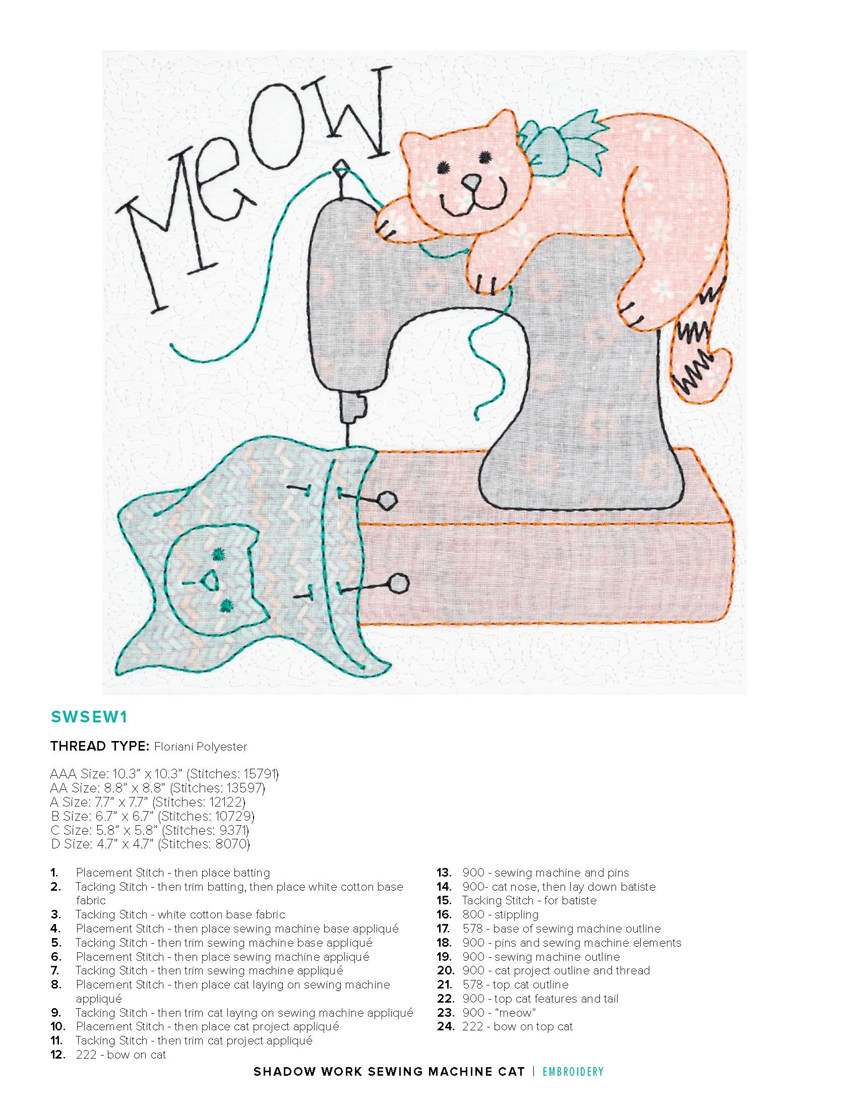 Sew with ease along side your furry friends as you stitch the shadow work embroidery design! This technique provides a pop of color underneath a sheer fabric, such as batiste, to emphasis your lovely embroidery design, all while providing a shadowy effect to the right side of the fabric!