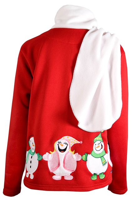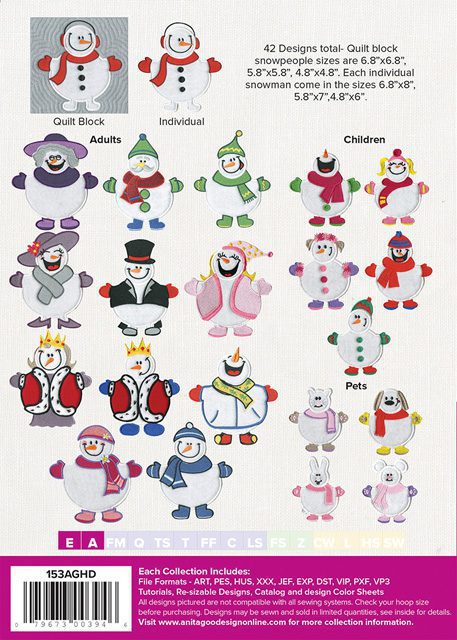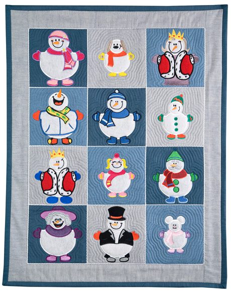 When we were designing the Snow People collection we wanted to create a collection that was versatile. We designed 21 different snow people, adults, children and pets and designed them so that they would all connect by holding hands. Each of the designs come in 3 sizes: 6.8” x 8”, 5.8” x 7” and 4.8” x 6”. These designs look great on clothing either by themselves or chained together. We created a cardigan where the designs completely wrap around the bottom. We then created quilt blocks using the Snow People. Each of them come with their own quilt block that includes echo stitching for a true quilted effect. The tutorial will demonstrate how to create the blocks using Warm and Natural Stabilizer in your hoop. This collection is filled with exciting possibilities! Enjoy.