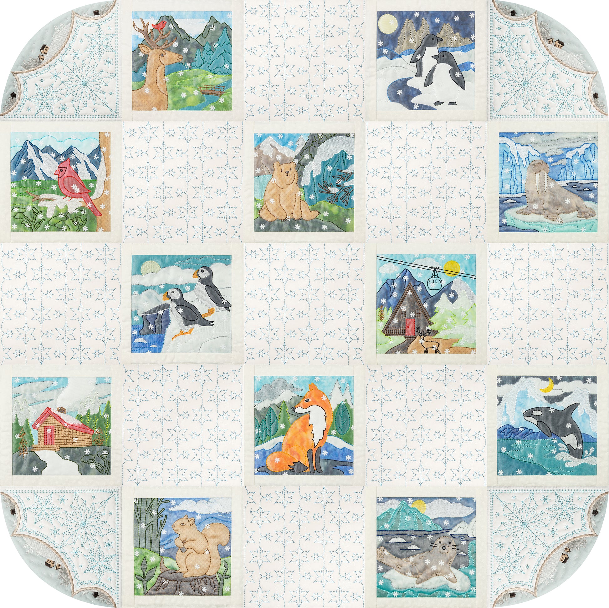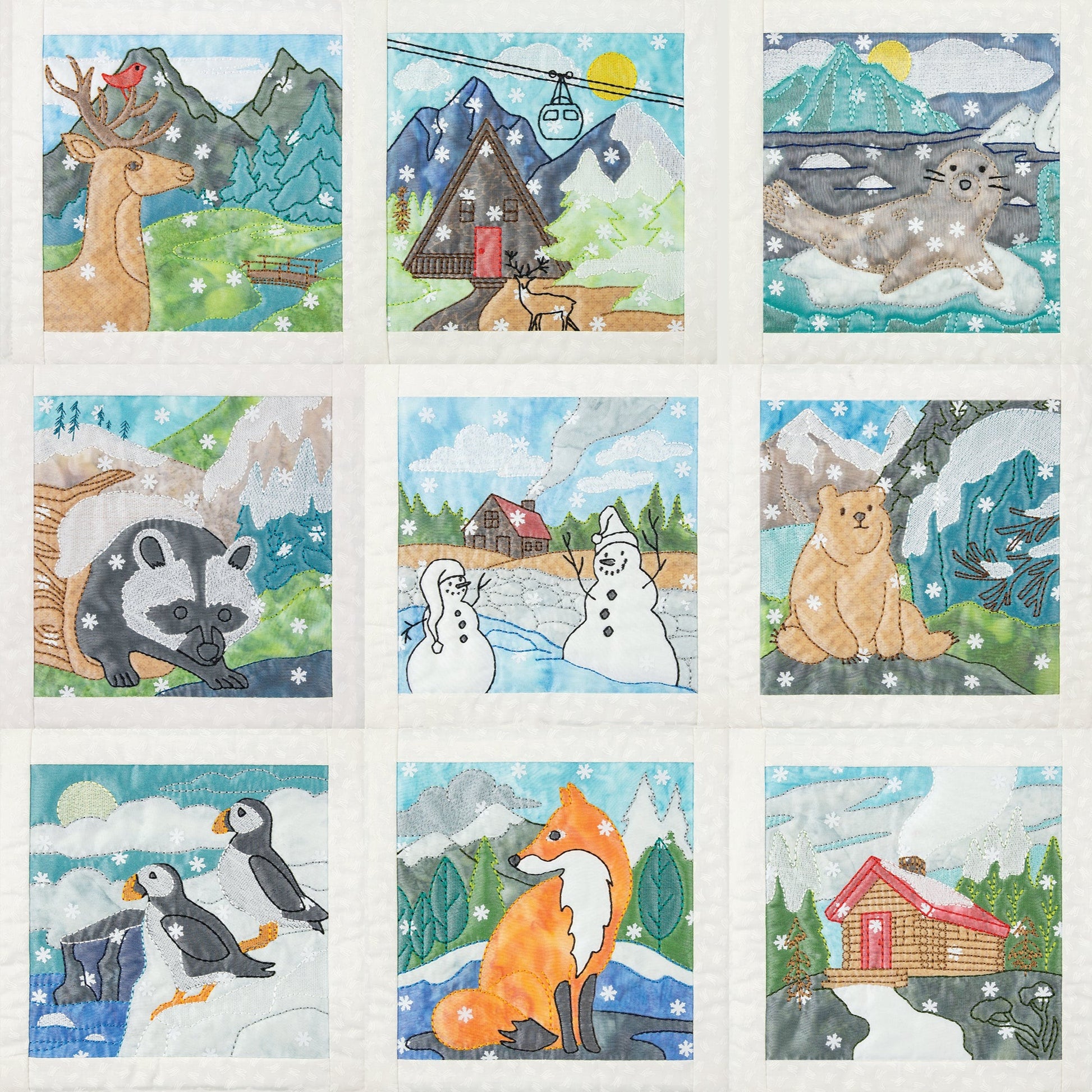 Once you have completed the appliqué and embroidery steps beneath the sheer organza, it's time to bring the snowflakes to life. Sprinkle them across the surface of each block, creating a wondrous display of snowflakes. You have the creative freedom to decide how many snowflakes to use, whether you prefer a gentle and dreamy flurry or a dazzling blizzard. The choice is yours!