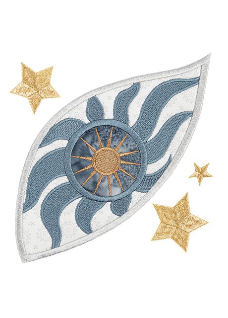 If you’ve always got your eye on the sky or mind in the clouds, this design is perfect to have in your design library. Constructed with just two standard appliqués, our Solar Eye design will surely keep a watchful eye over your projects!