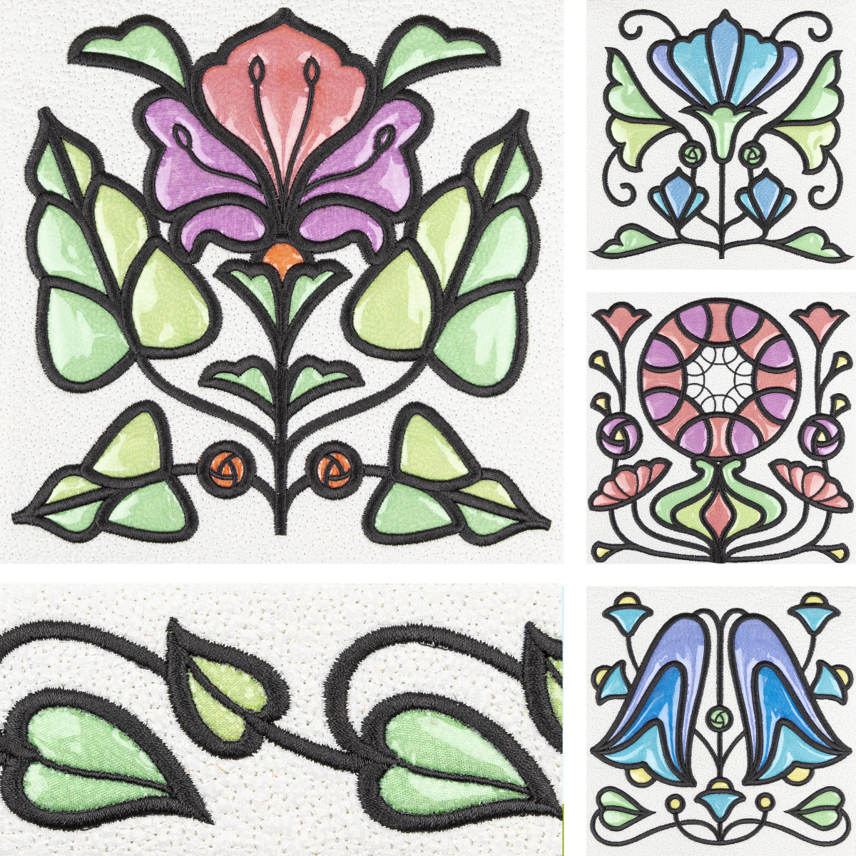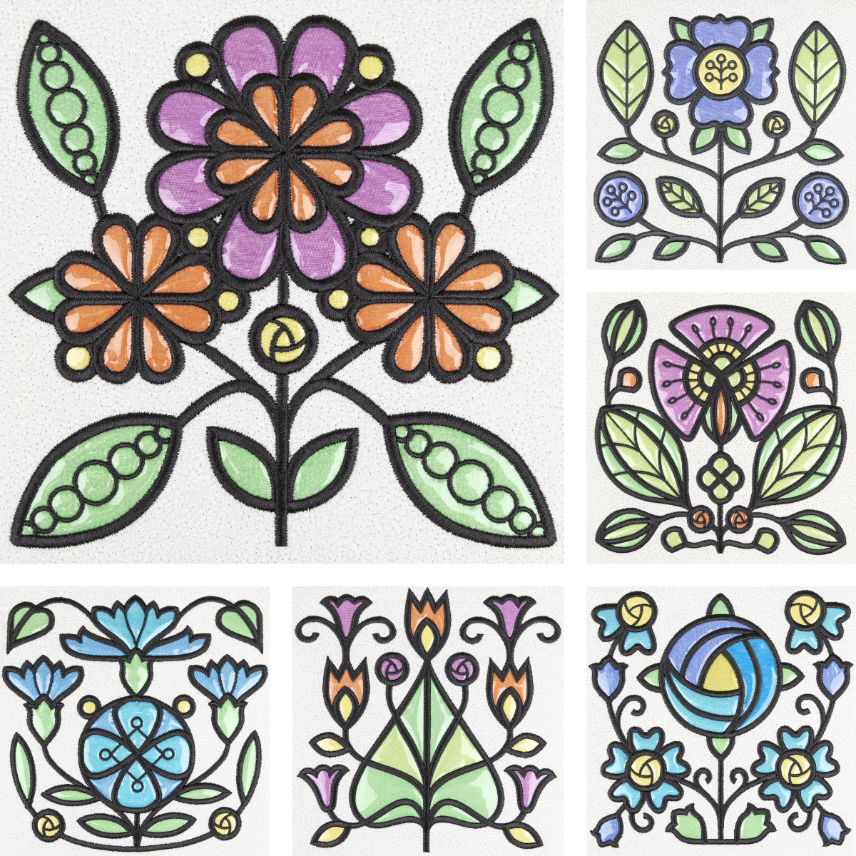 Stained glass has been an art form for thousands of years, some dating back as early as the 7th century. While mostly seen in churches and chapels, modern day artisans have adapted this gorgeous art form into smaller variations, like sun catchers, paintings, and even as quilts! You read that right! If you have ever marveled at the beauty of stained glass and the way light always shines just right to see all colors, you’ve come to the right place to create your own version—in quilted form! This collection features 12 beautiful quilt block designs inspired by Austrian artist and illustrator, Gustav Marisch. Marisch specialized in creating beautiful graphic arts in the late 1800s, much like the artistic style we are emulating here! Create a vibrant quilt to hang on your walls, or even a decorative throw pillow to add a pop of color to your home with these delicate designs. Designs: 12 quilt blocks