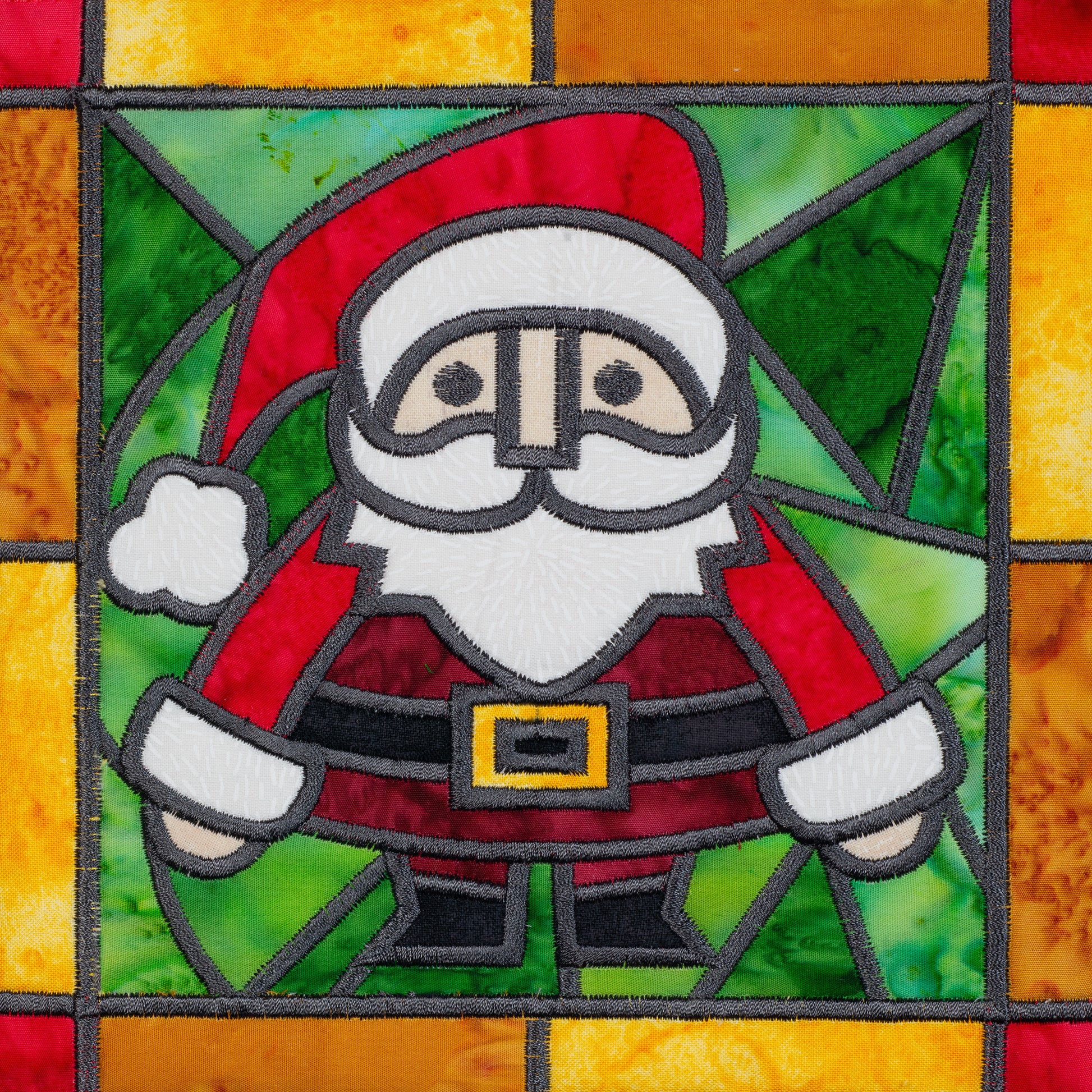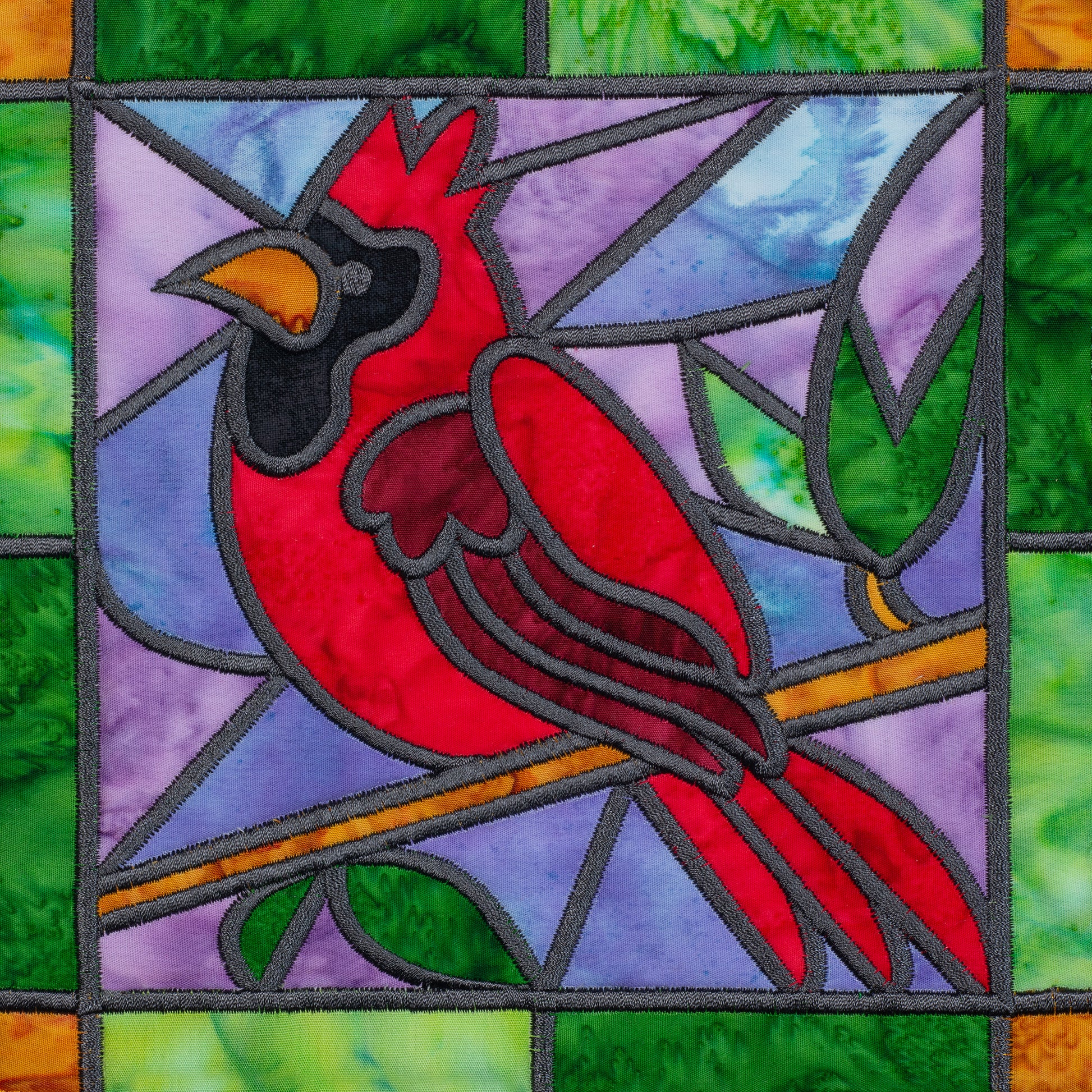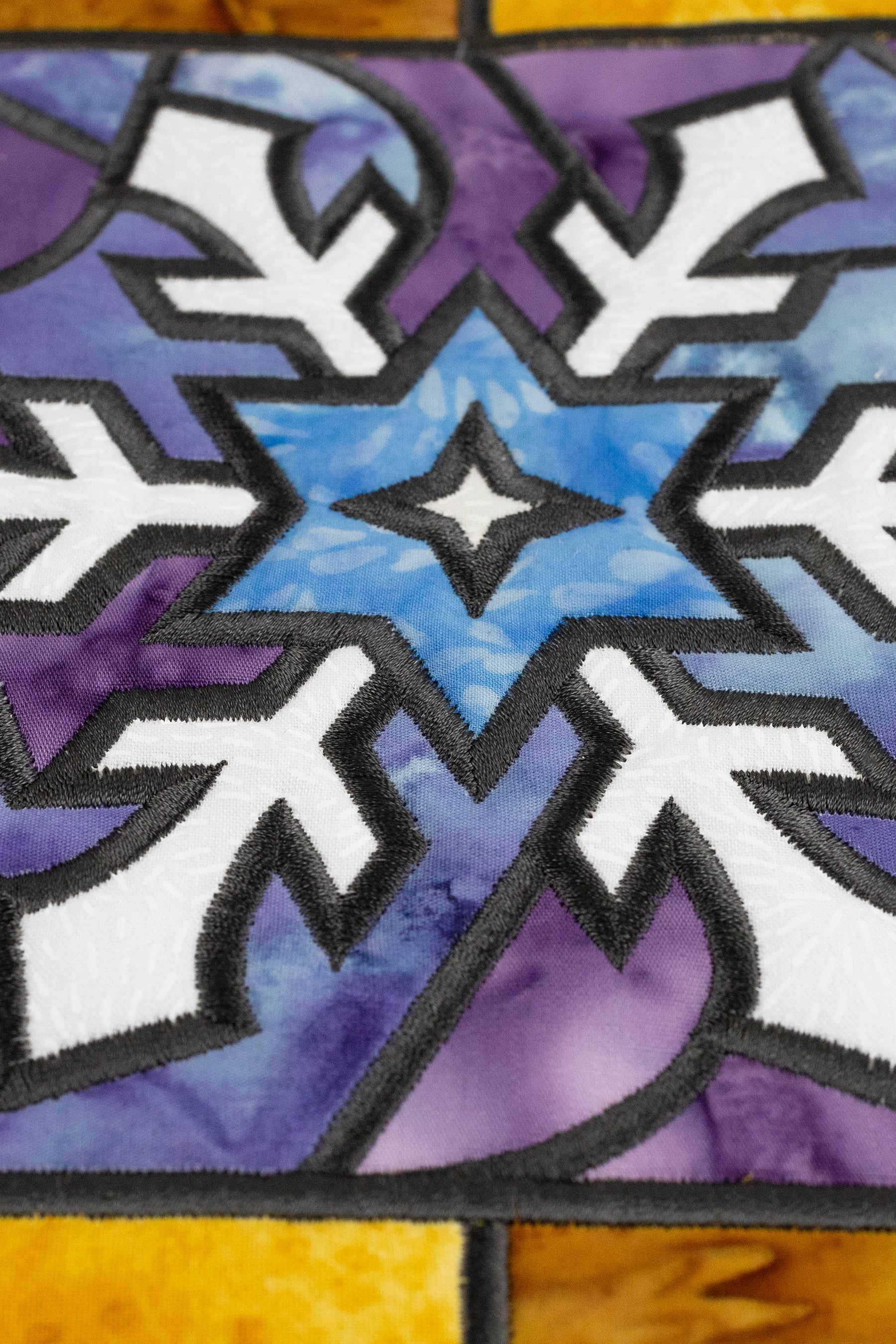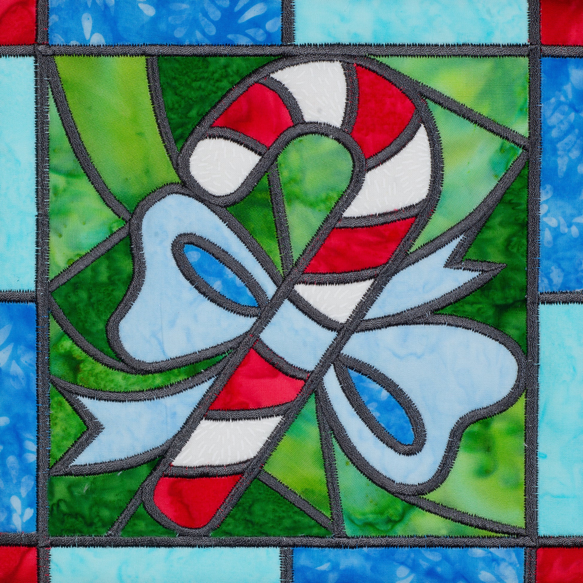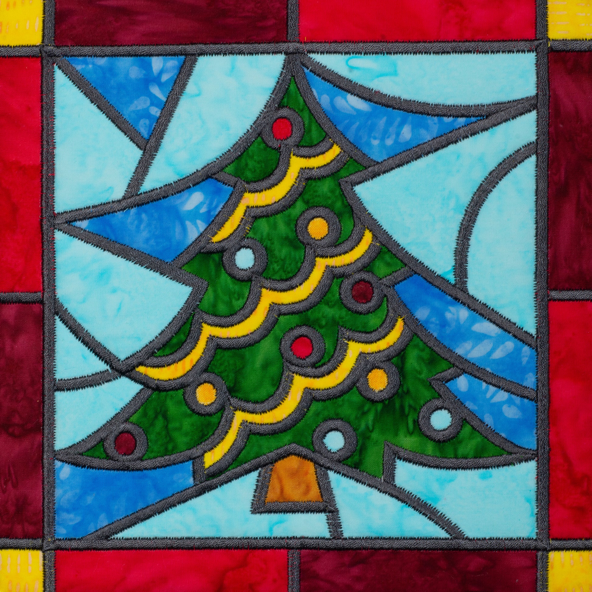 Our fabulous Stained Glass Christmas Quilt is sure to turn heads and get double takes with its dazzling display that looks like glass! With the right fabrics and threads, you can captivate and fascinate with a truly unique—and functional—work of art. Inspired by the intricate stained glasswork seen in church windows and doors, this collage of standard appliqués truly replicates the experience of peering through the gorgeous glass. For the best finished results and similar effect to what we created, try incorporating batiks and other hand dyed fabrics for the perfect "light-leak" look!