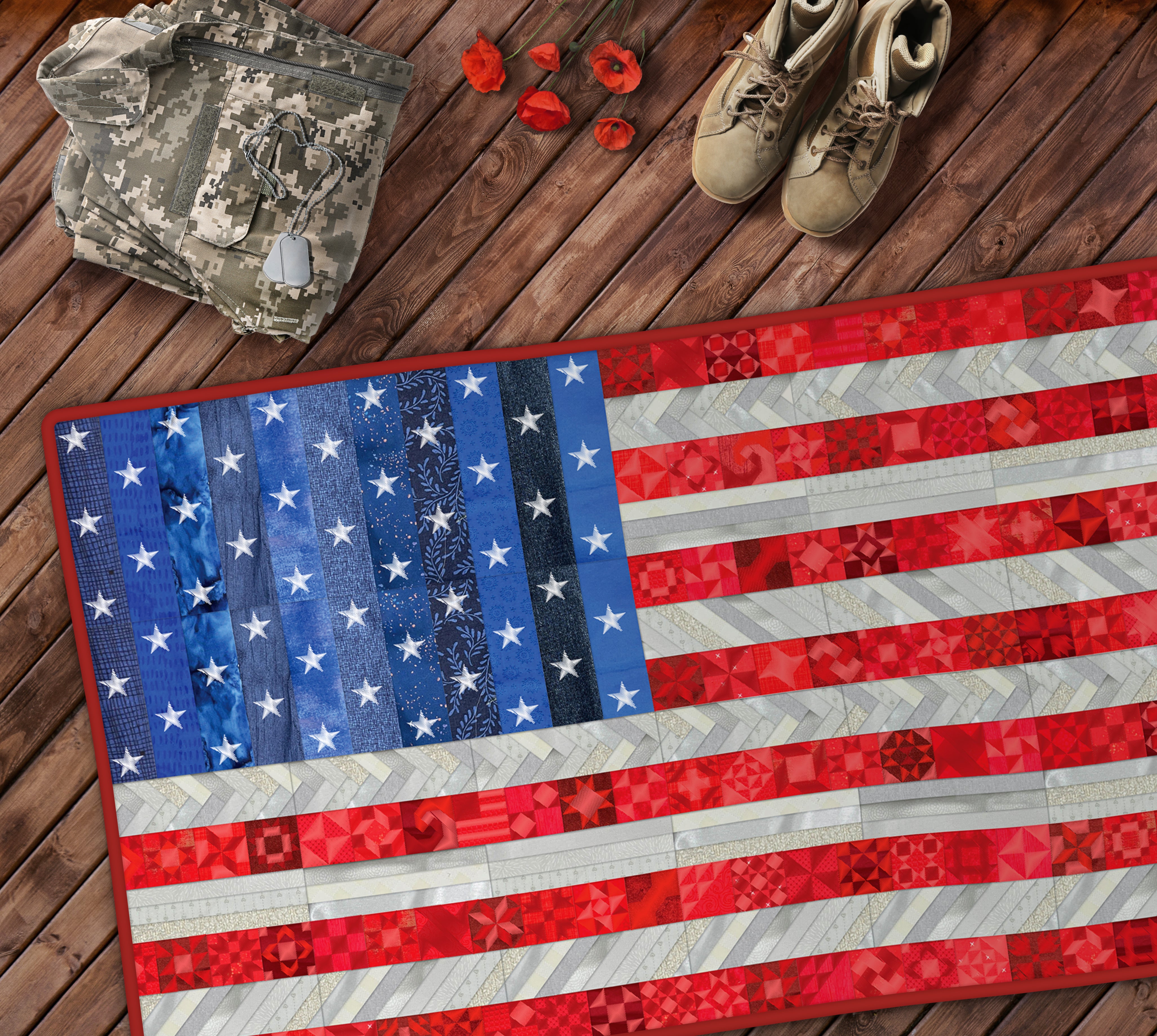 Get ready for red, white, and NEW with our Star Spangled Banner Special Edition! Recreate the revered Stars and Stripes like never before through folded fabric and embroidery, then join the blocks together to form this beautiful homage to our nation! You’ll spot an array of classic quilting motifs stitched into the stripes, while folded fabrics throughout the flag guarantee a quilt to behold. Incorporate a variety of fabric textures, prints, and hues to really flaunt the Americana aesthetic. With multiple sizes to choose from, the finished quilt is sure to be a show-stopper.