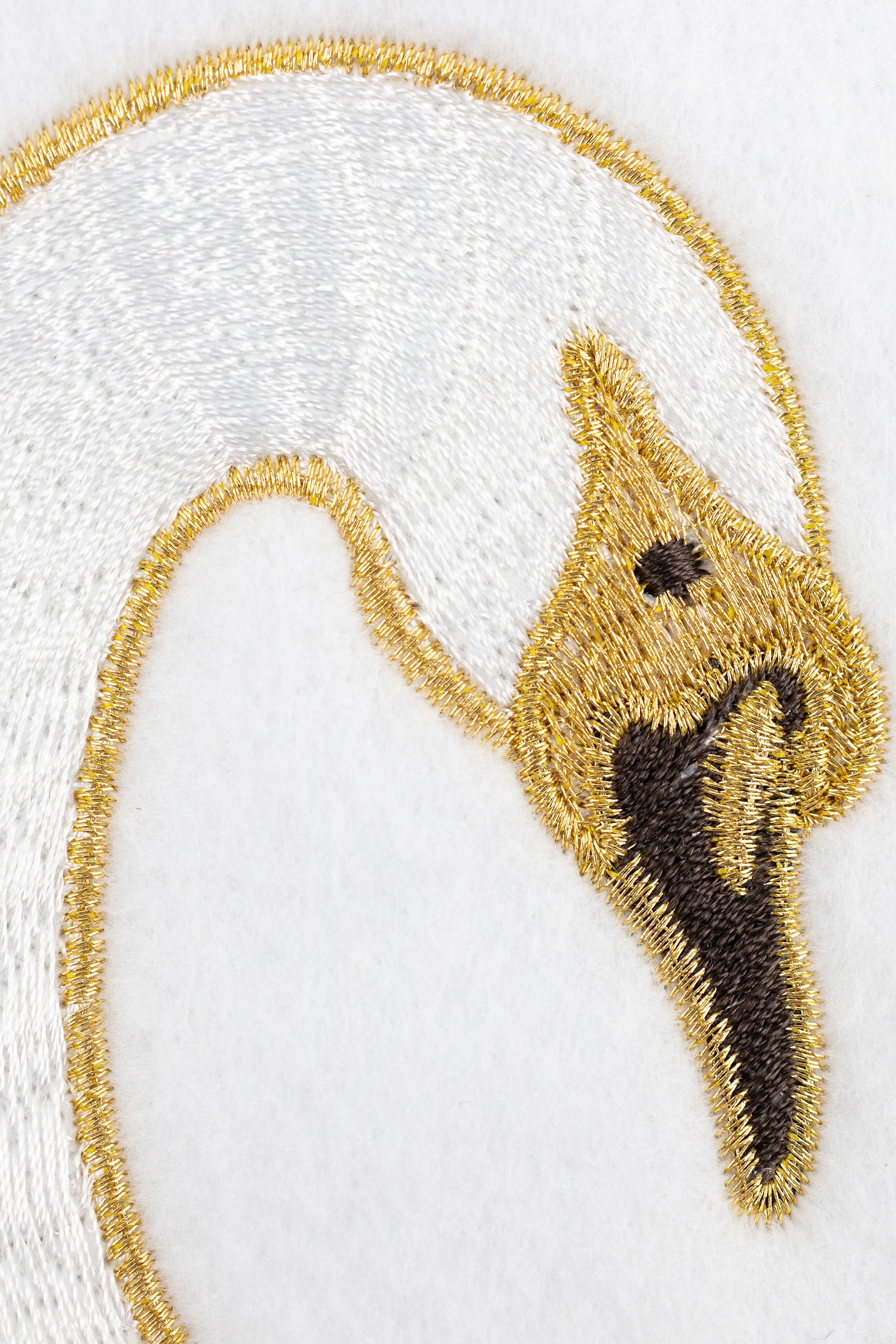 Swans are eternal symbols of beauty and this design is no exception! The stitching mimics plumage and is defined with intricate, satin stitched outlines. Elevate your home with this design on towels, tablecloths, cushions or pillows!