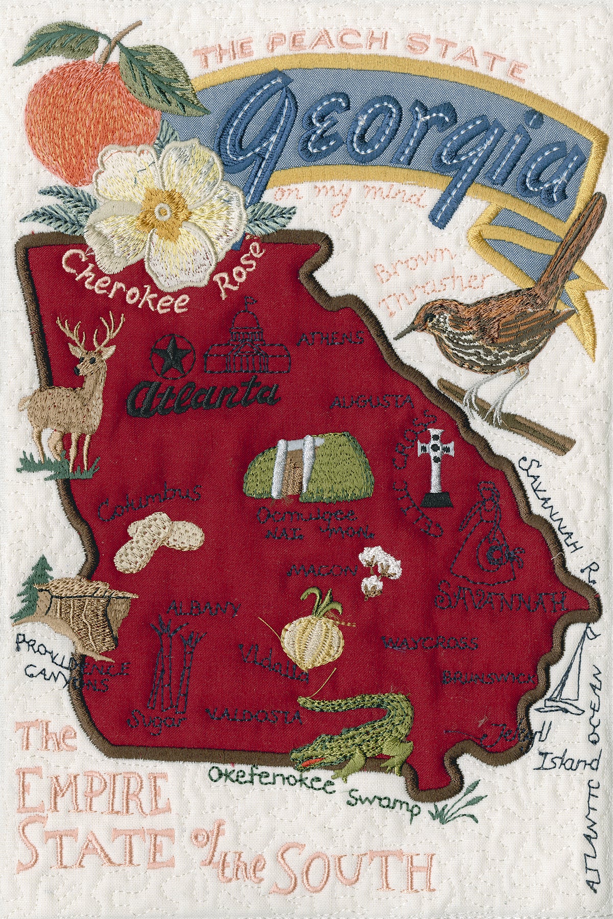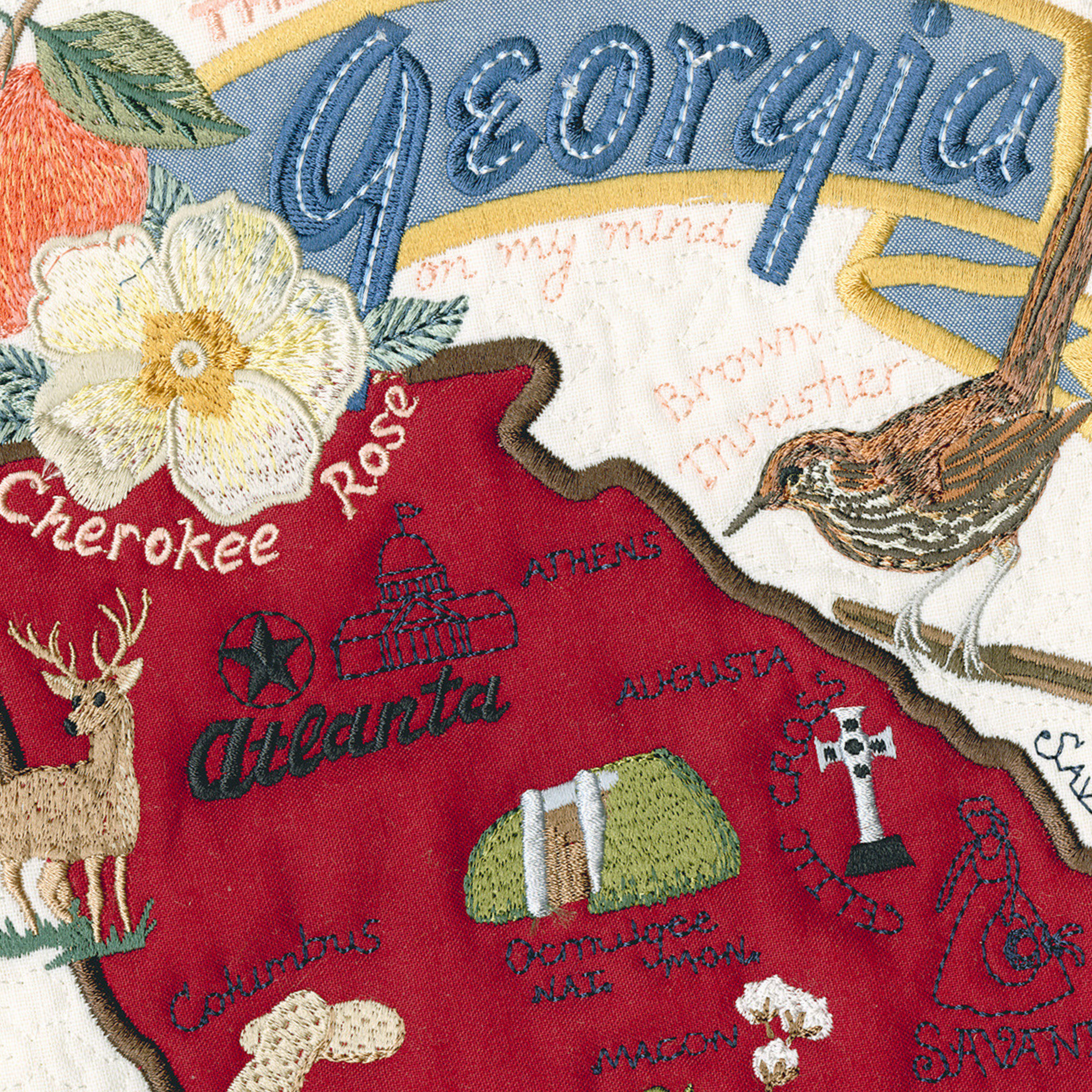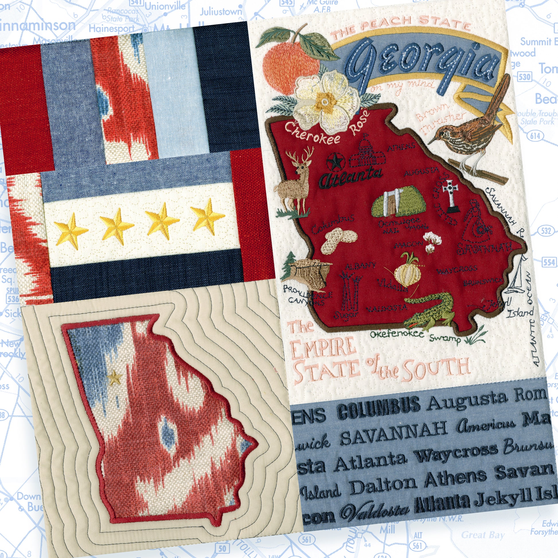 These designs were all hand drawn and contain beautiful appliqués and quilt designs combined with state cities and landmarks along with the state bird and flower. There are 10 designs in each collection that are divided between quilting and embroidery. The states can be combined together for big projects or can be used individually.