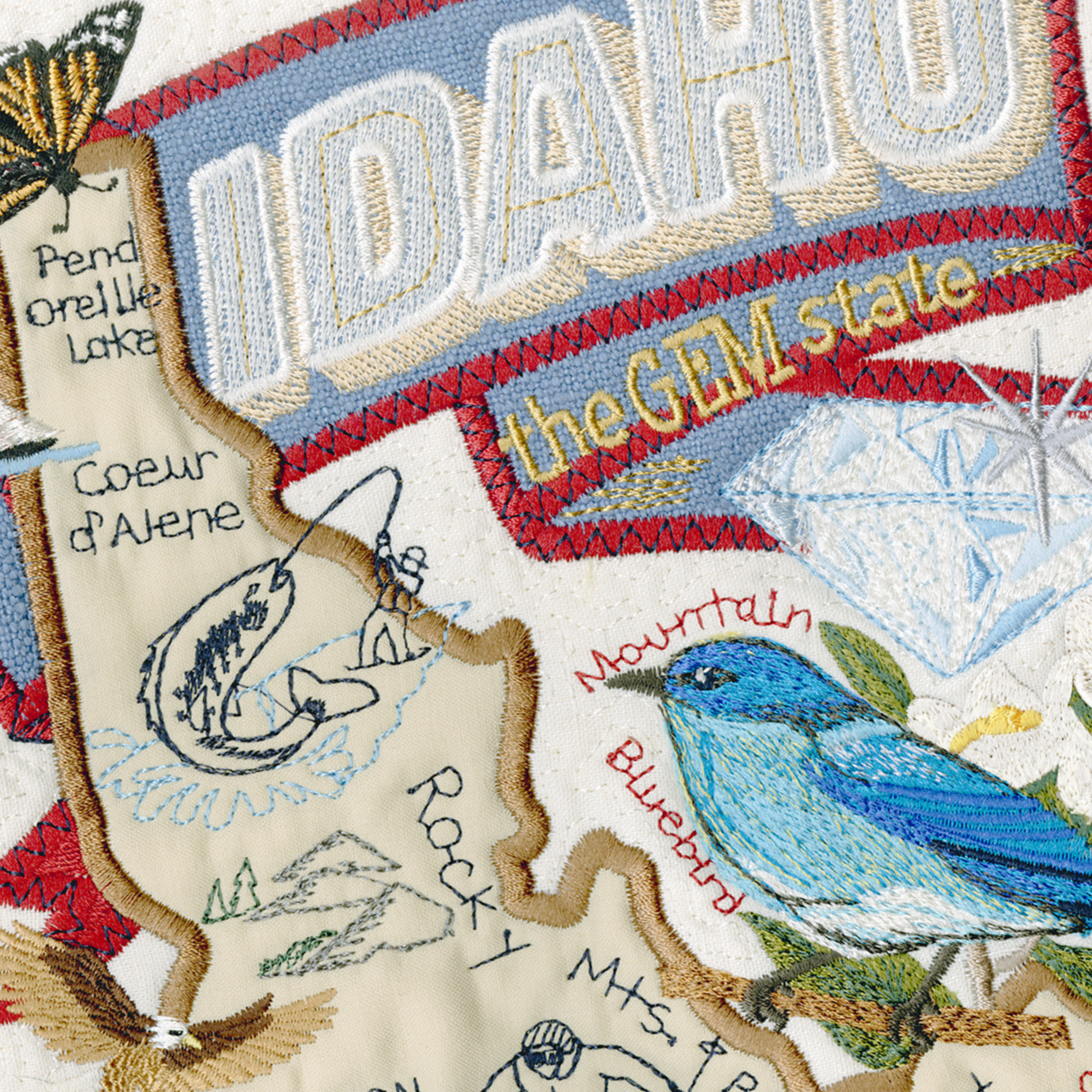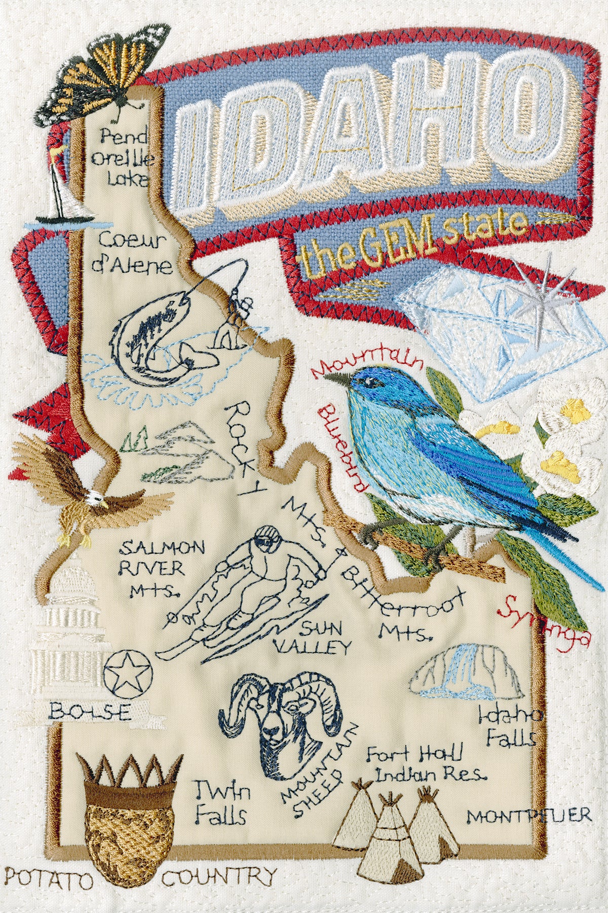 These designs were all hand drawn and contain beautiful appliqués and quilt designs combined with state cities and landmarks along with the state bird and flower. There are 10 designs in each collection that are divided between quilting and embroidery. The states can be combined together for big projects or can be used individually.