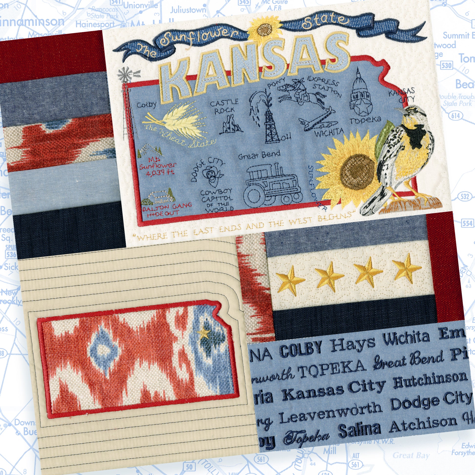 These designs were all hand drawn and contain beautiful appliqués and quilt designs combined with state cities and landmarks along with the state bird and flower. There are 10 designs in each collection that are divided between quilting and embroidery. The states can be combined together for big projects or can be used individually.