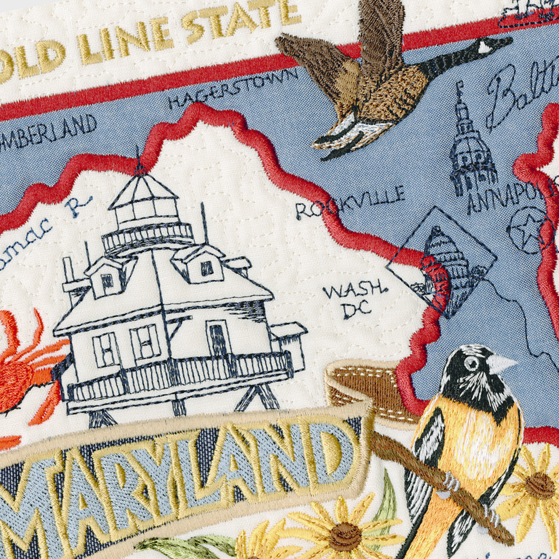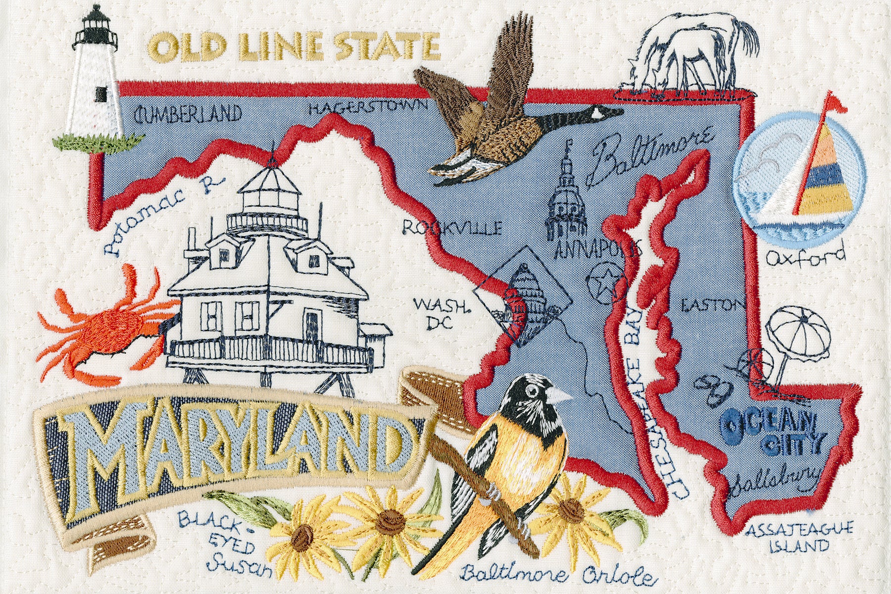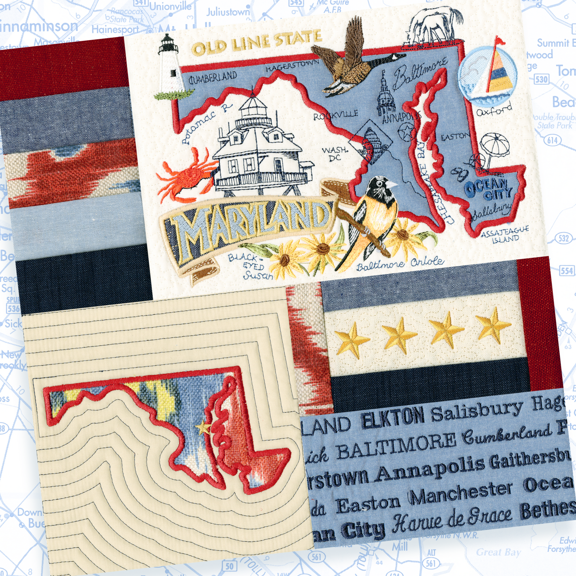 These designs were all hand drawn and contain beautiful appliqués and quilt designs combined with state cities and landmarks along with the state bird and flower. There are 10 designs in each collection that are divided between quilting and embroidery. The states can be combined together for big projects or can be used individually.